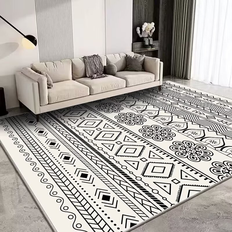 跨境摩洛哥客厅地毯小清新配色设计感高端茶几毯毛绒沙发地垫工厂