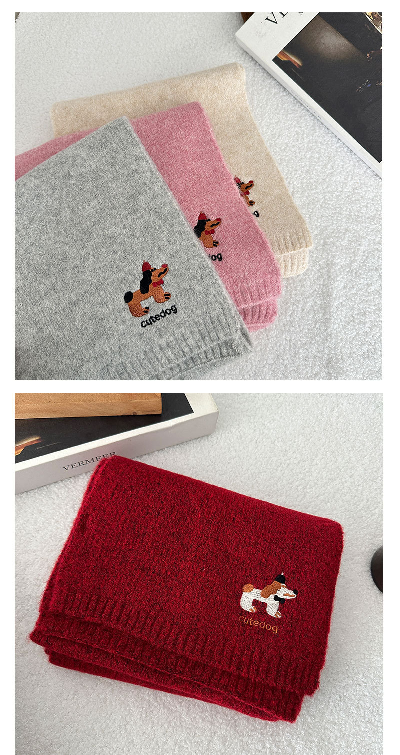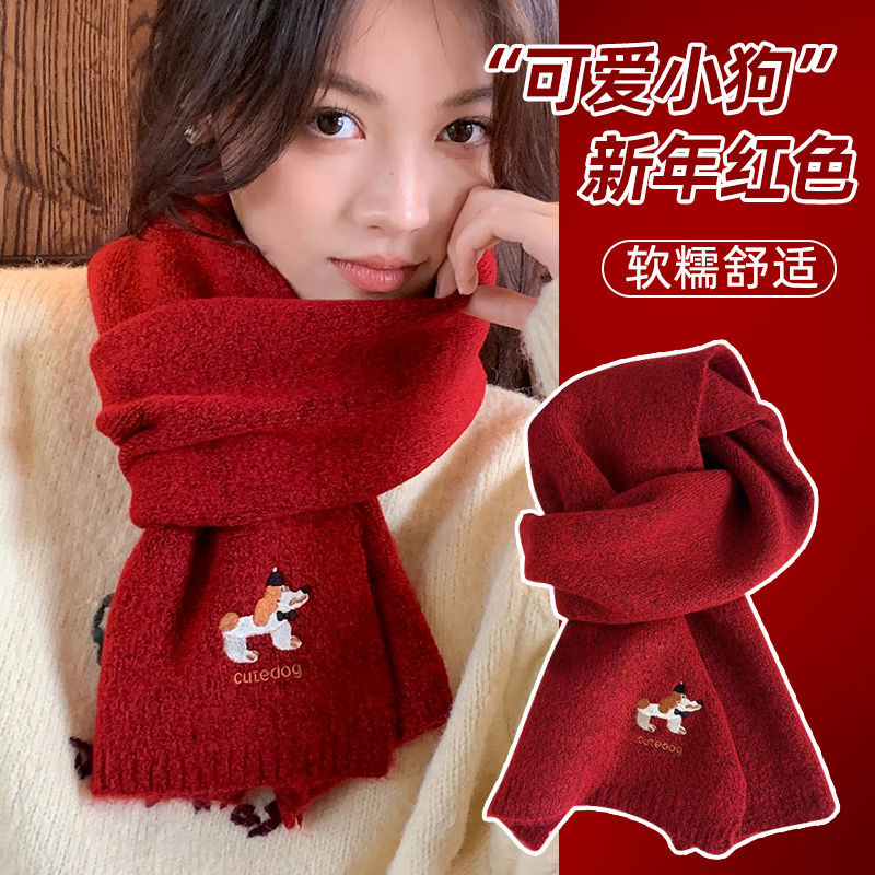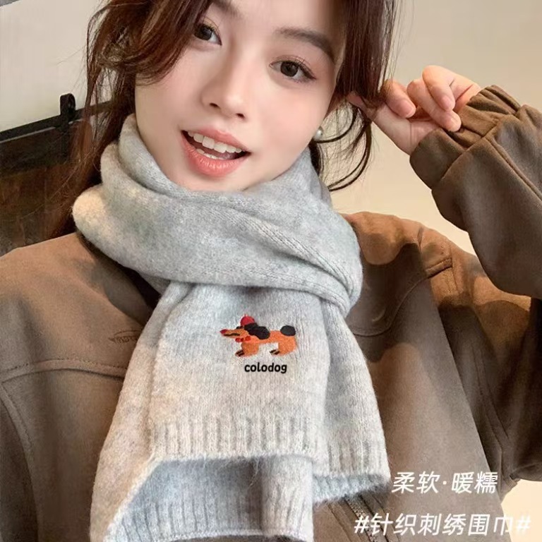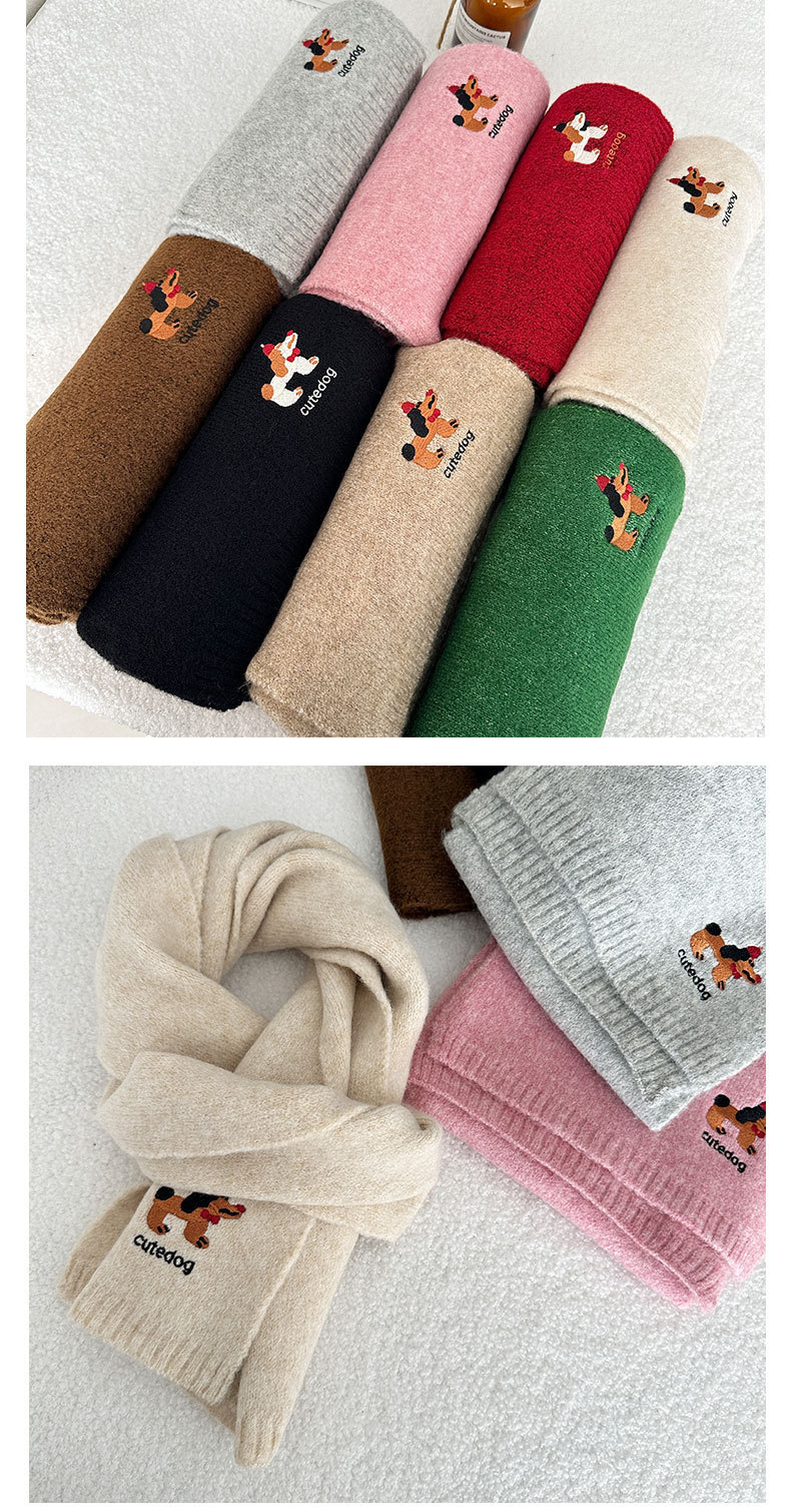 韩版可爱小狗针织羊毛围巾女冬季氛围感百搭刺绣保暖学生围脖护颈