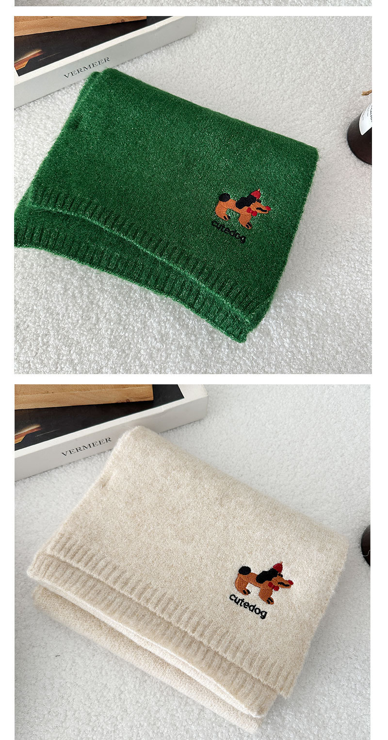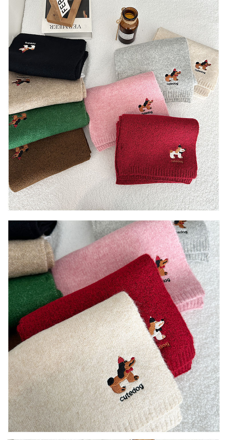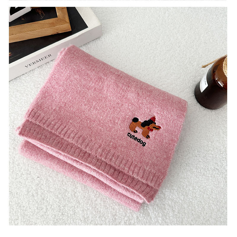 韩版可爱小狗针织羊毛围巾女冬季氛围感百搭刺绣保暖学生围脖护颈
