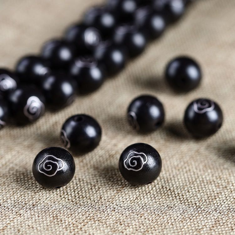 黑檀镶嵌银丝祥云散珠血檀镶嵌如意祥云桶珠圆珠DIY文玩配饰串珠