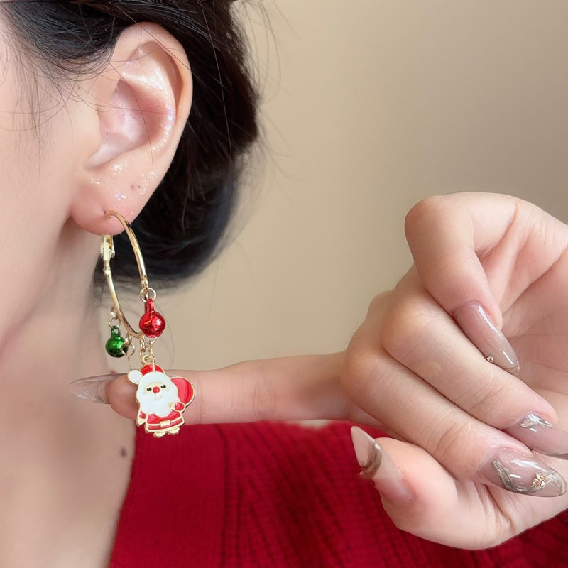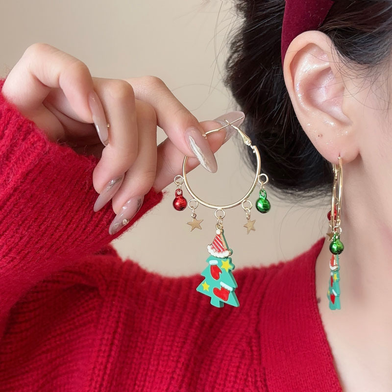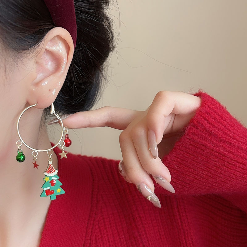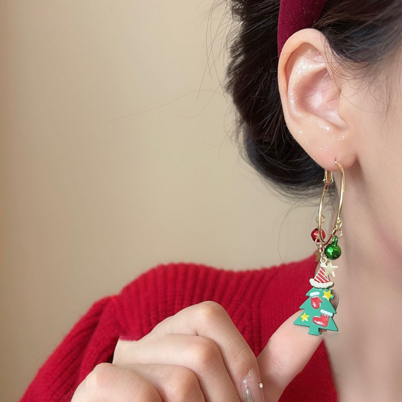 圣诞节银针圣诞树铃铛吊坠耳圈时尚高级感耳环秋冬气质百搭耳饰女