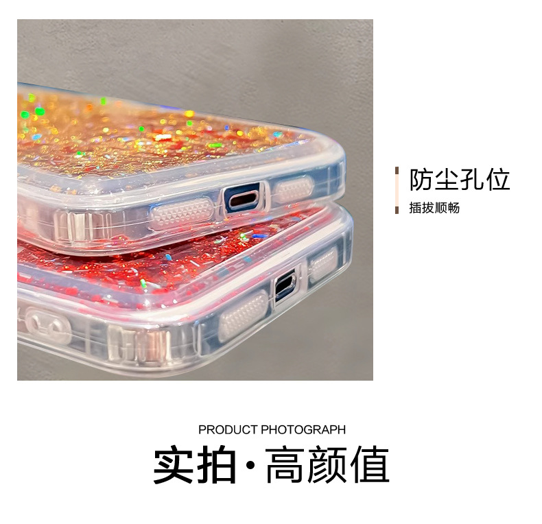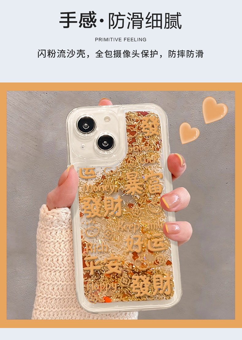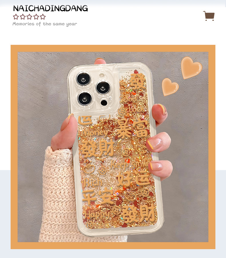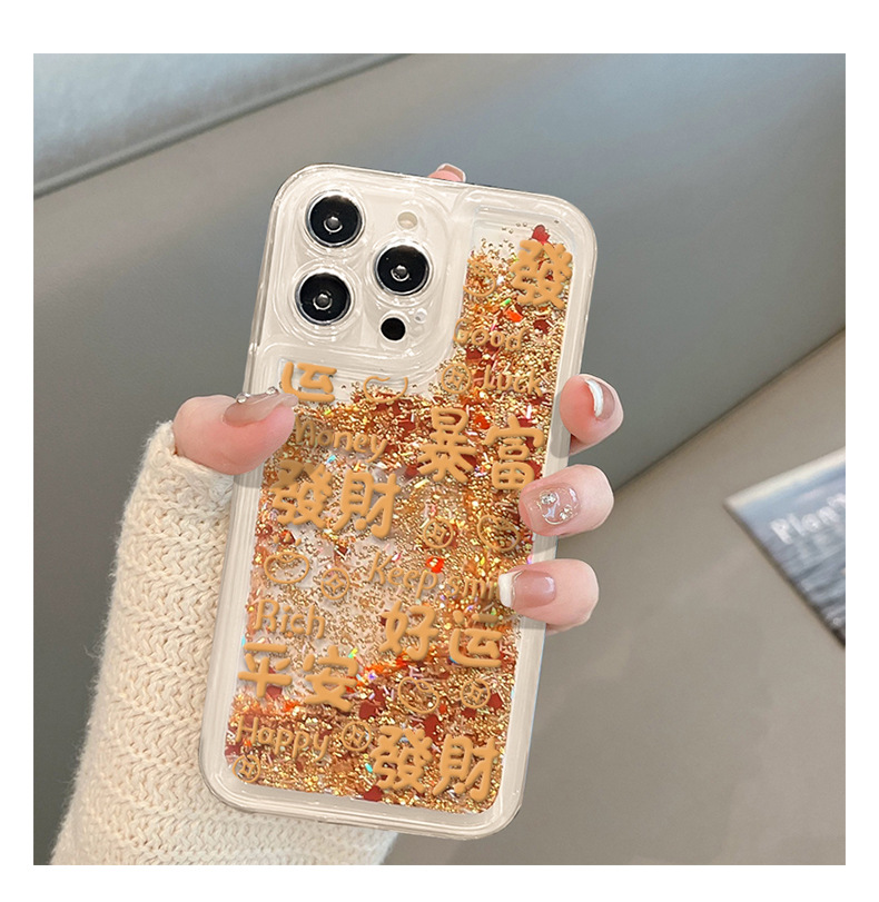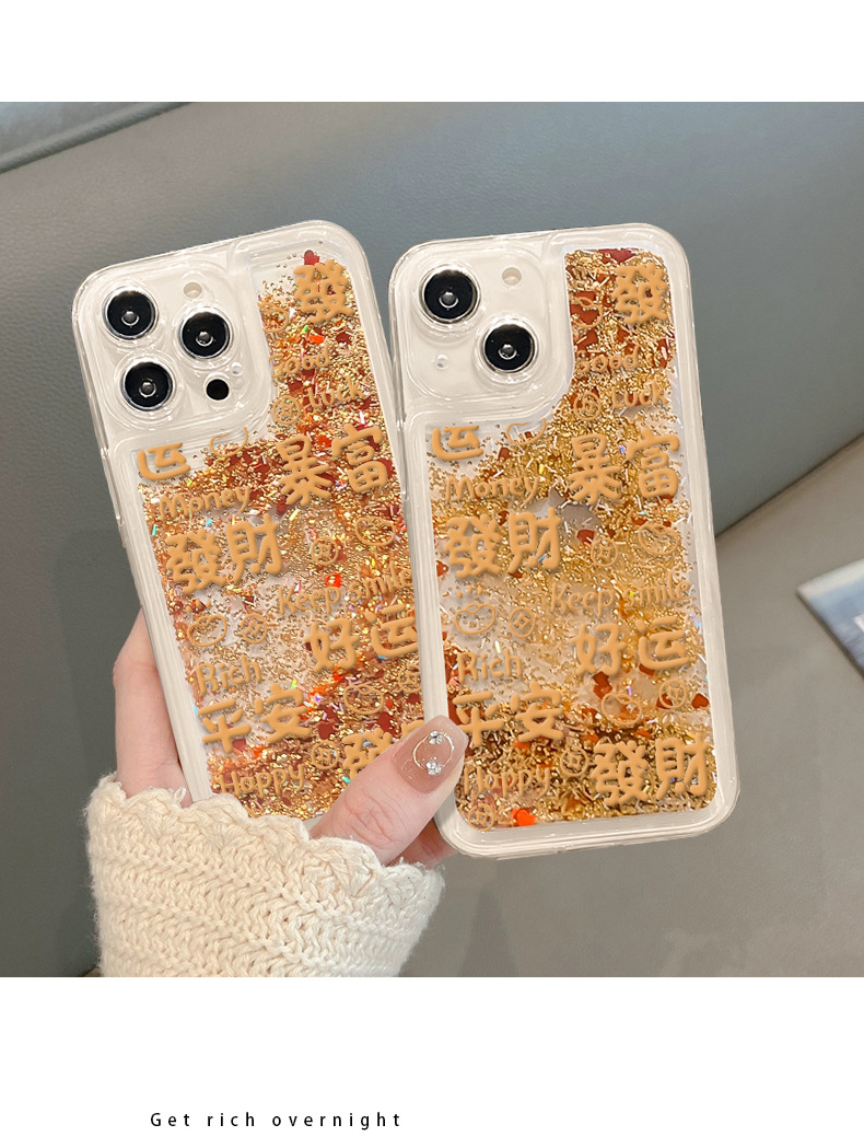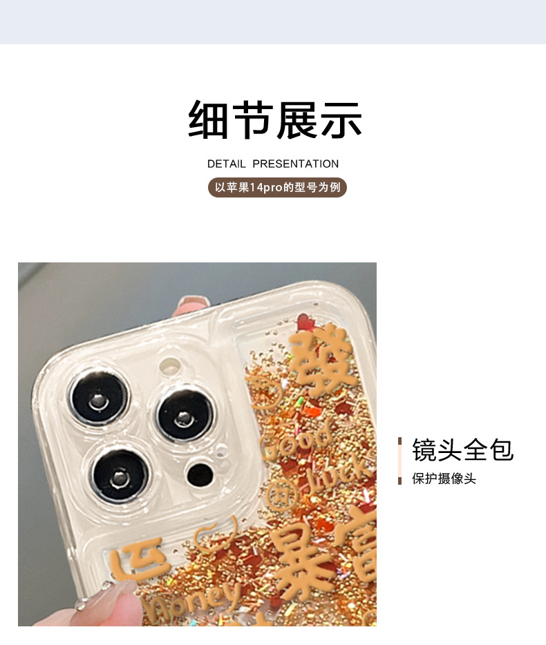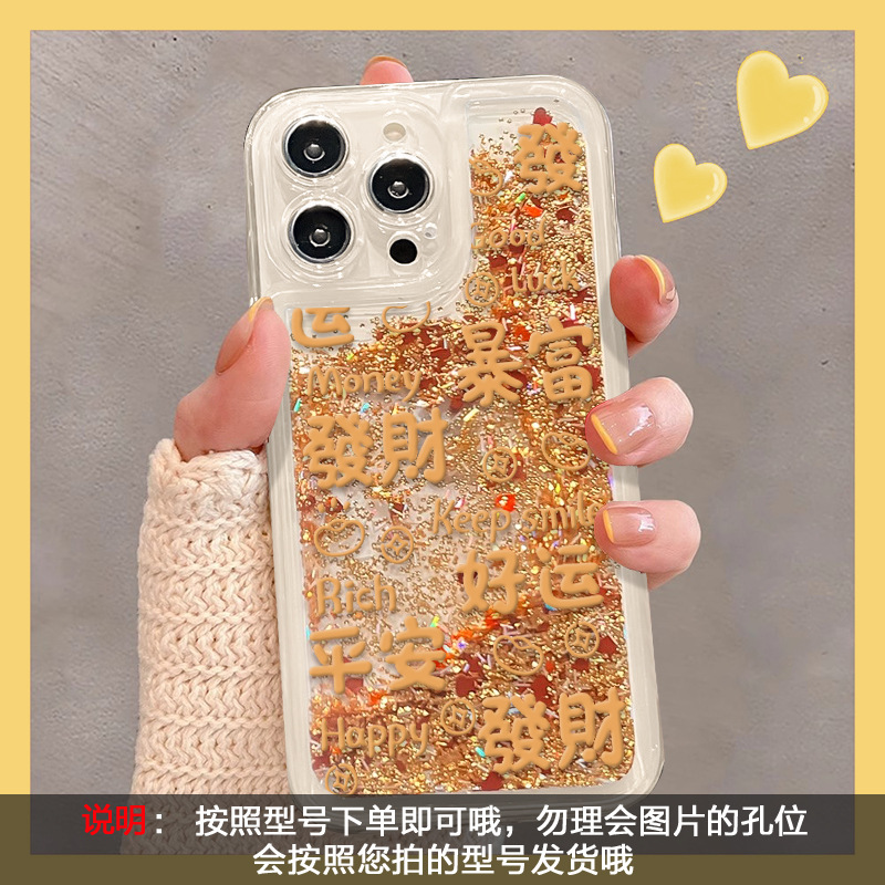 发财暴富好运适用苹果16金流沙手机壳15pro透明防摔14新年小众13