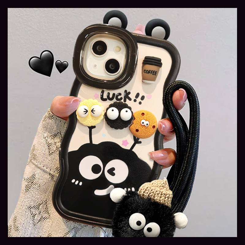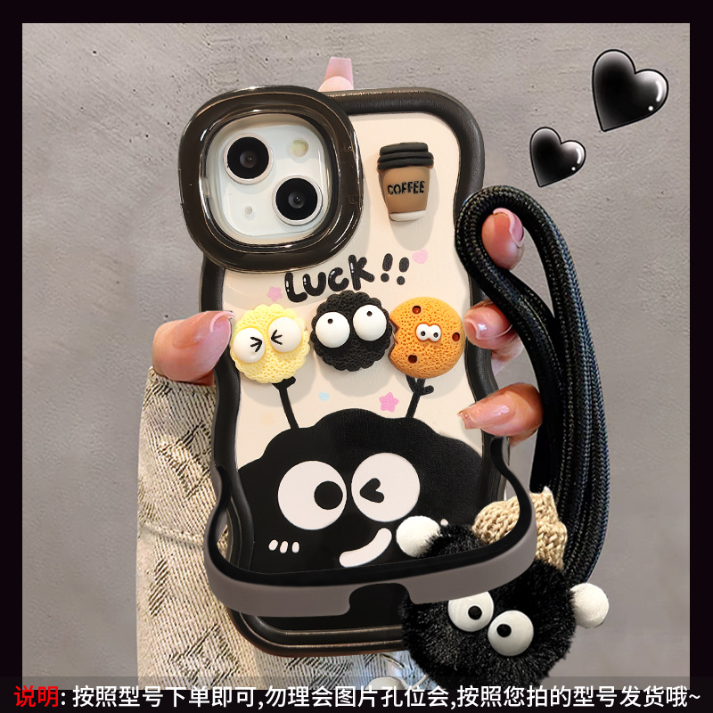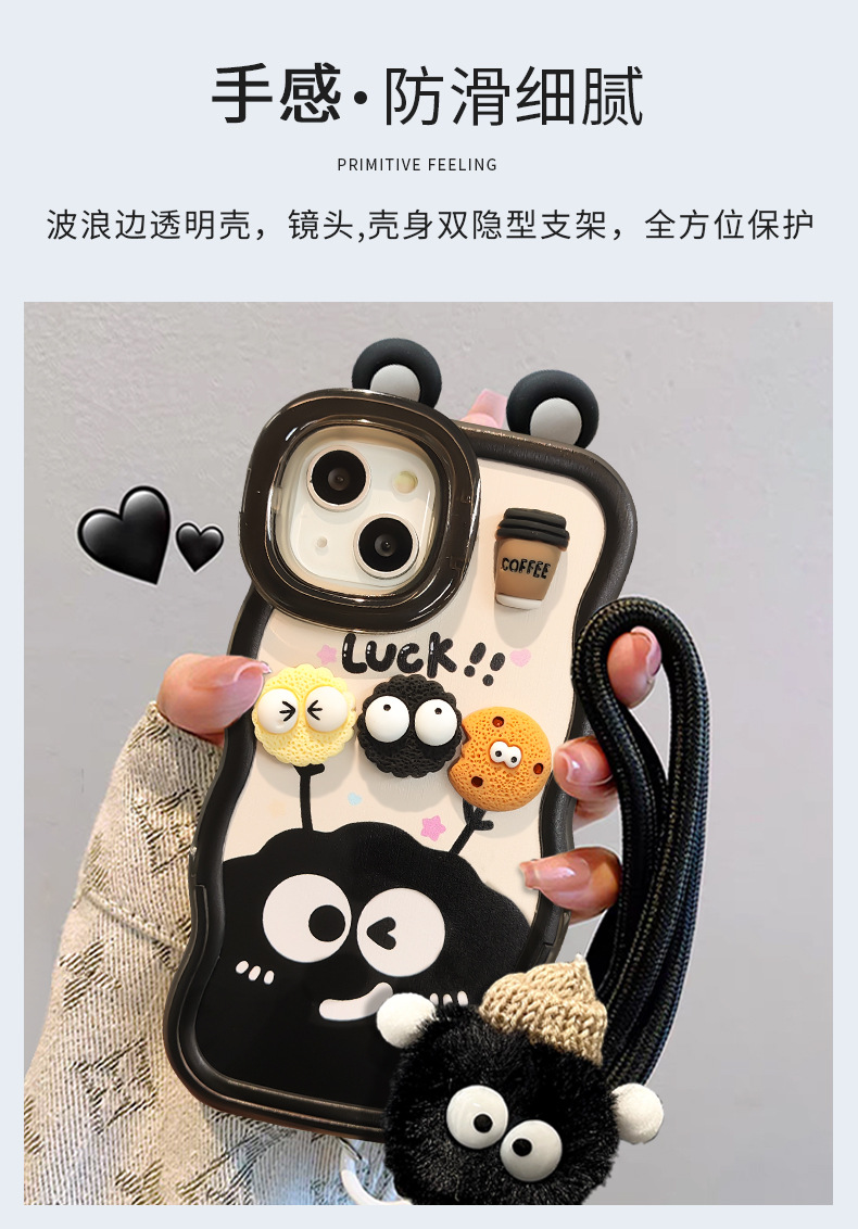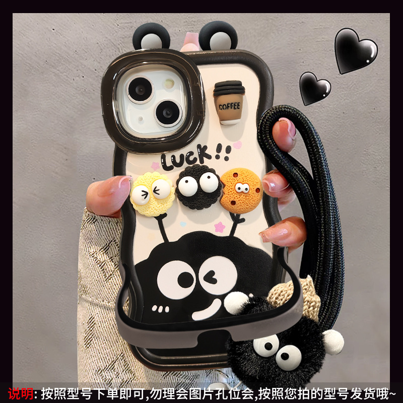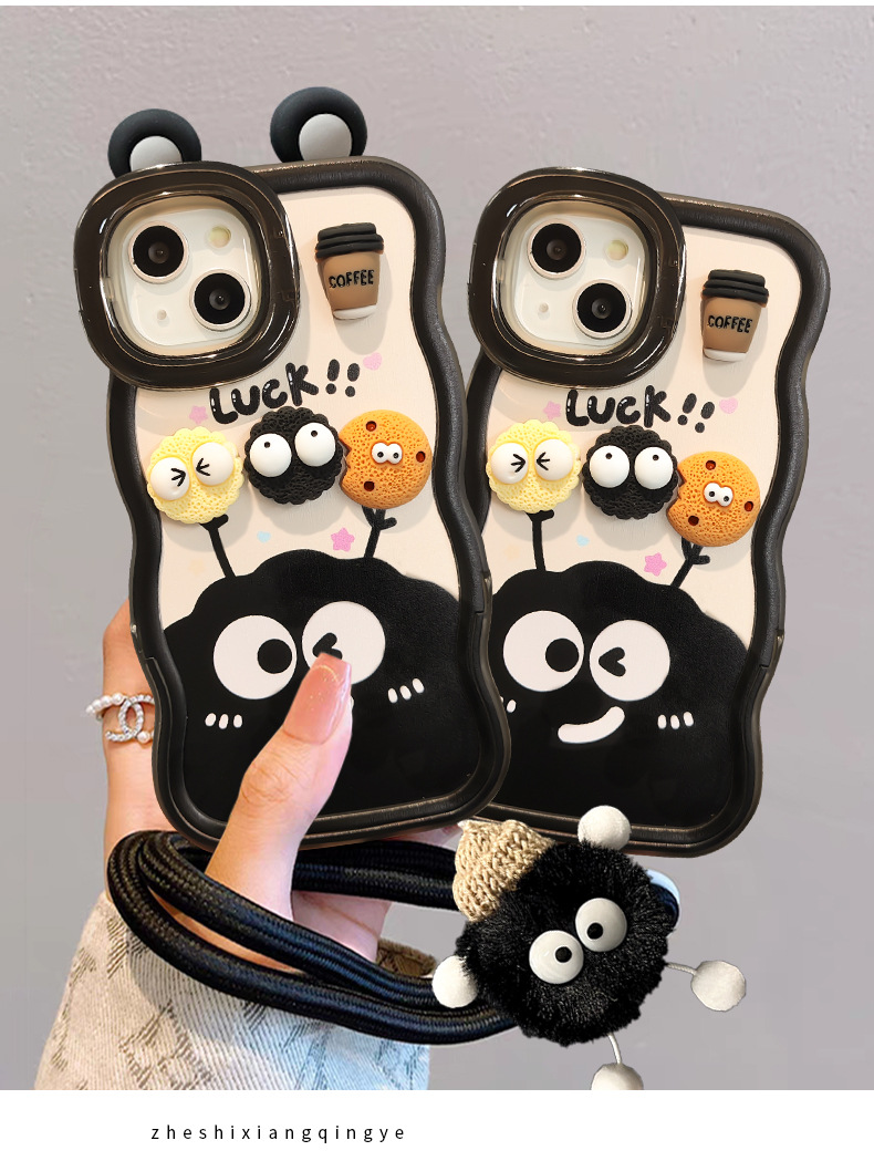咖啡煤球公仔挂绳适用苹果16PRO手机壳华为oppo小米vivoS19双支架