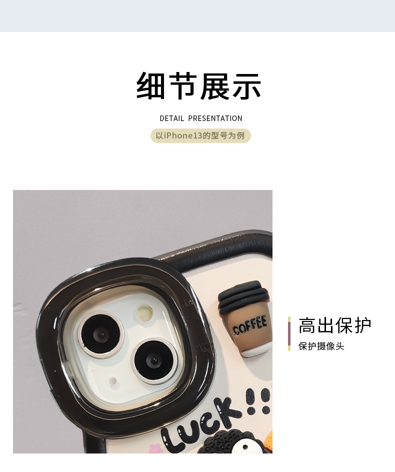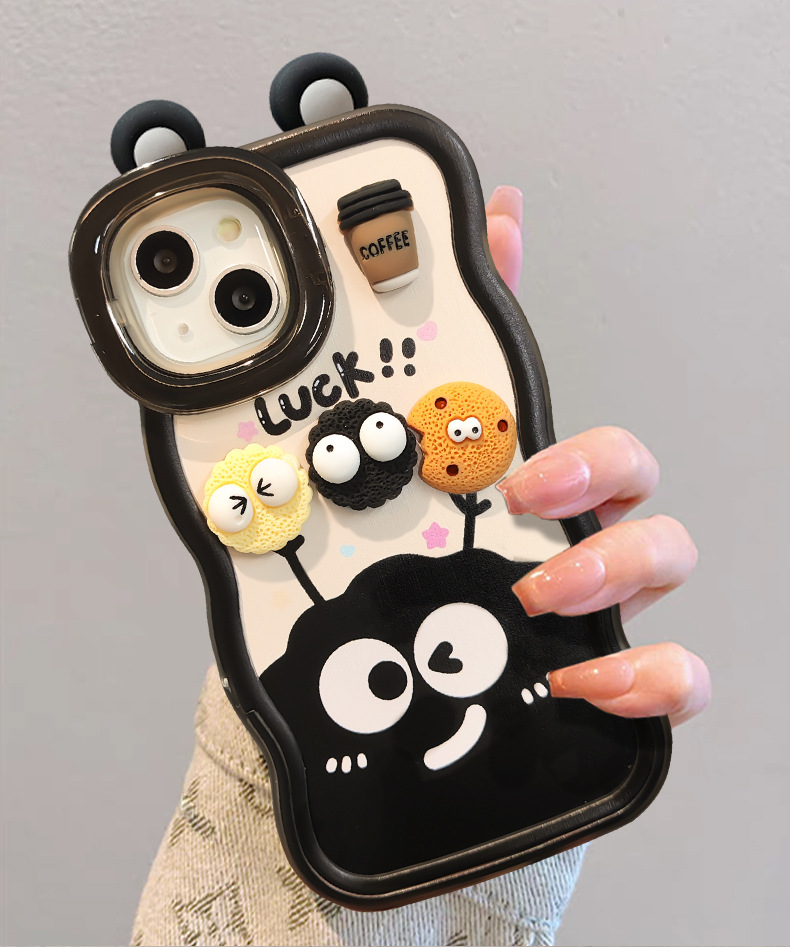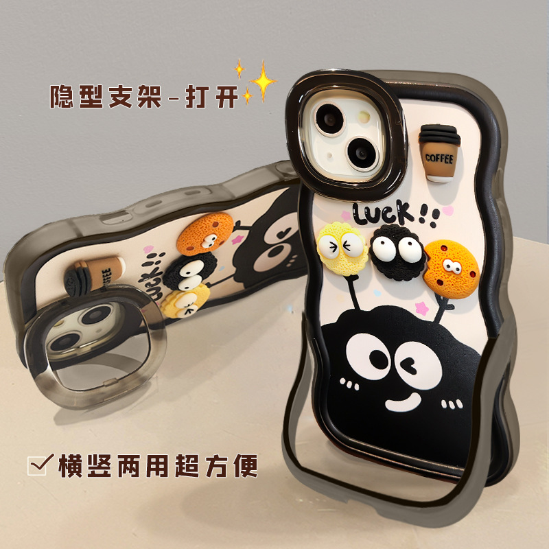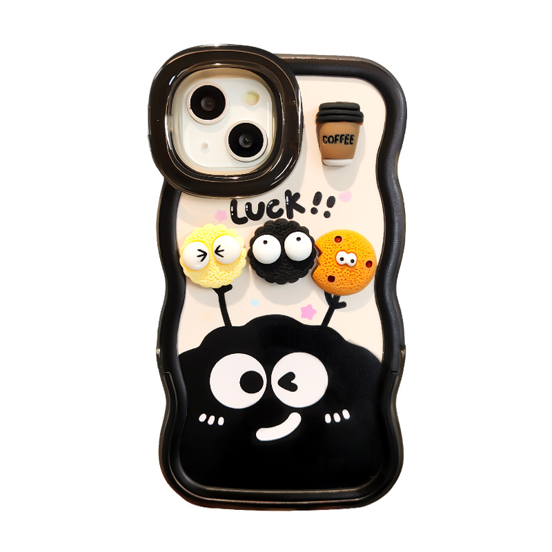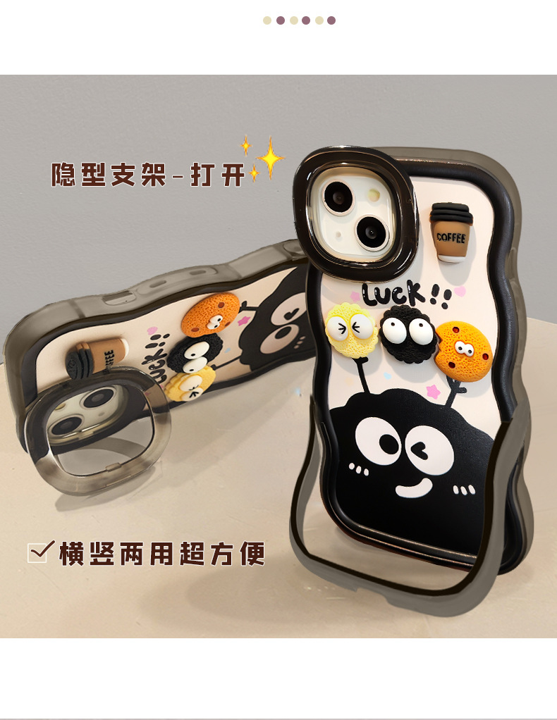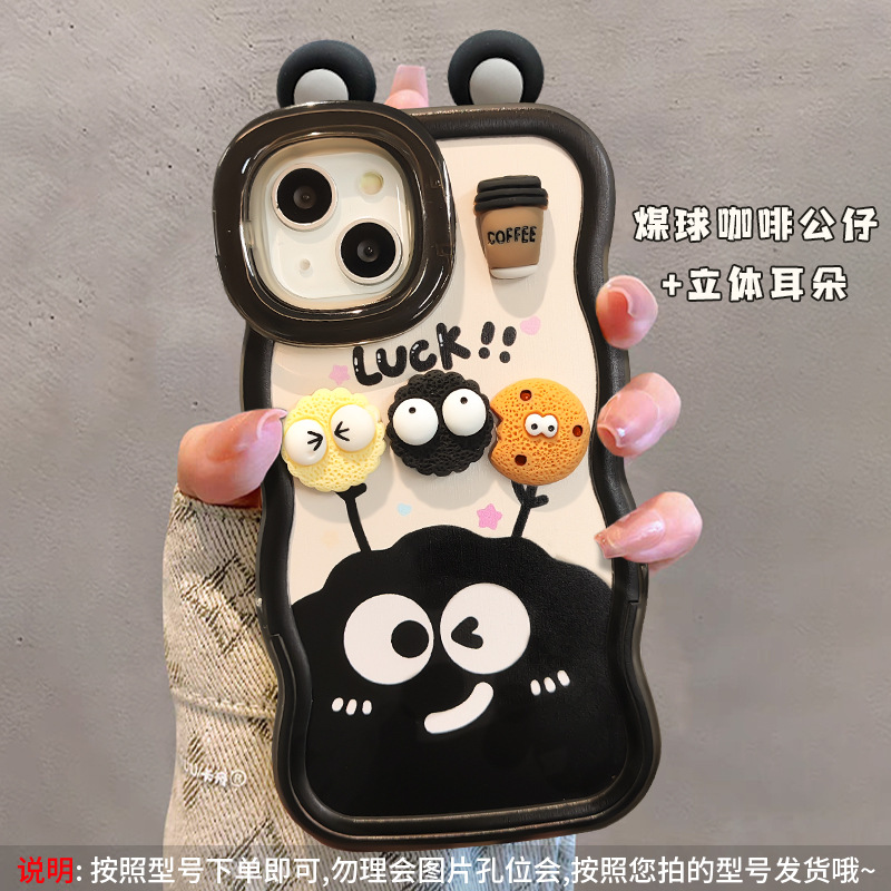 咖啡煤球公仔挂绳适用苹果16PRO手机壳华为oppo小米vivoS19双支架