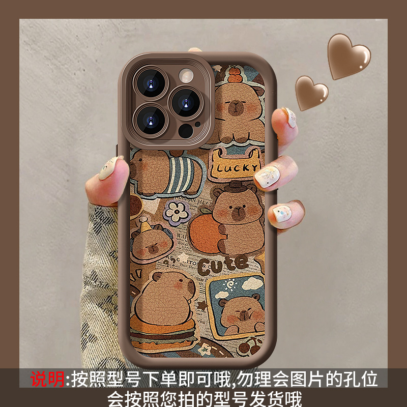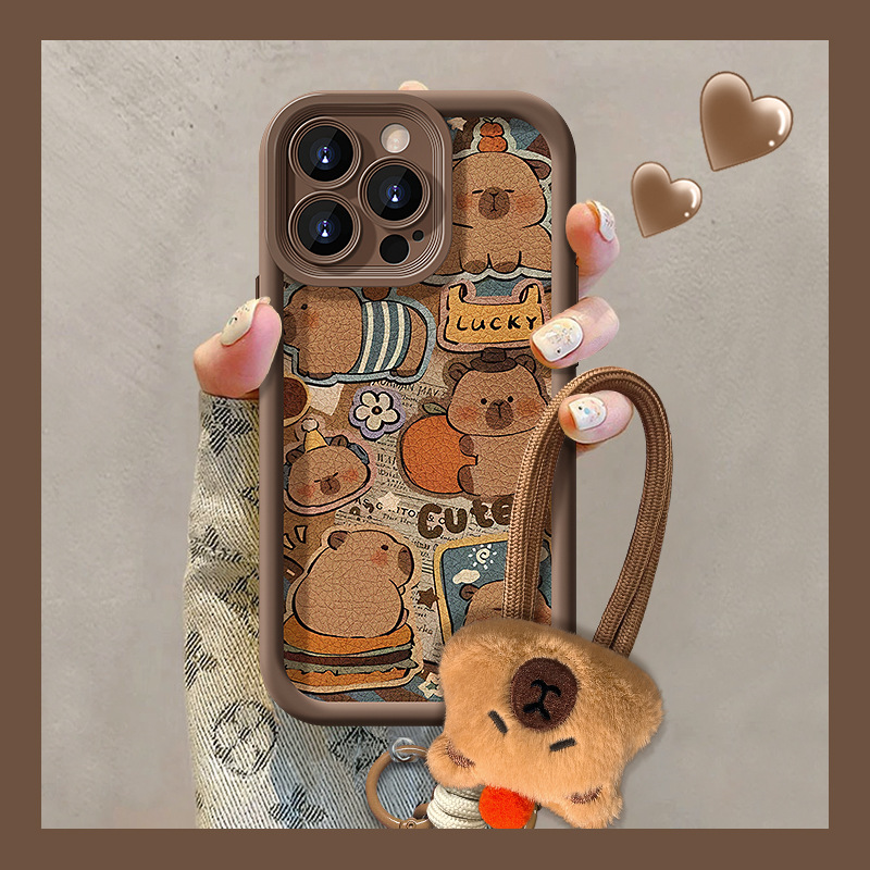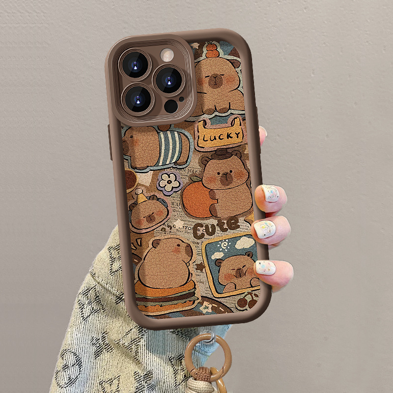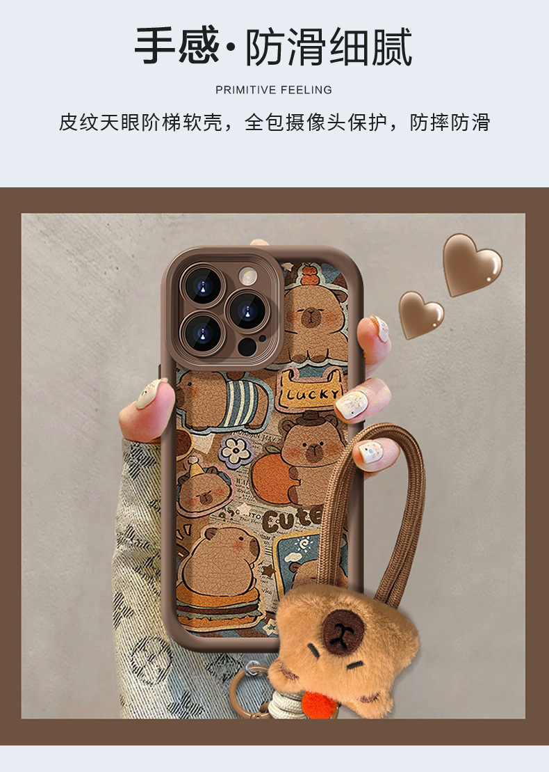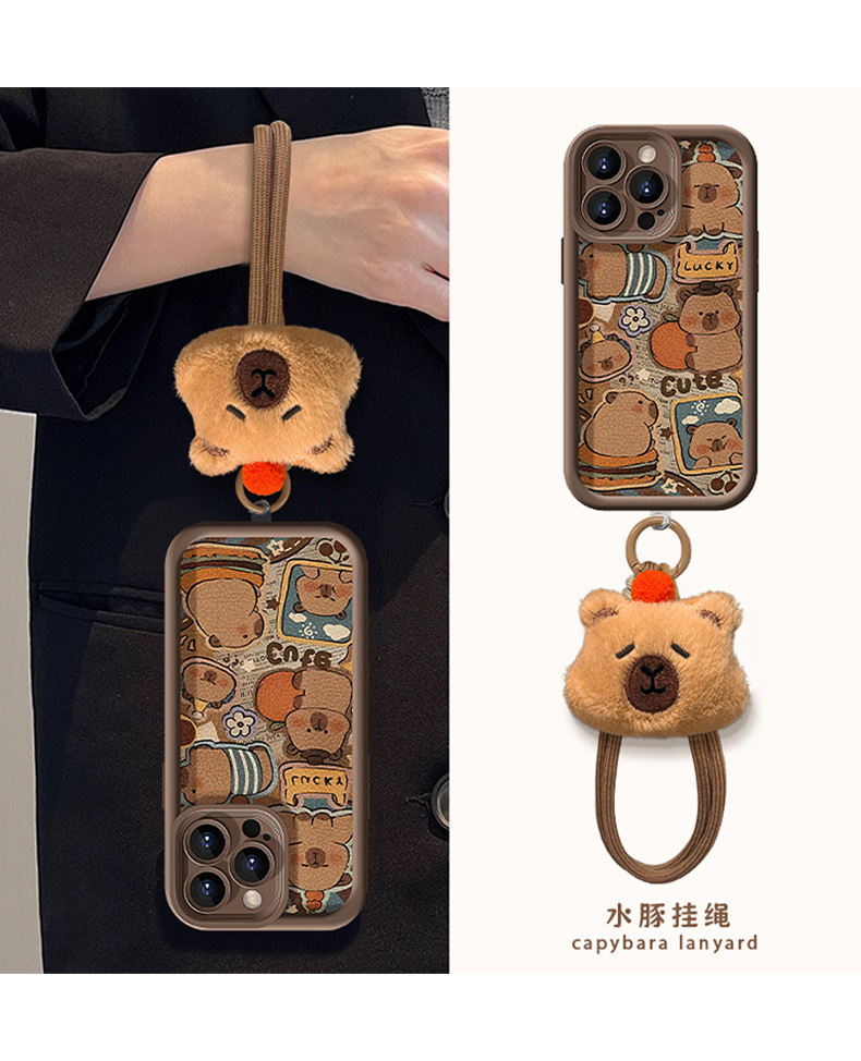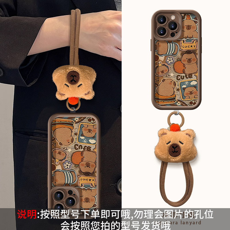 可爱卡皮巴拉挂绳适用苹果16PRO手机壳15全包软硅胶14小羊皮13/17