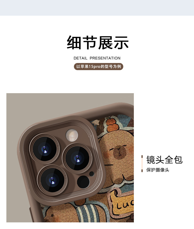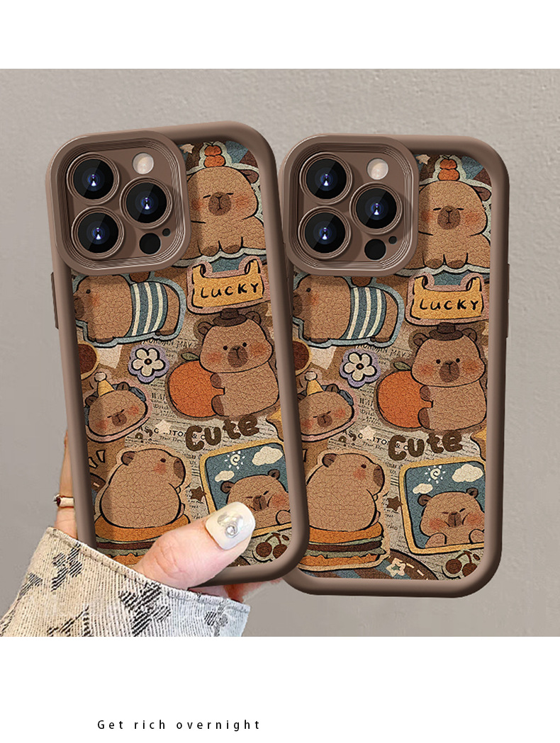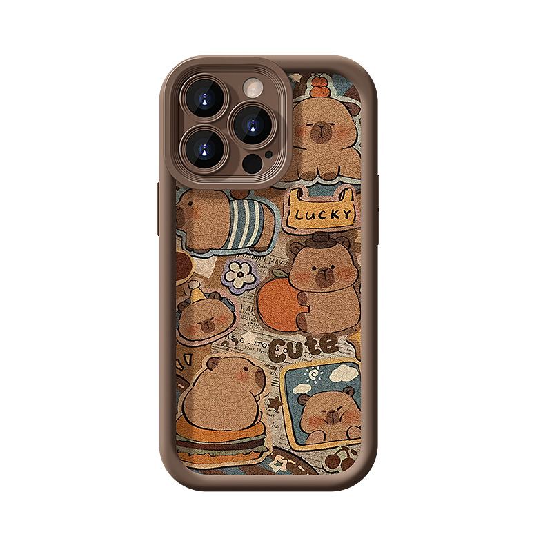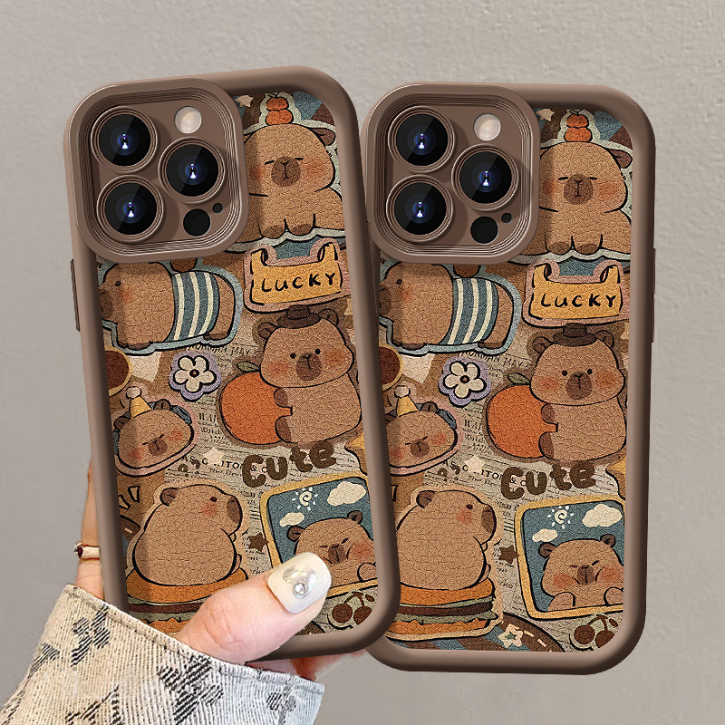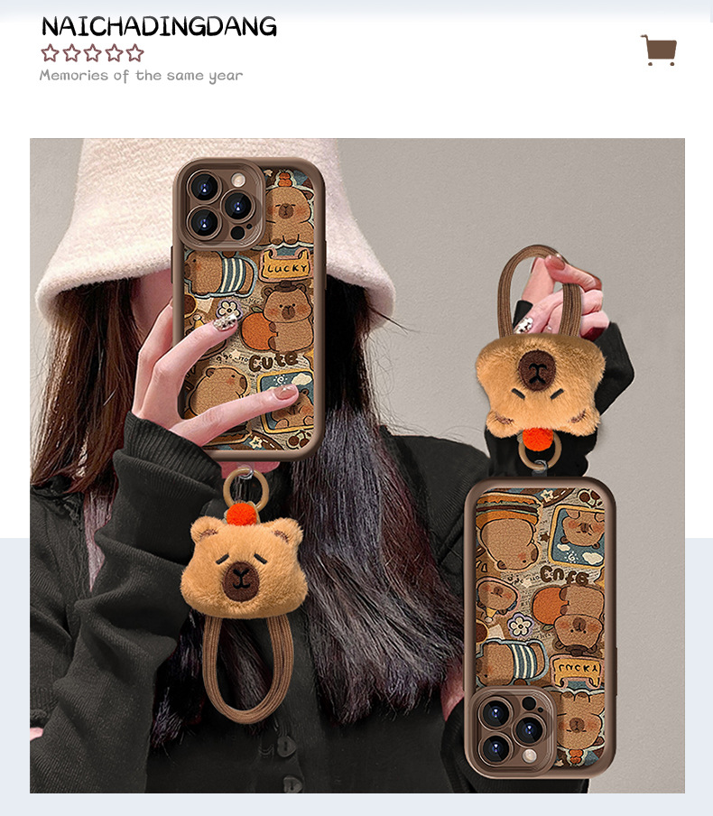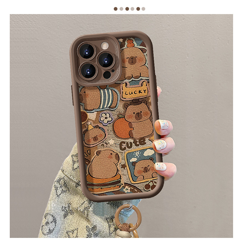 可爱卡皮巴拉挂绳适用苹果16PRO手机壳15全包软硅胶14小羊皮13/17