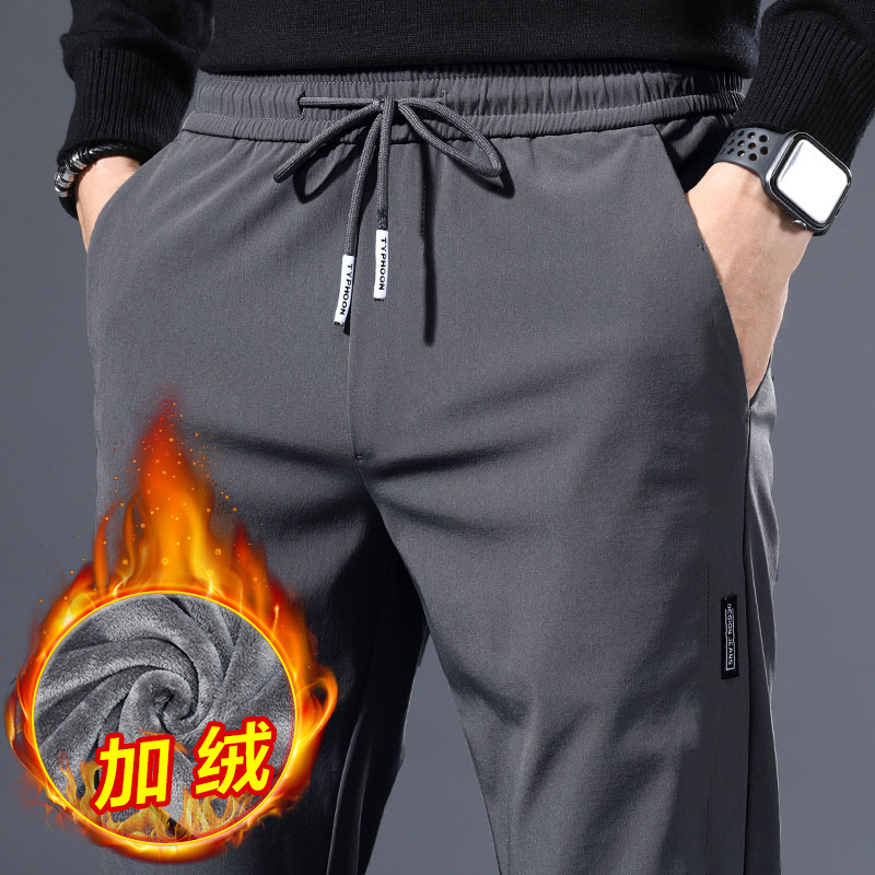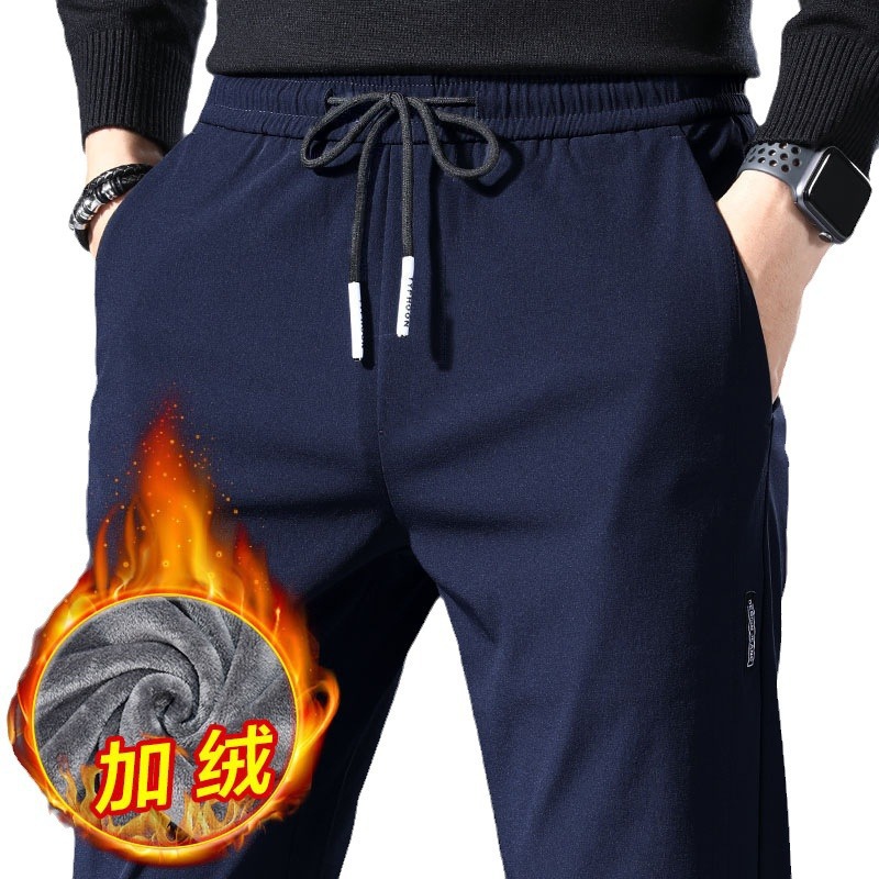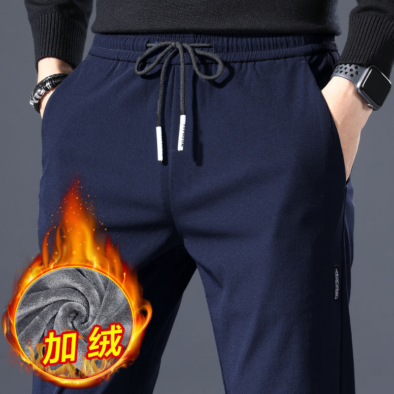 男士休闲裤秋冬季加绒裤直筒宽松长裤外穿秋裤中青年运动裤子男春