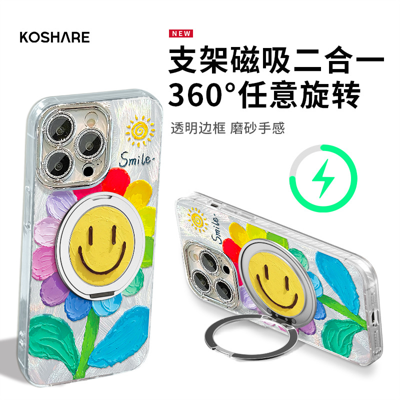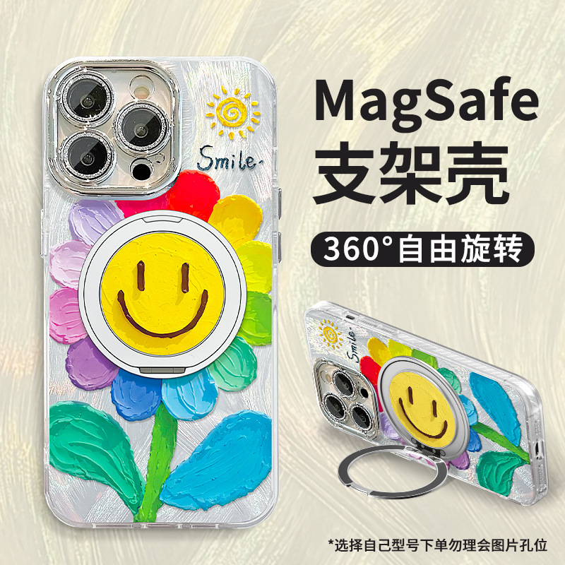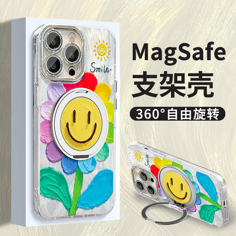 太阳花朵磁吸支架适用苹果16e羽纱手机壳13promax全包15高级感14
