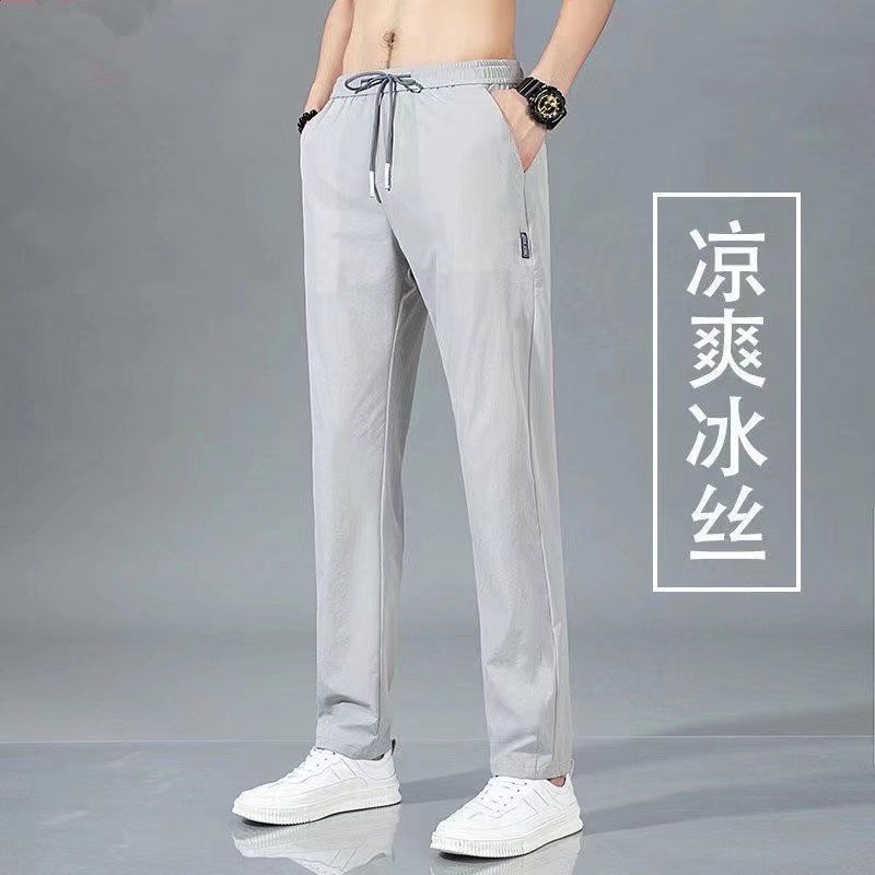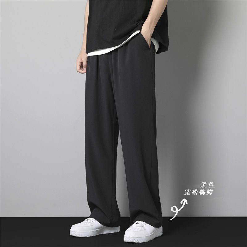 男士休闲裤子夏季薄款潮流百搭宽松长裤阔腿直筒垂感速干冰丝西裤