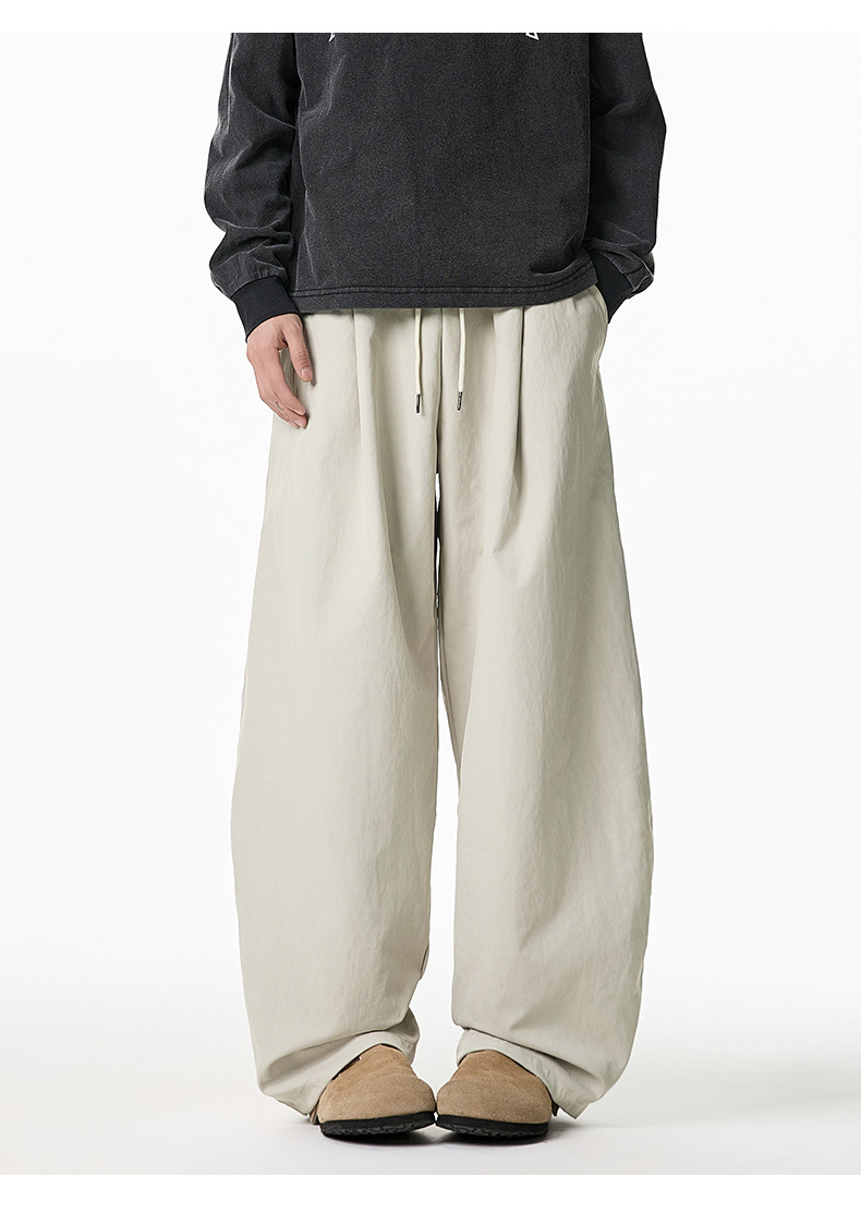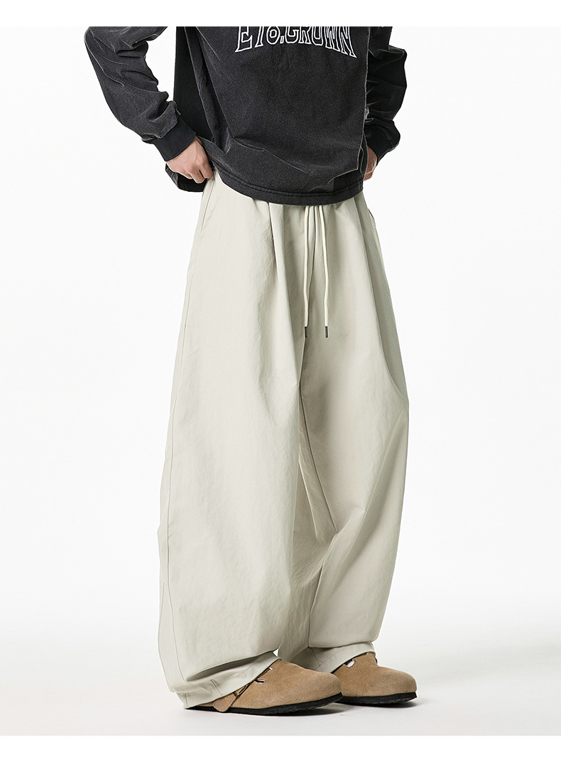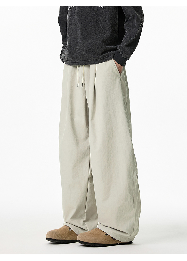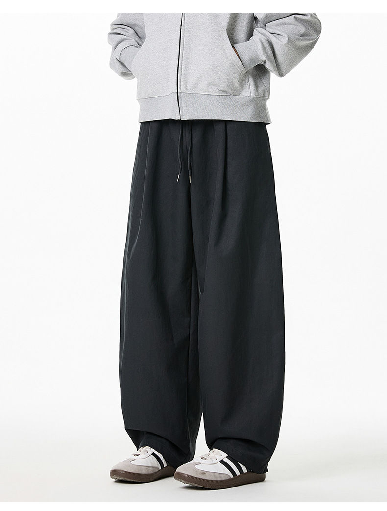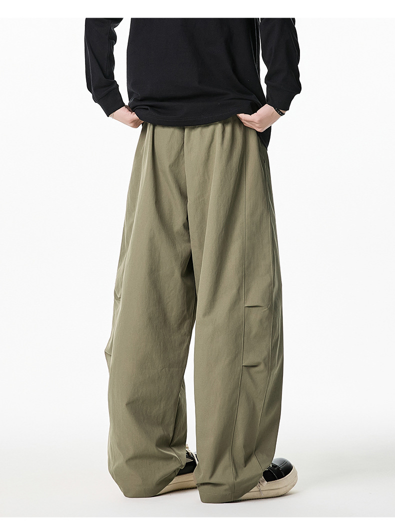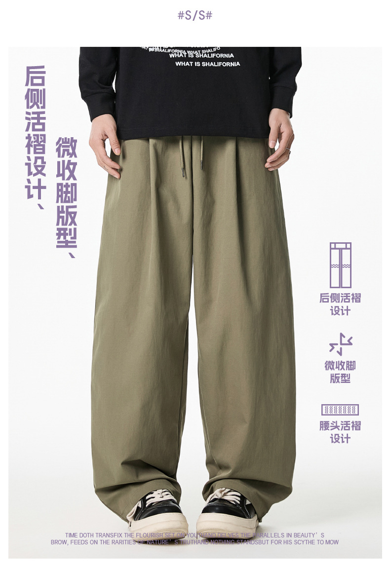 打褶设计日系宽松弯刀休闲裤男春季新款裤子潮牌宽松纯色微阔长裤