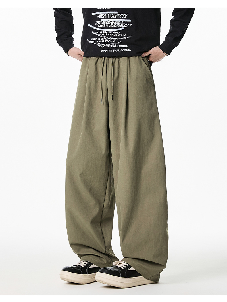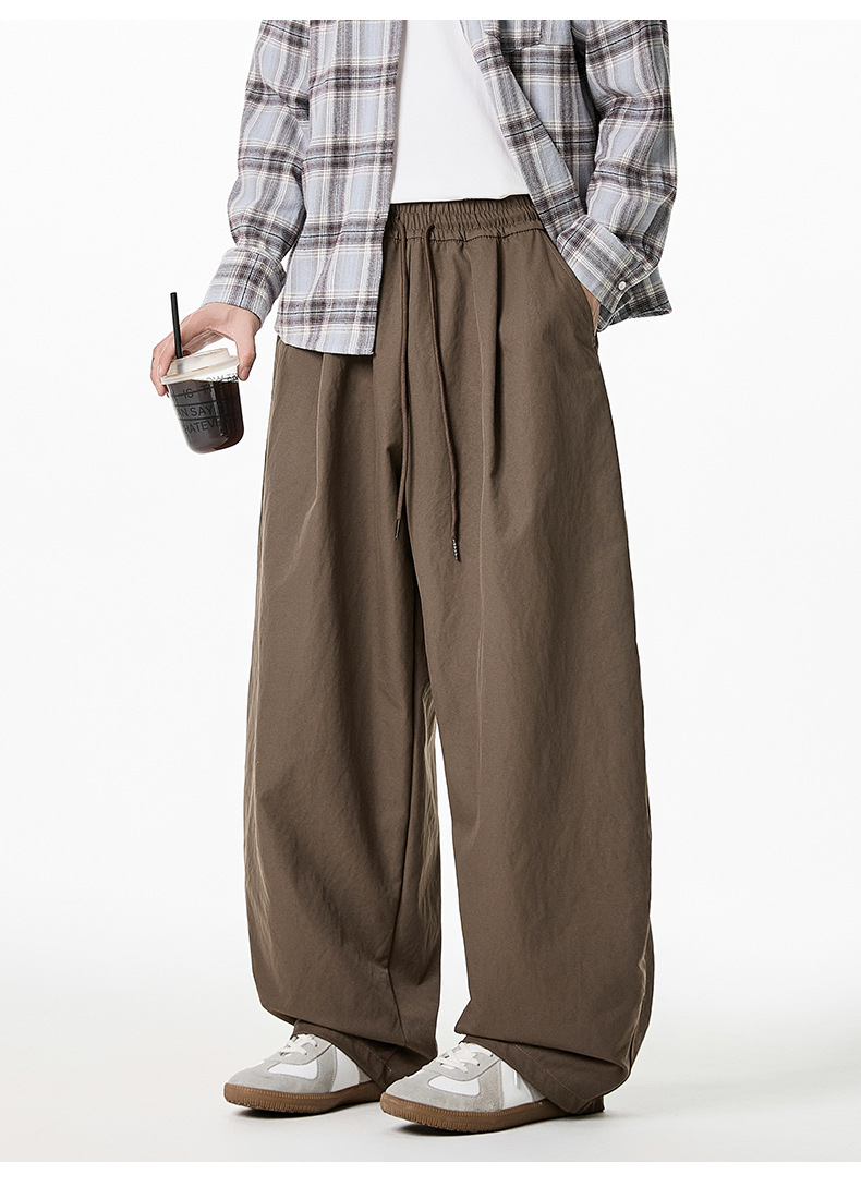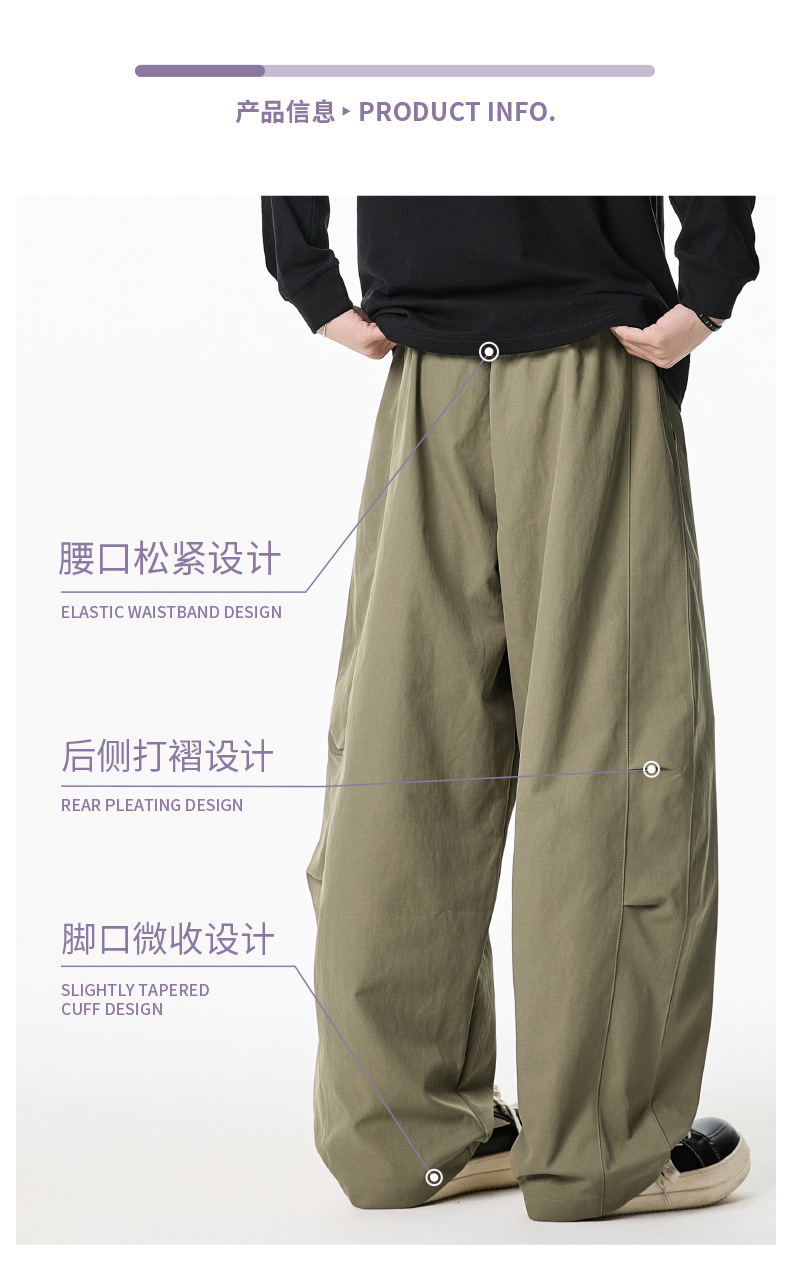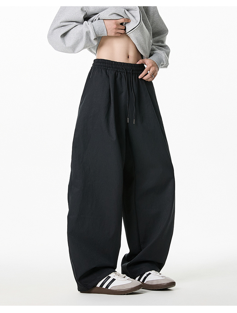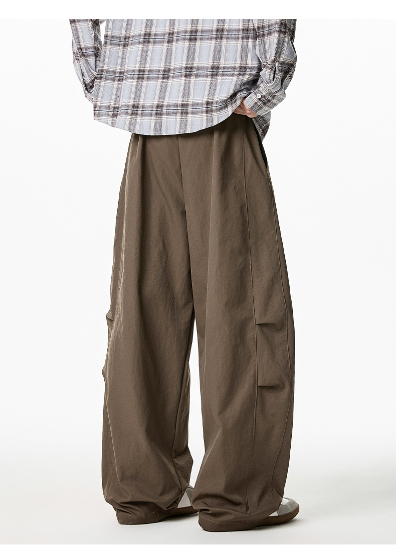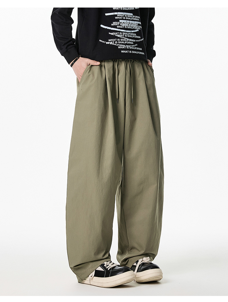 打褶设计日系宽松弯刀休闲裤男春季新款裤子潮牌宽松纯色微阔长裤
