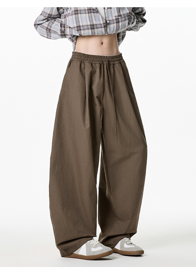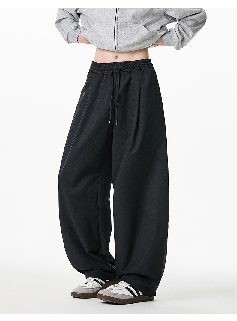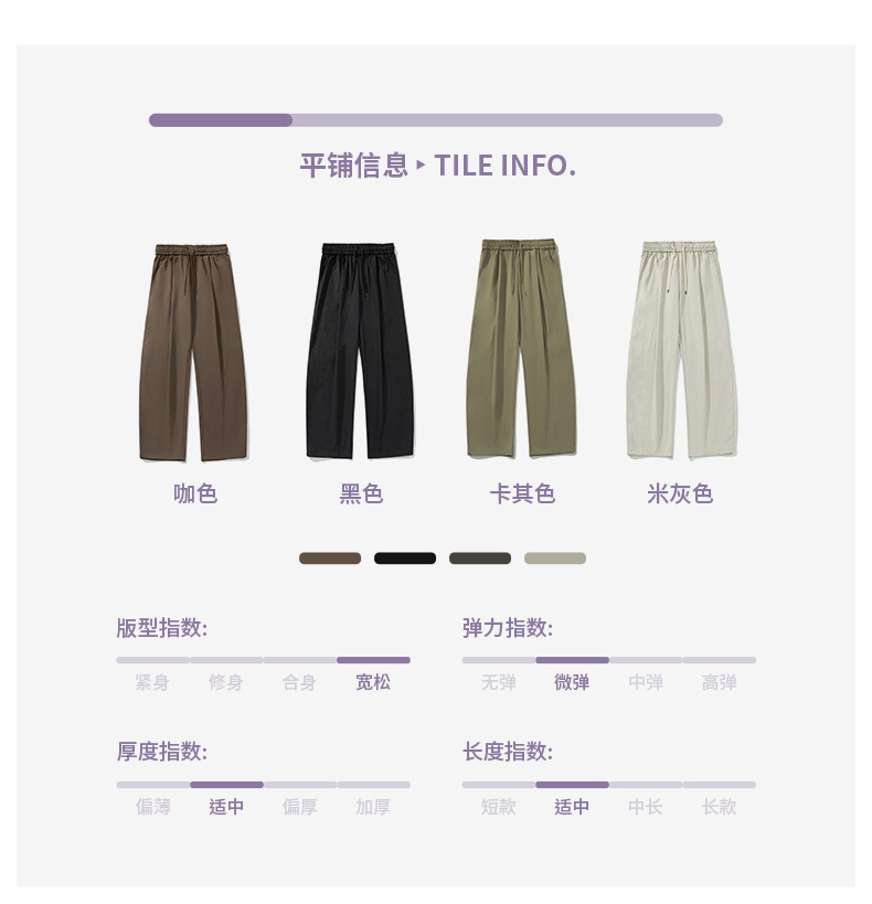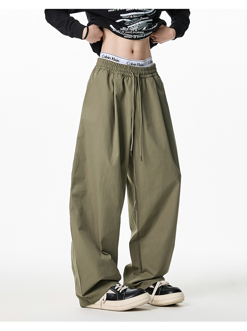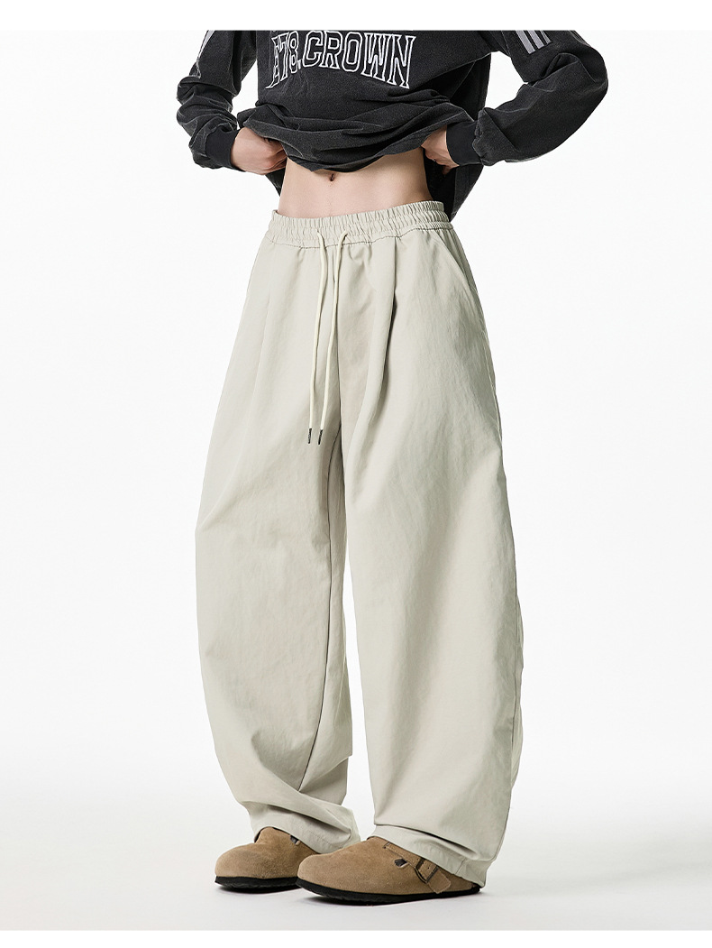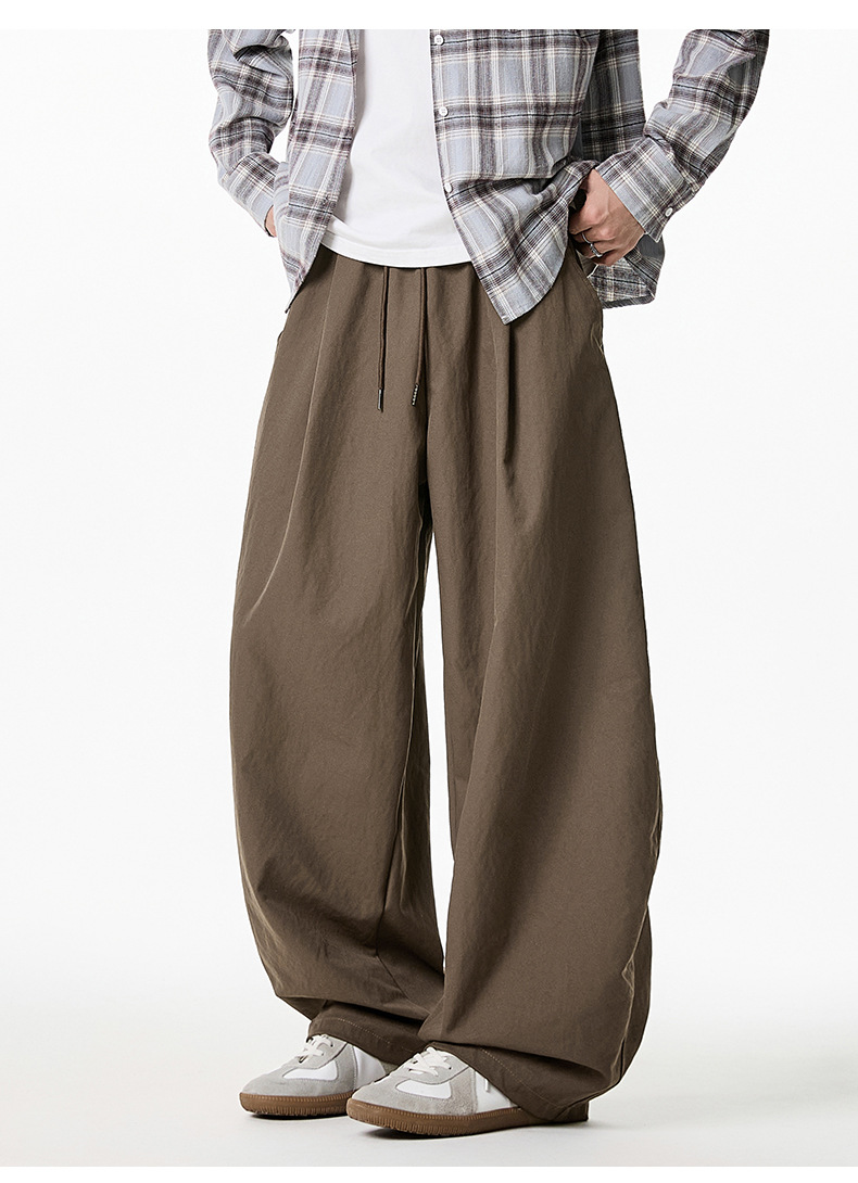打褶设计日系宽松弯刀休闲裤男春季新款裤子潮牌宽松纯色微阔长裤