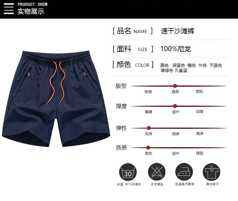 跨境夏季速干短裤男装休闲沙滩裤 欧码四分裤沙滩短裤男士裤衩