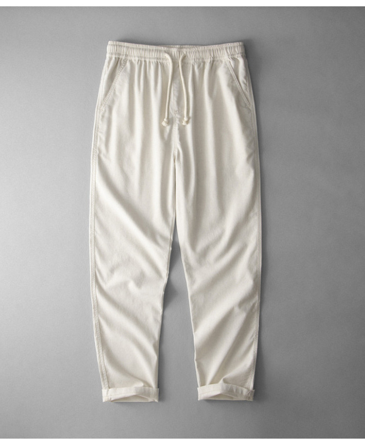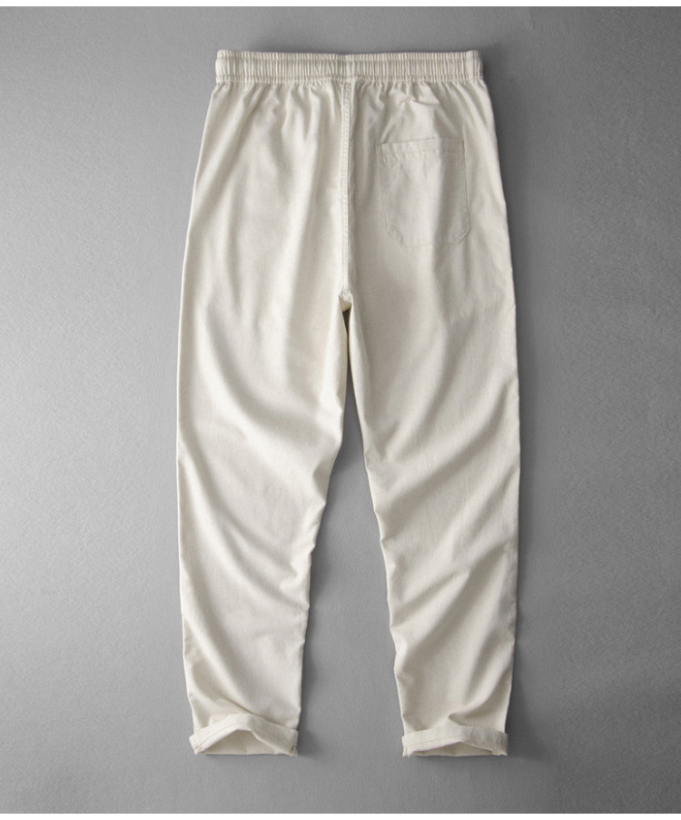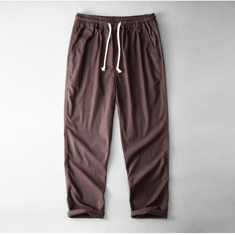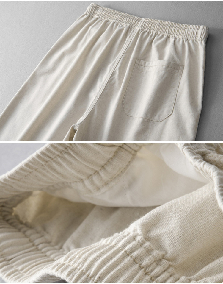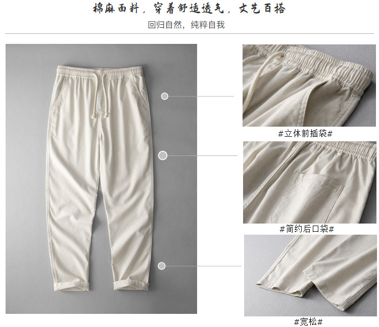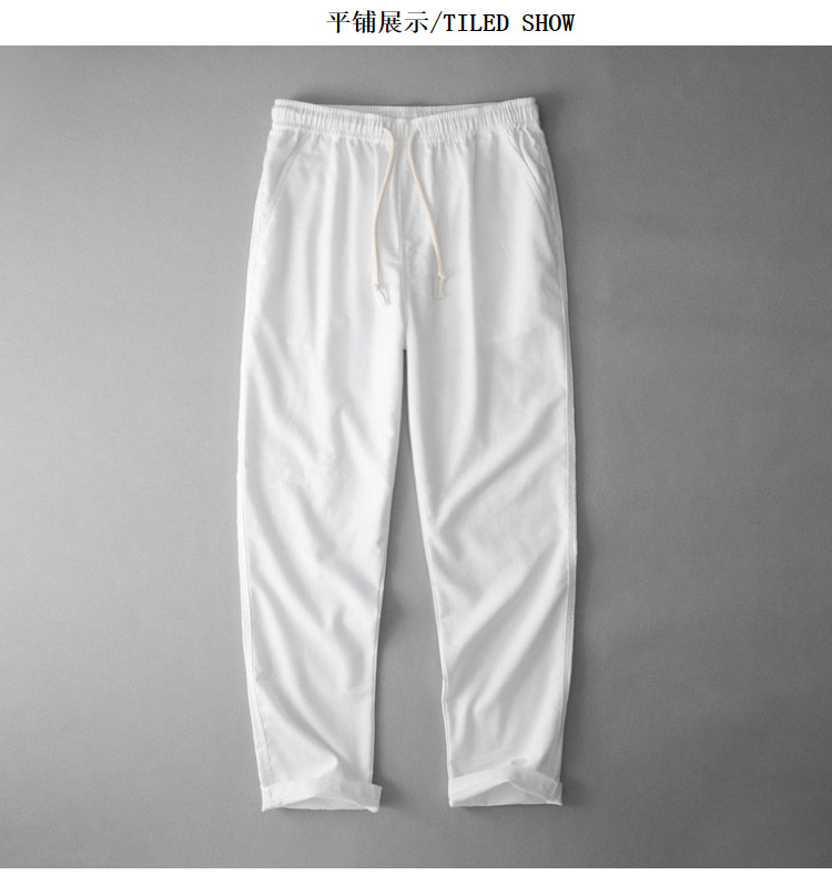 订亚麻长裤男士宽松直筒麻长裤加大加肥棉麻裤松紧腰大码男夏透气