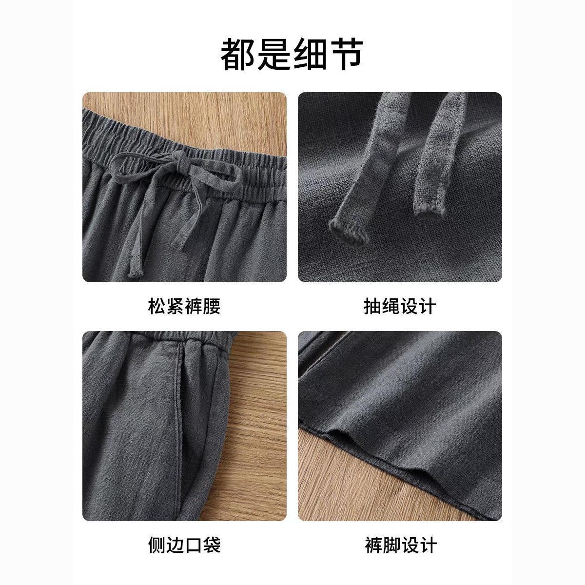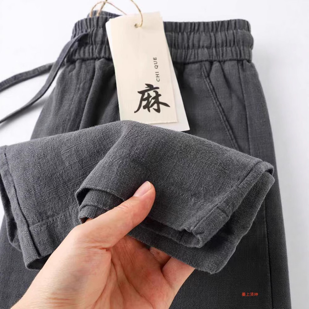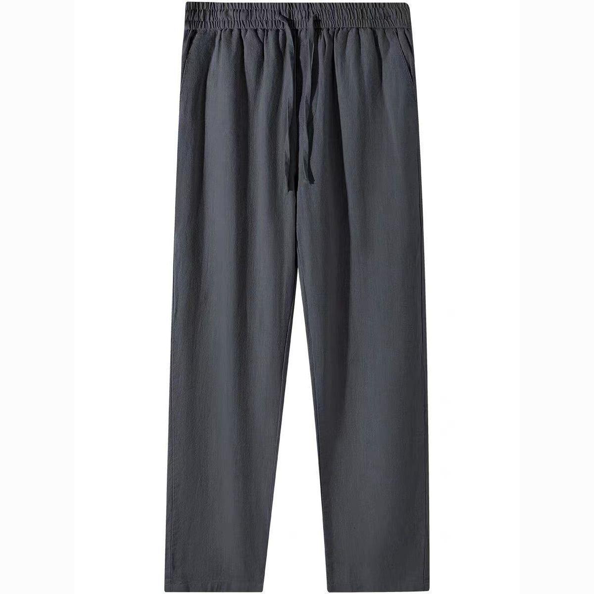 高端亚麻裤深灰色棉麻裤子宽松直筒裤夏季薄款苎麻长裤男士休闲裤