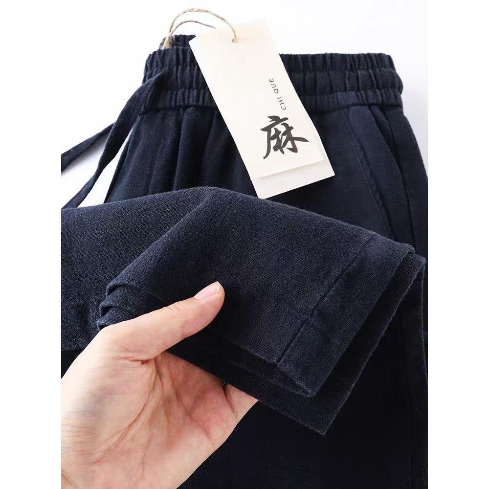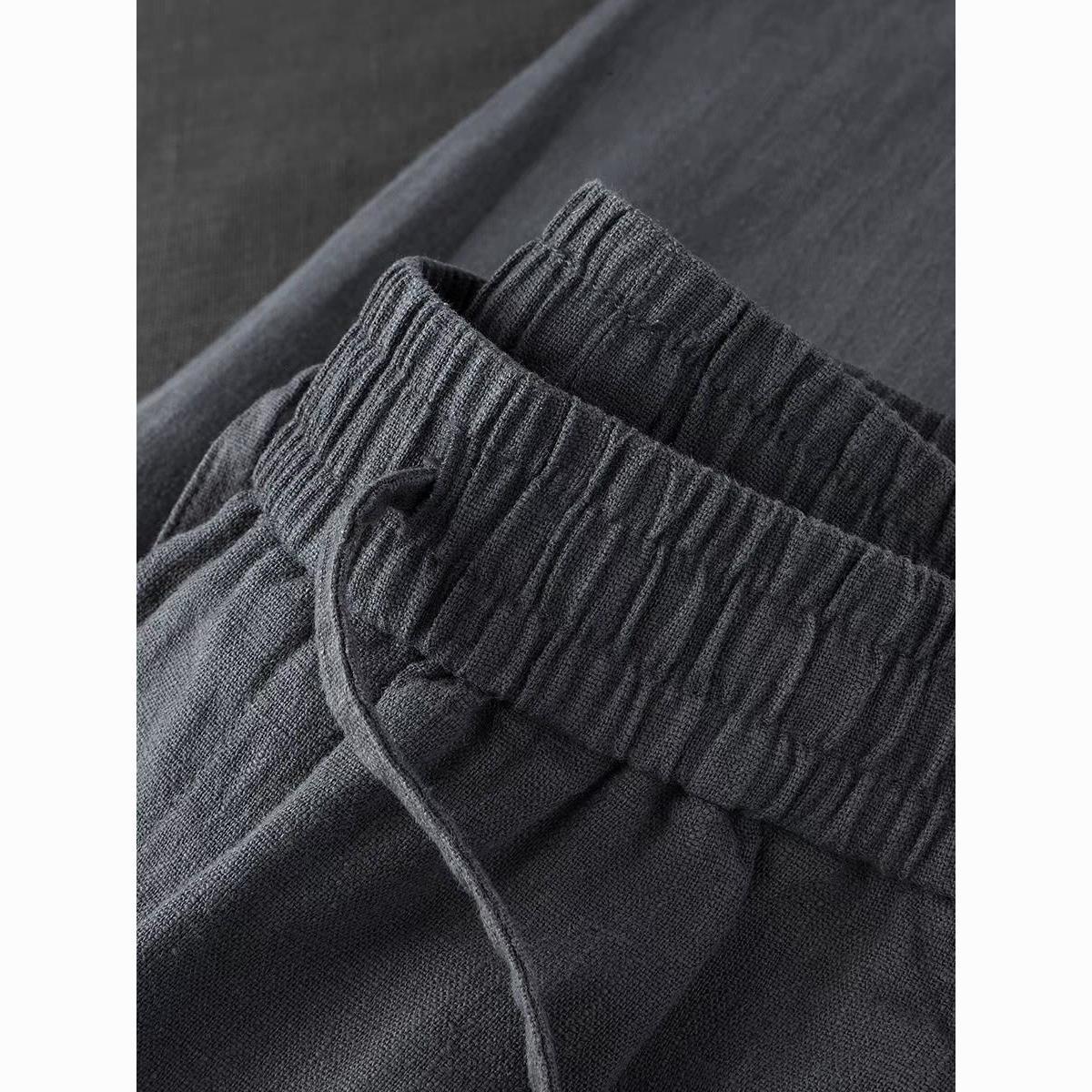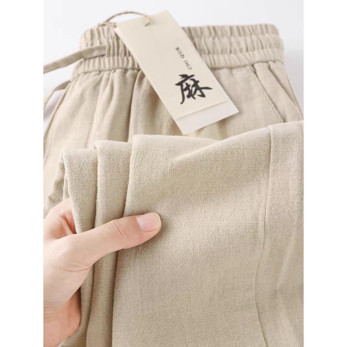 高端亚麻裤深灰色棉麻裤子宽松直筒裤夏季薄款苎麻长裤男士休闲裤