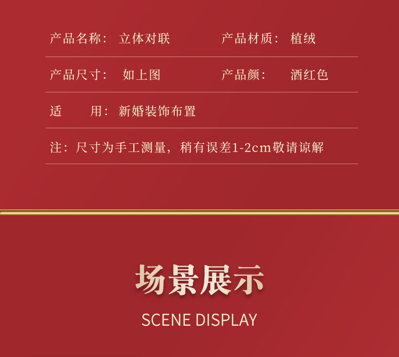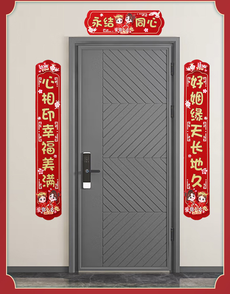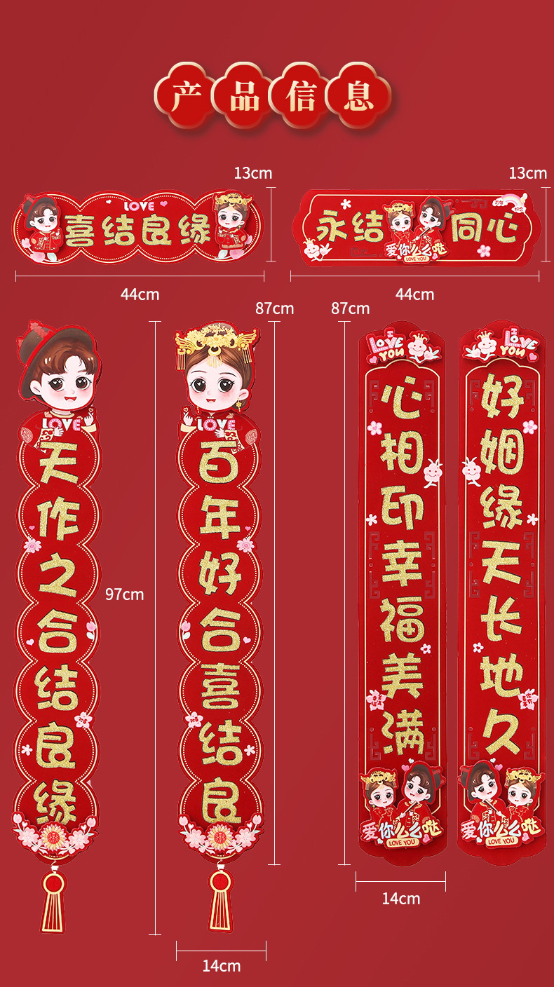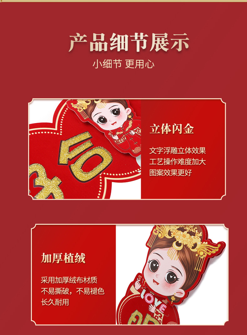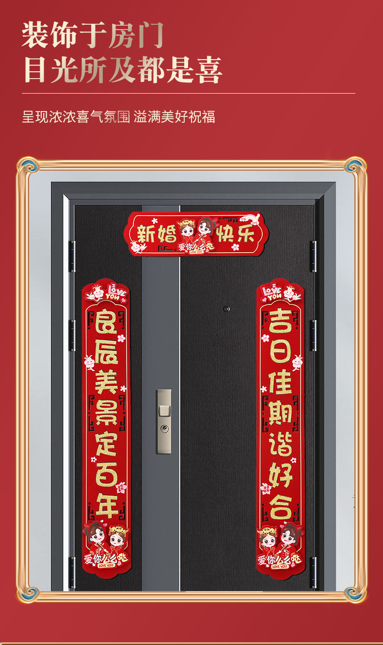 男方女方布置新婚大门新款结婚对联植绒立体金粉喜联婚房装饰