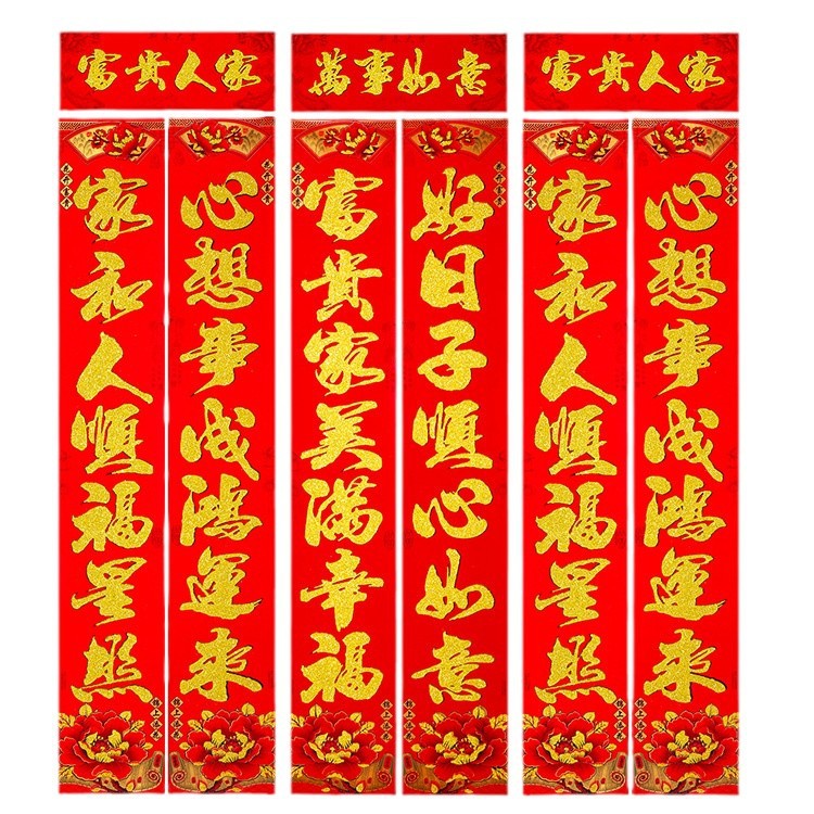 2026马年春节对联新款撒金粉生意植绒对联铜版纸春联厂家批发