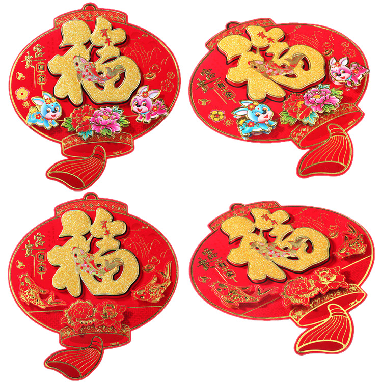 2026新款马年立体生肖贴门神财神灯笼苹果福字地摊货源厂家喜庆