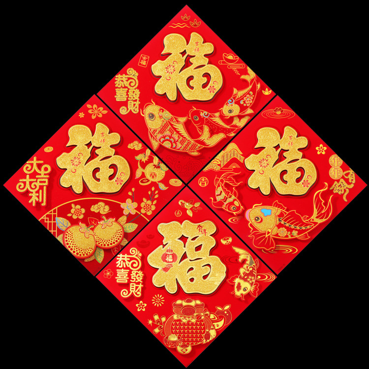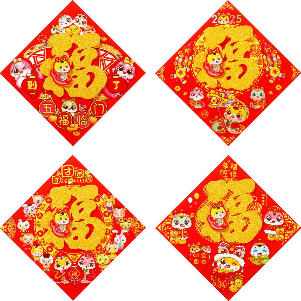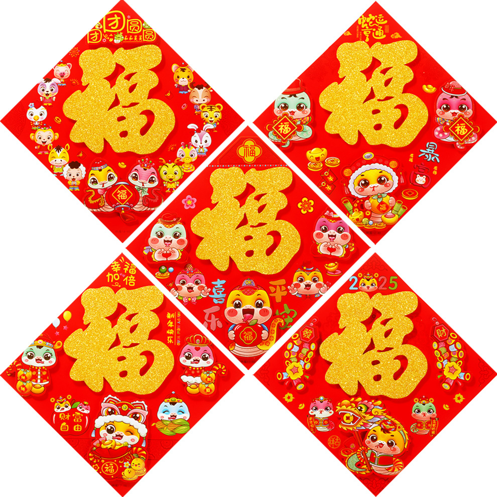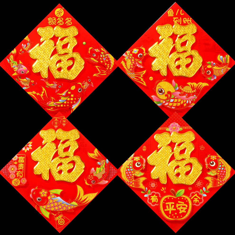 2026马年新年福字装饰过年大门绒布福字门贴烫金福字生肖门贴