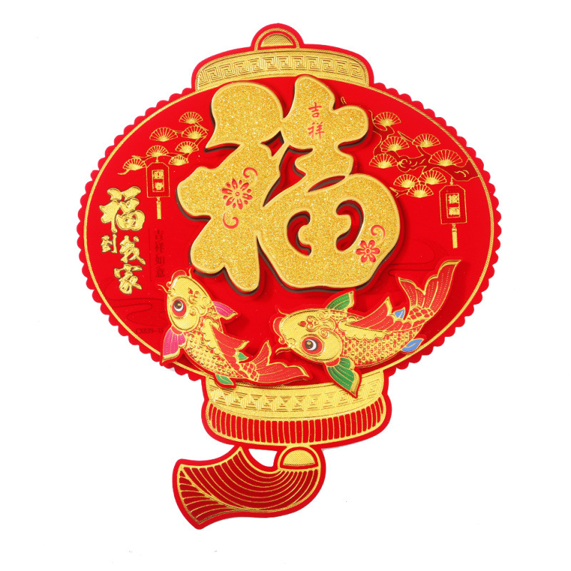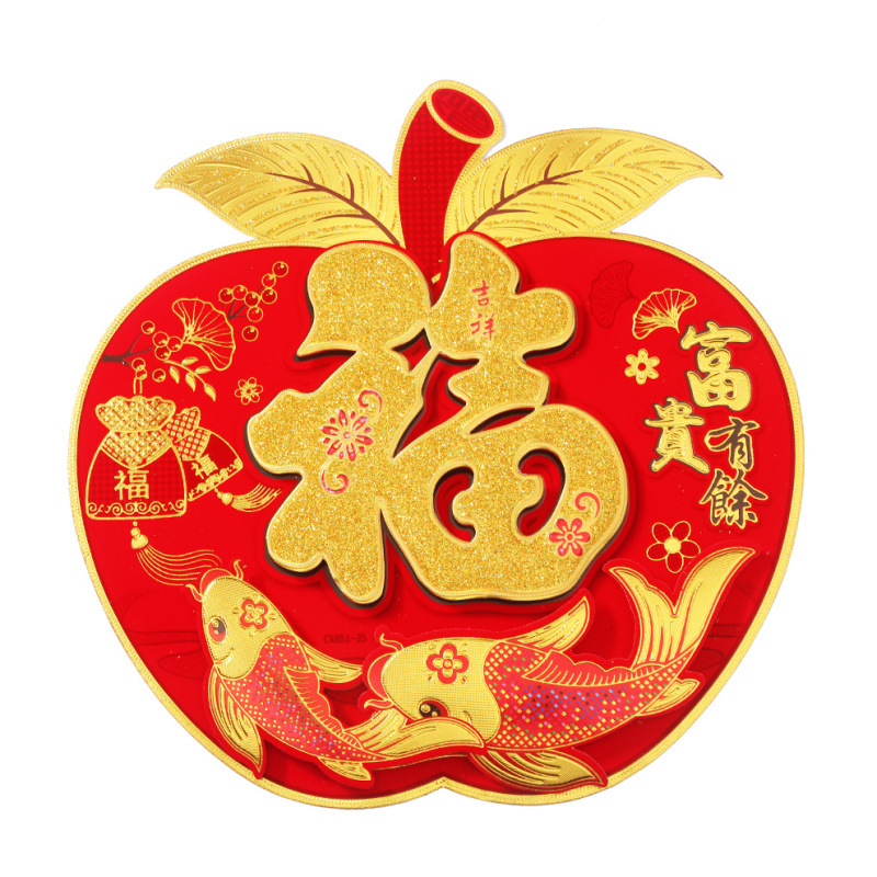 植绒立体福字新年门贴生肖苹果灯笼钱袋圆福装饰迷你包邮