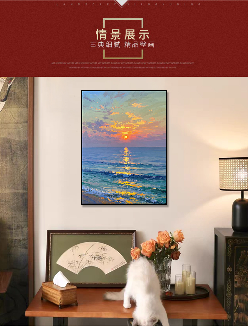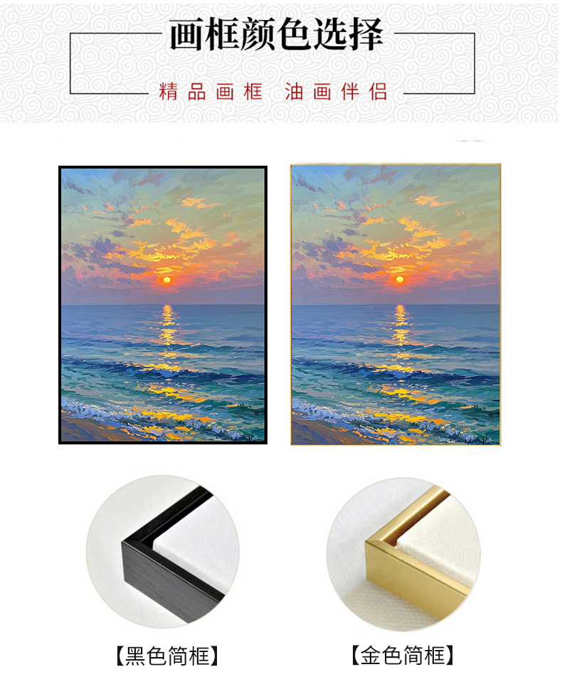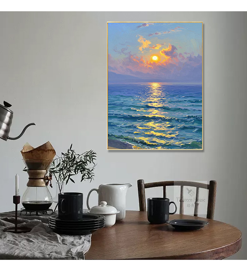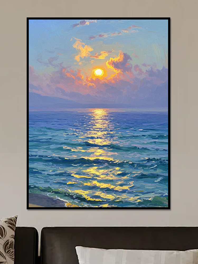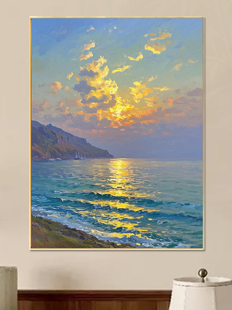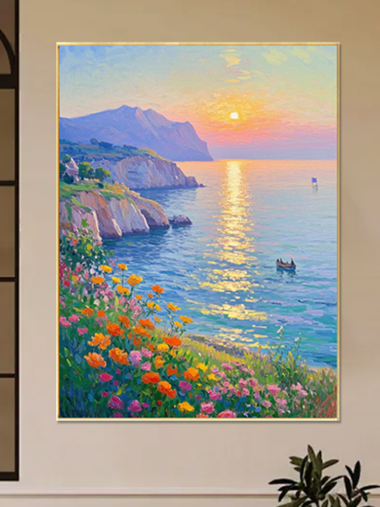 手绘油画莫奈玄关客厅装饰画海景风景卧室法式轻奢风景走廊过道