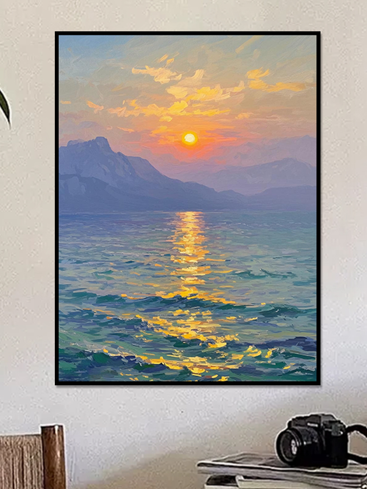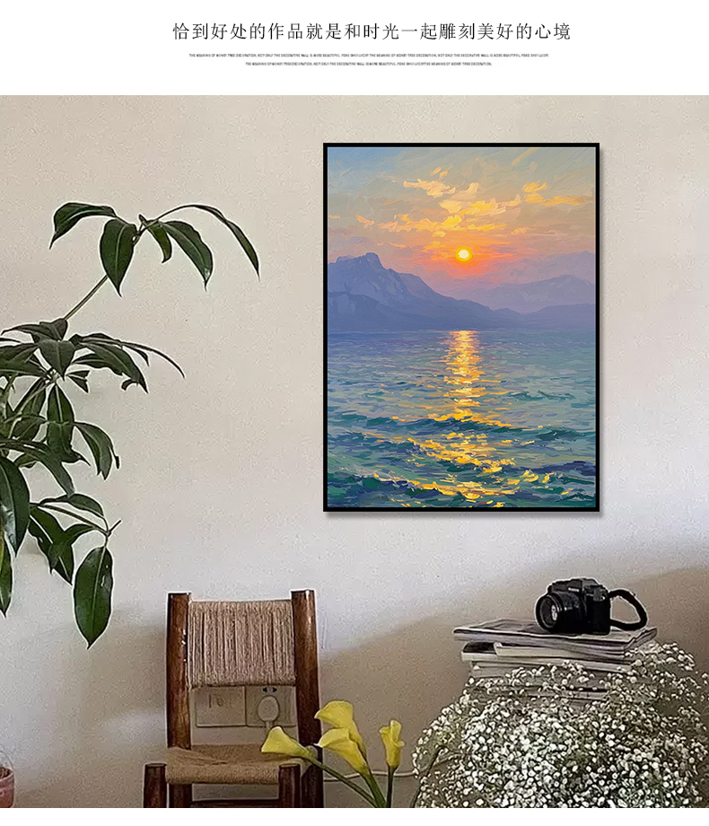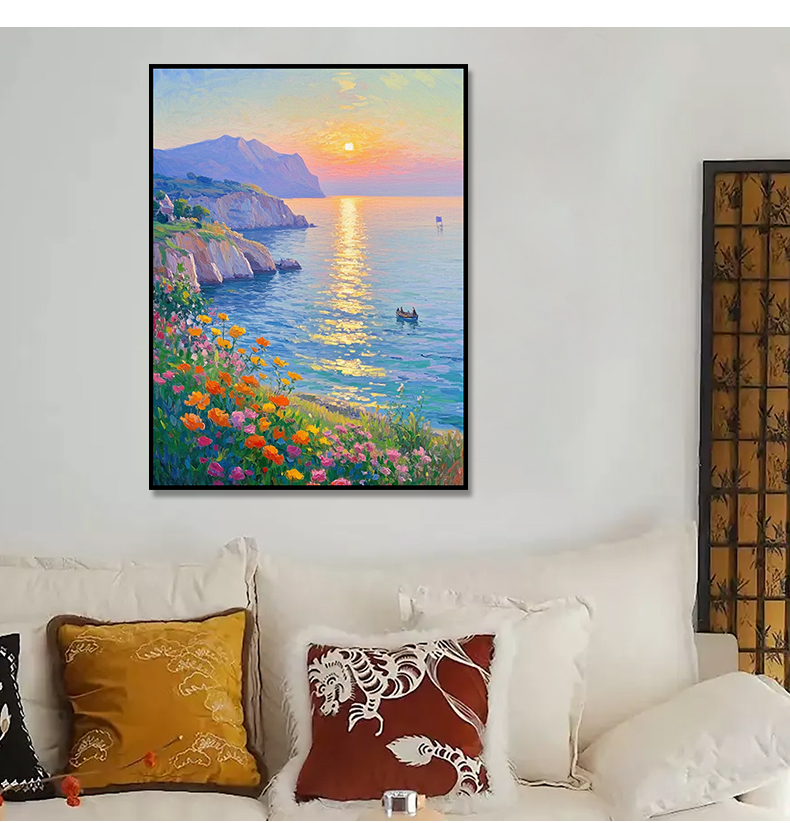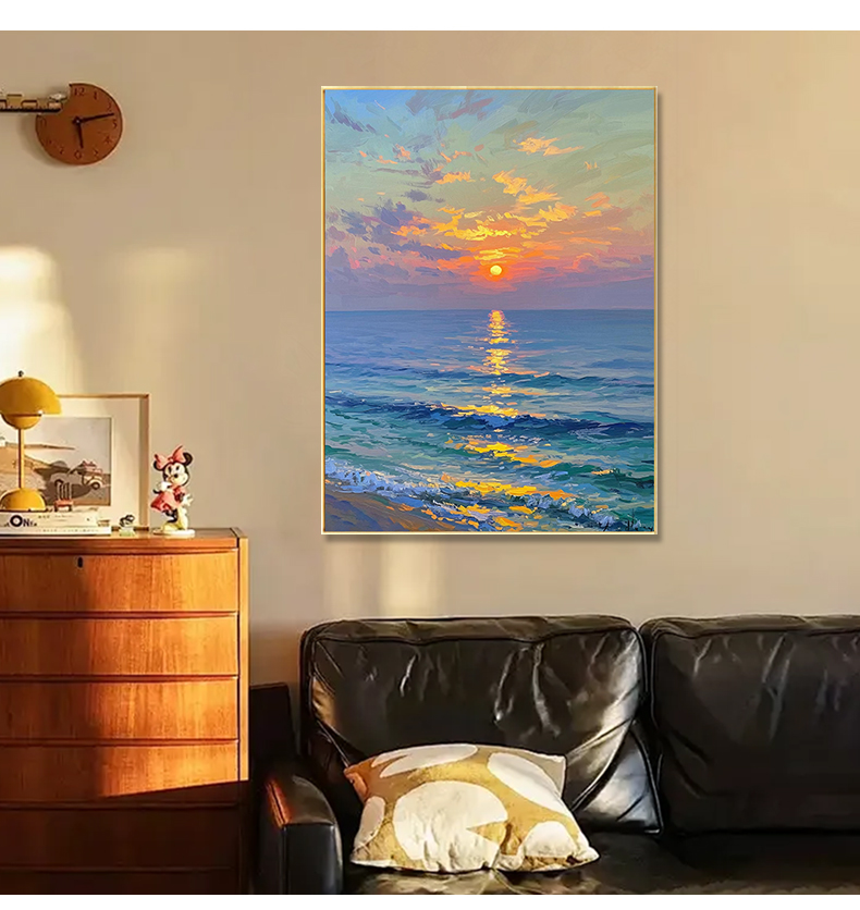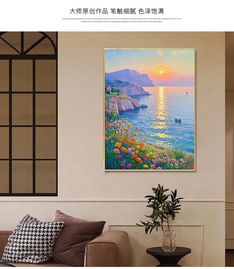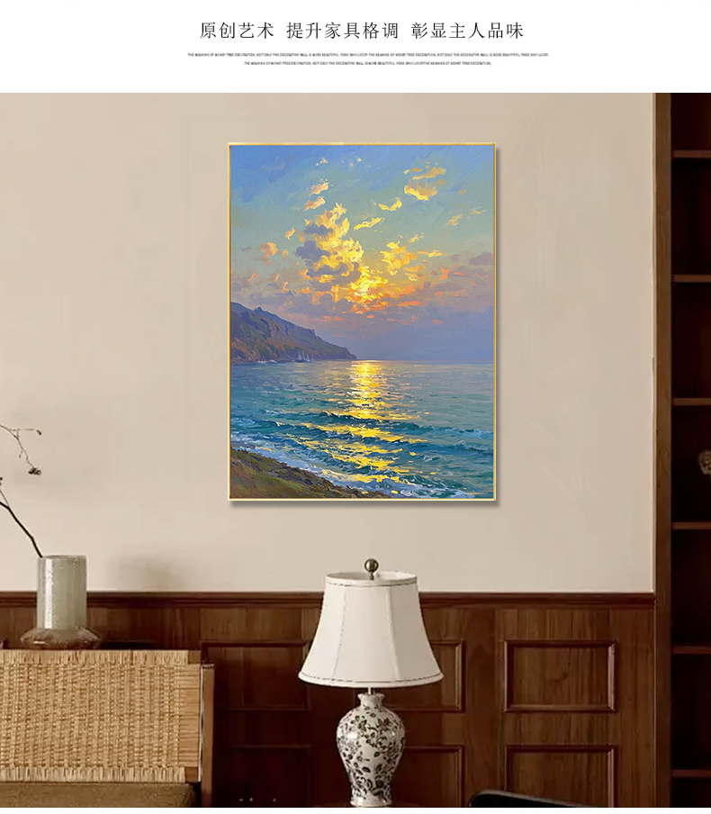手绘油画莫奈玄关客厅装饰画海景风景卧室法式轻奢风景走廊过道