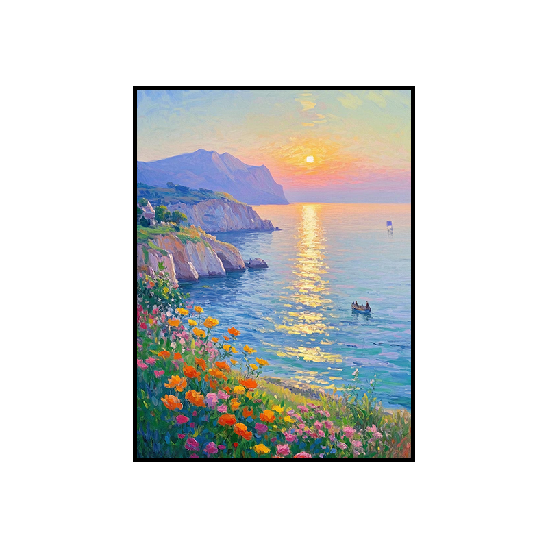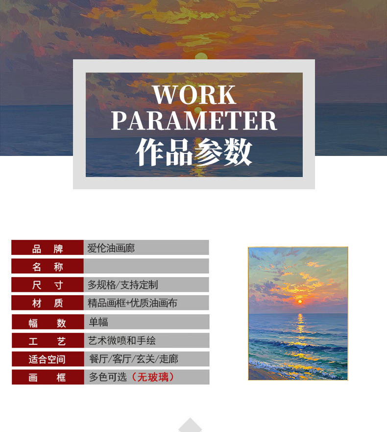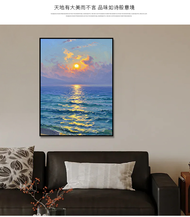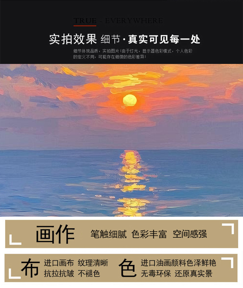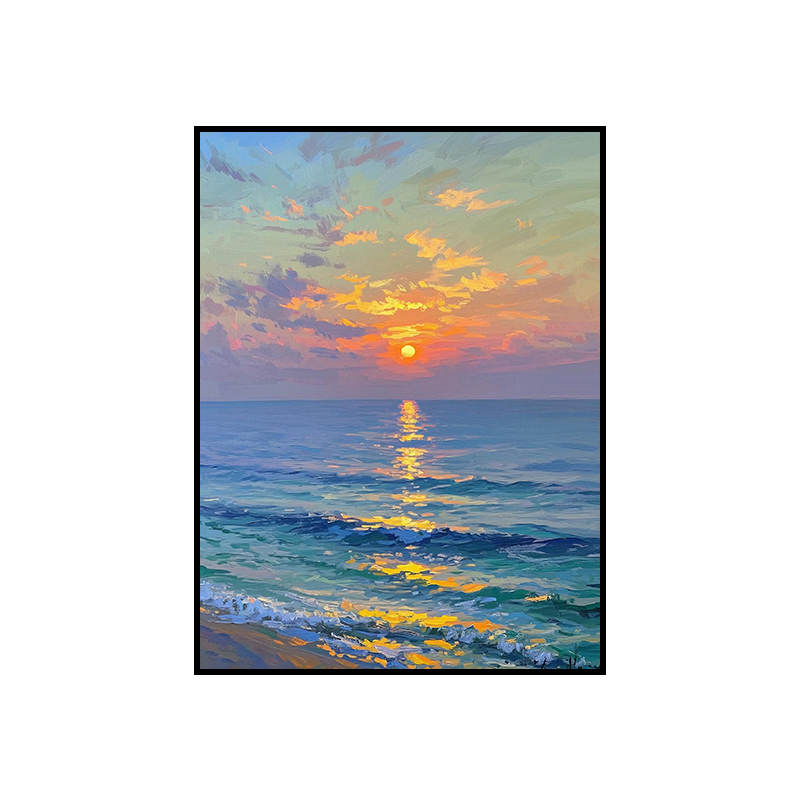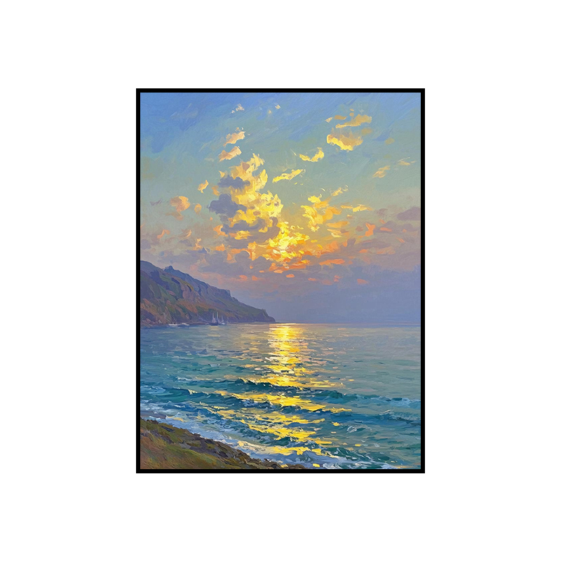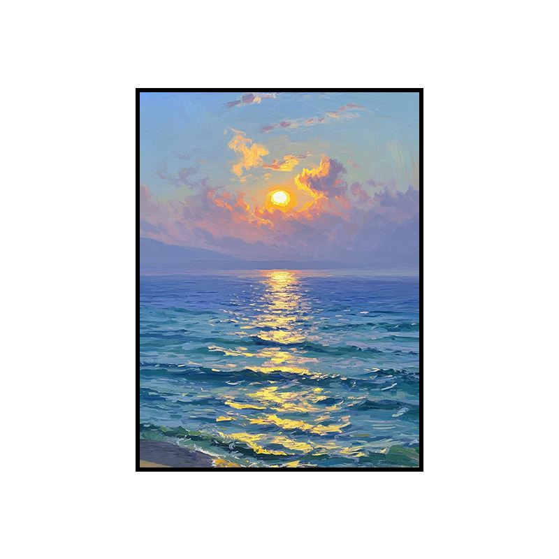 手绘油画莫奈玄关客厅装饰画海景风景卧室法式轻奢风景走廊过道