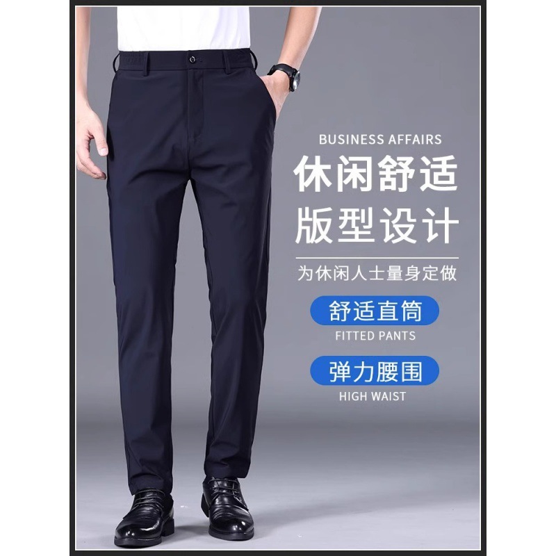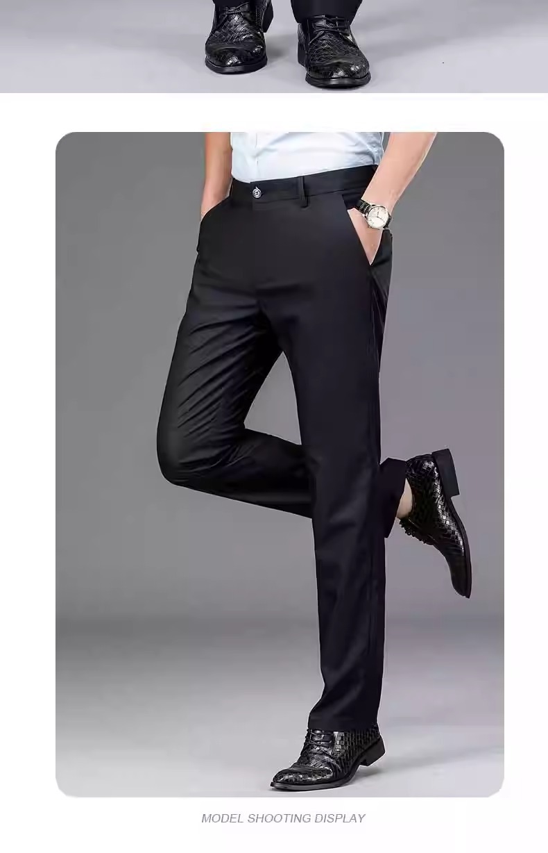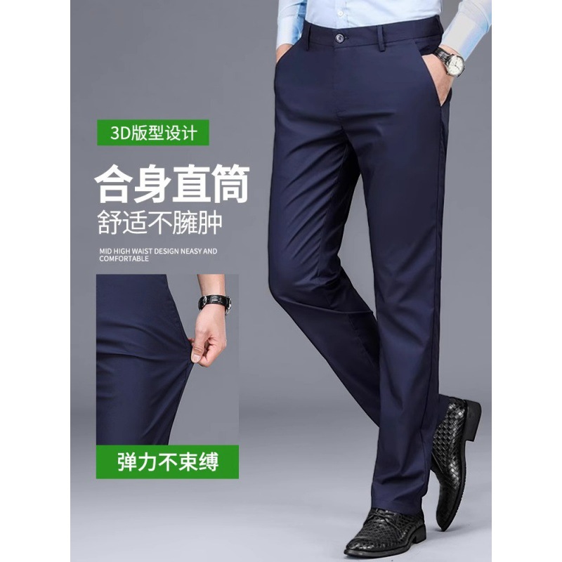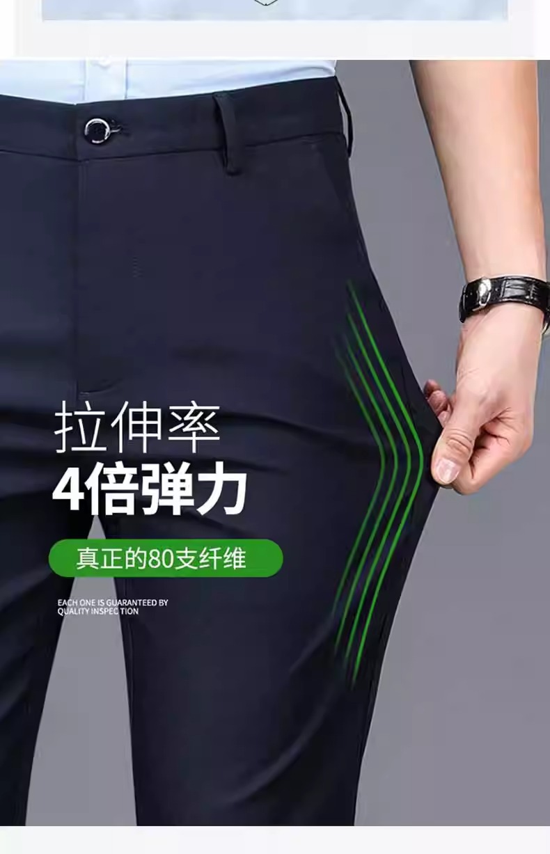 跨境外贸加绒男士休闲裤秋冬厚款宽松直筒抗皱弹力中年商务西裤长