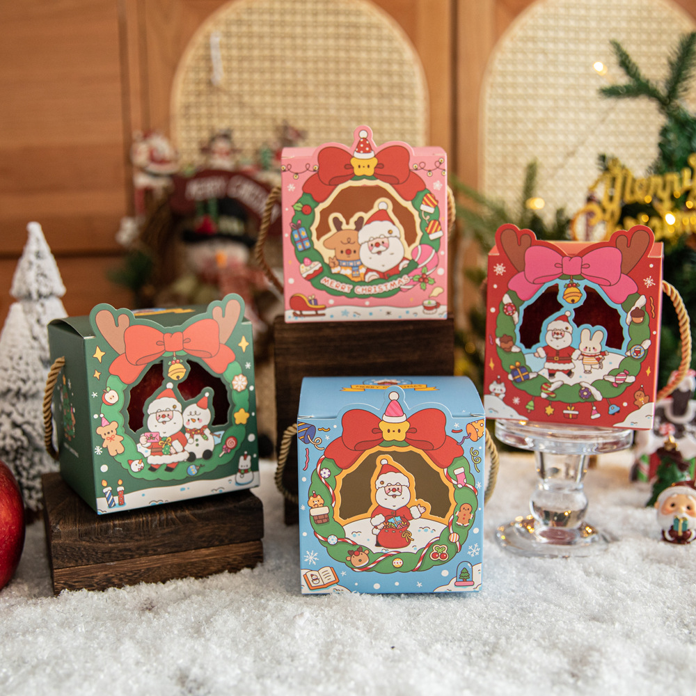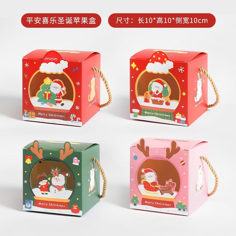 圣诞苹果盒新款开窗可爱手提儿童糖果袋卡通平安夜礼物包装水晶盒