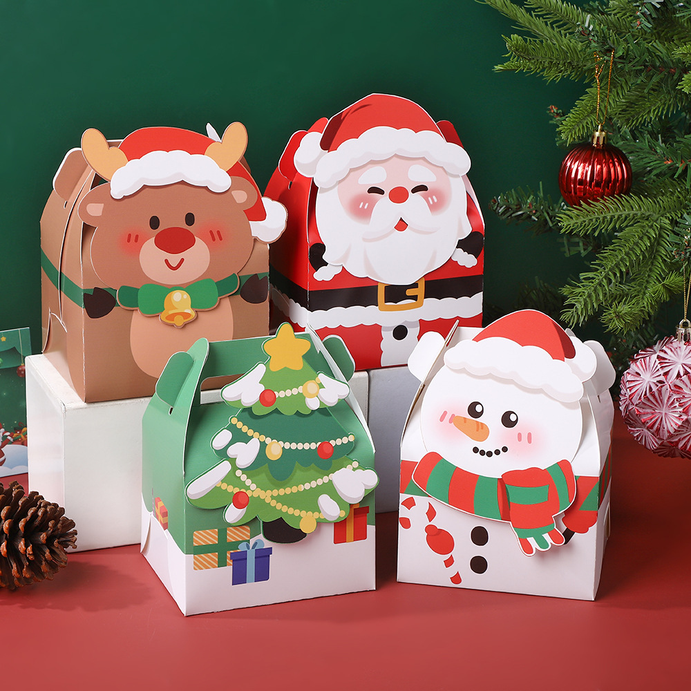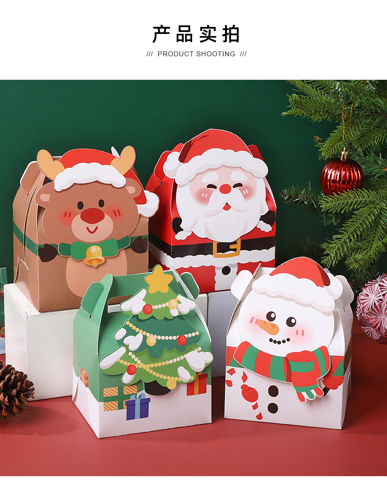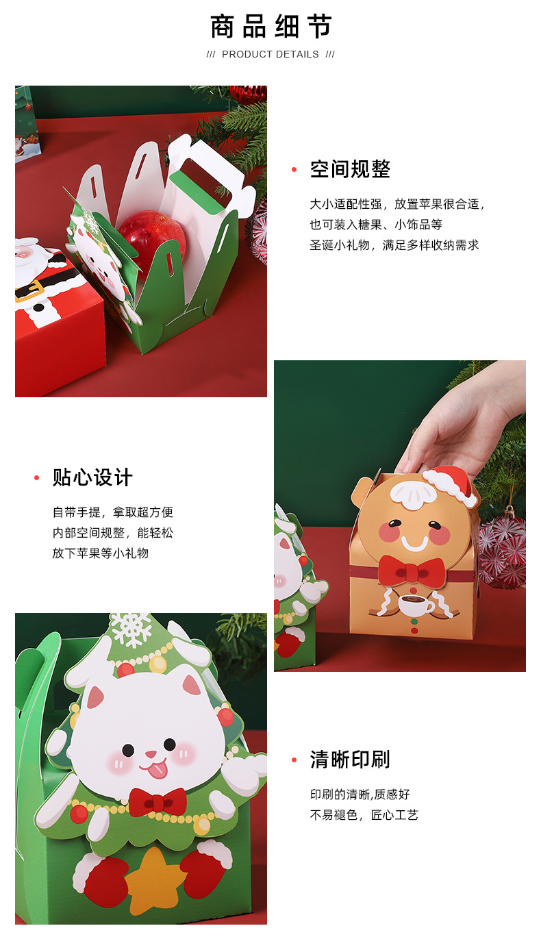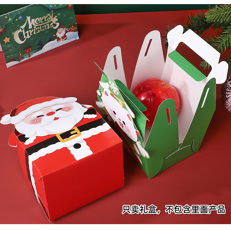 跨境圣诞卡通手提伴手礼盒平安夜苹果包装纸盒欧美创意折叠马苏盒