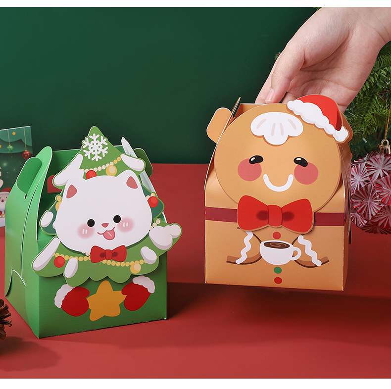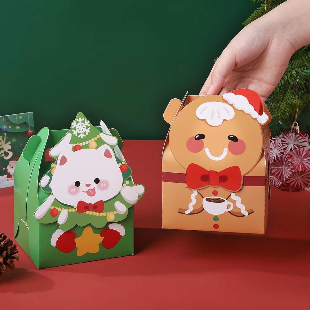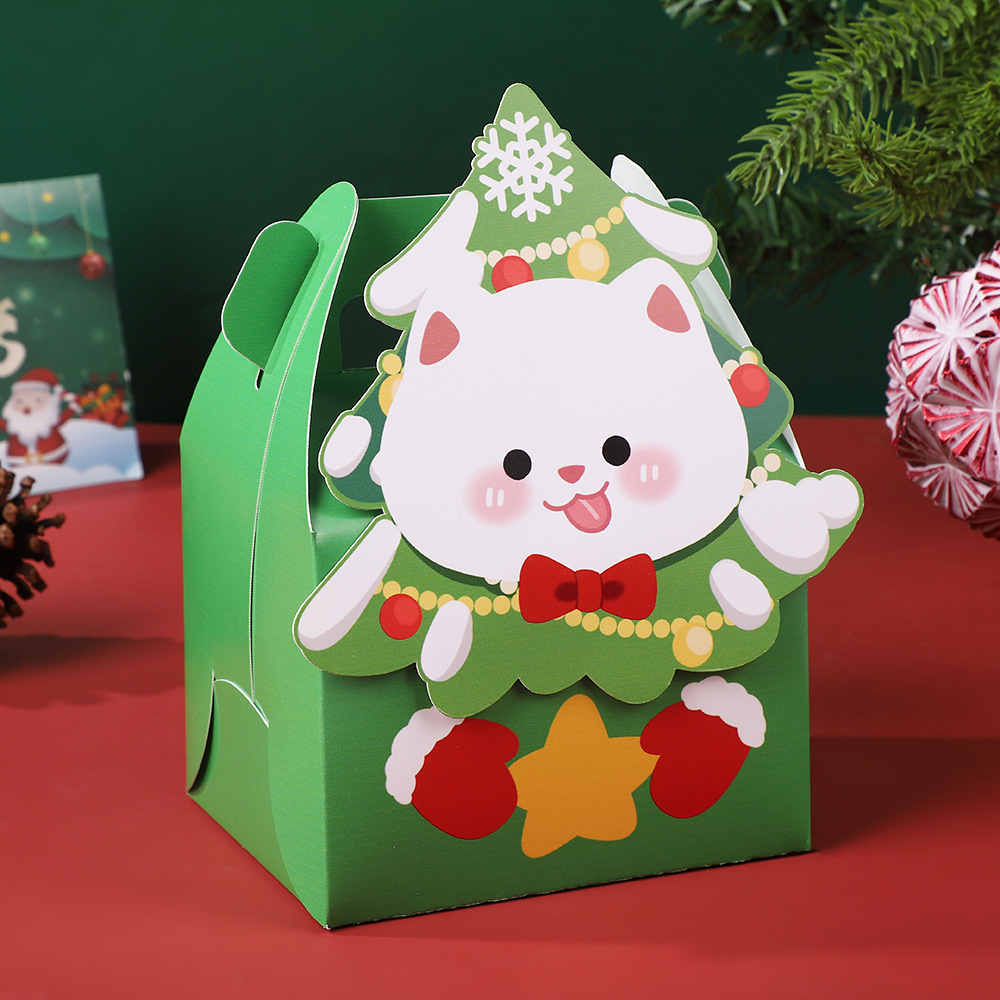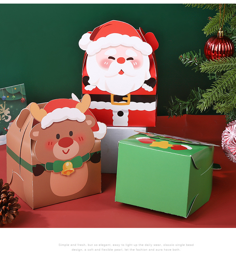 跨境圣诞卡通手提伴手礼盒平安夜苹果包装纸盒欧美创意折叠马苏盒