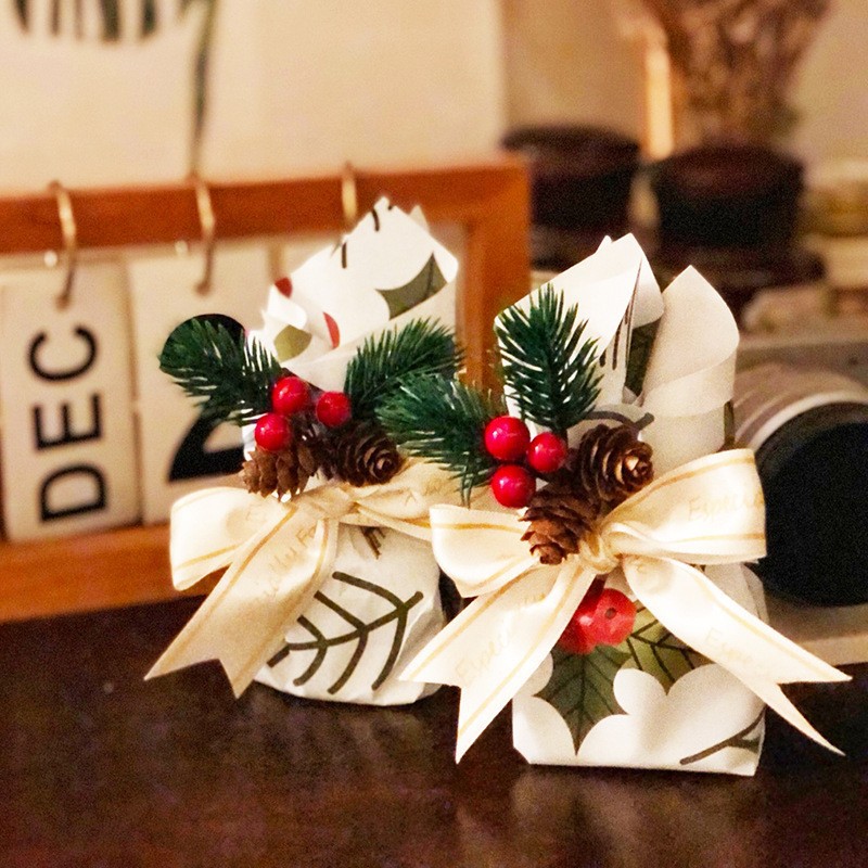 圣诞松针盒装饰仿真花圣诞装饰饰品平安夜苹果礼盒装饰圣诞礼品