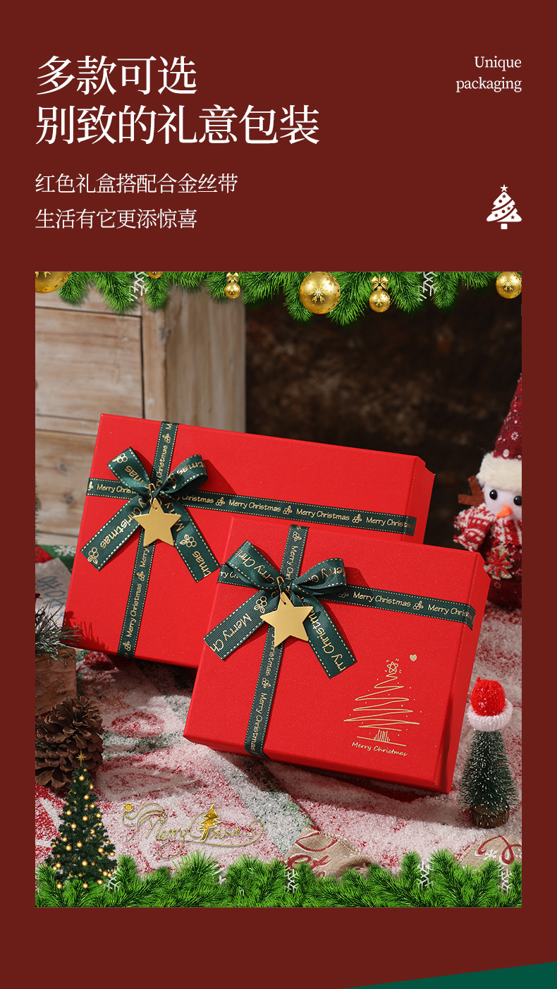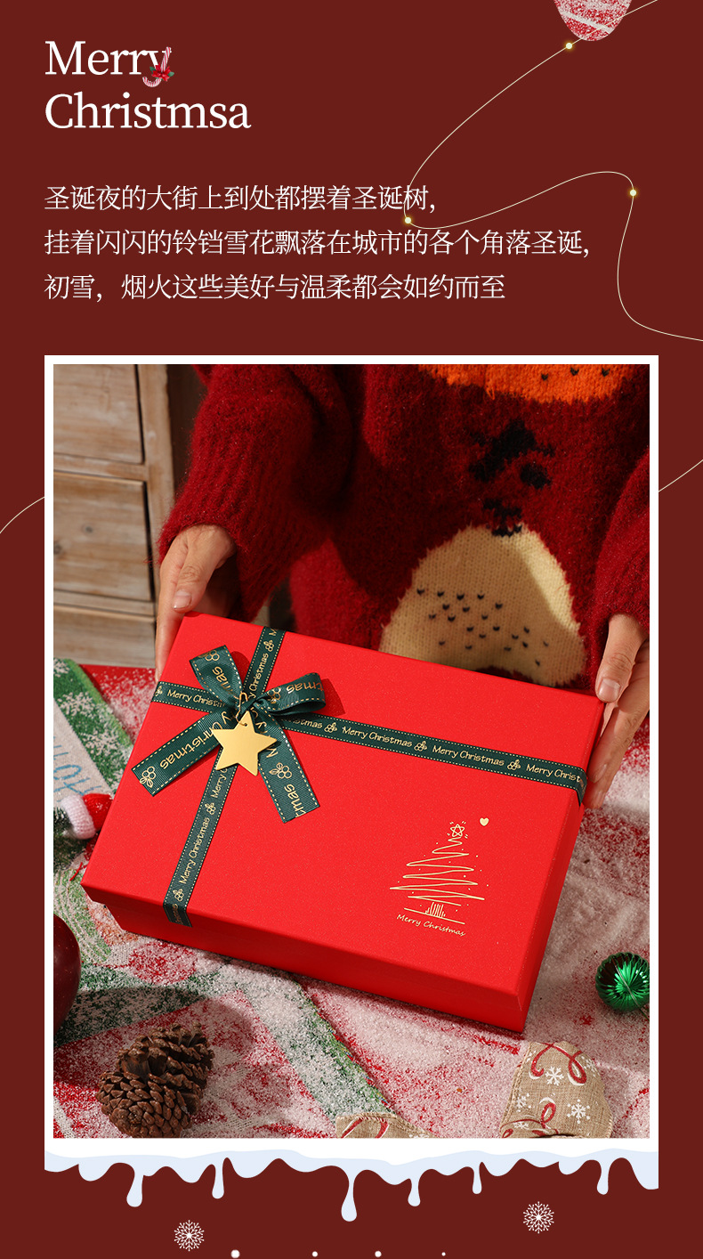 现货圣诞礼品盒红色喜庆礼盒围巾保温杯盒平安夜礼物盒苹果包装盒