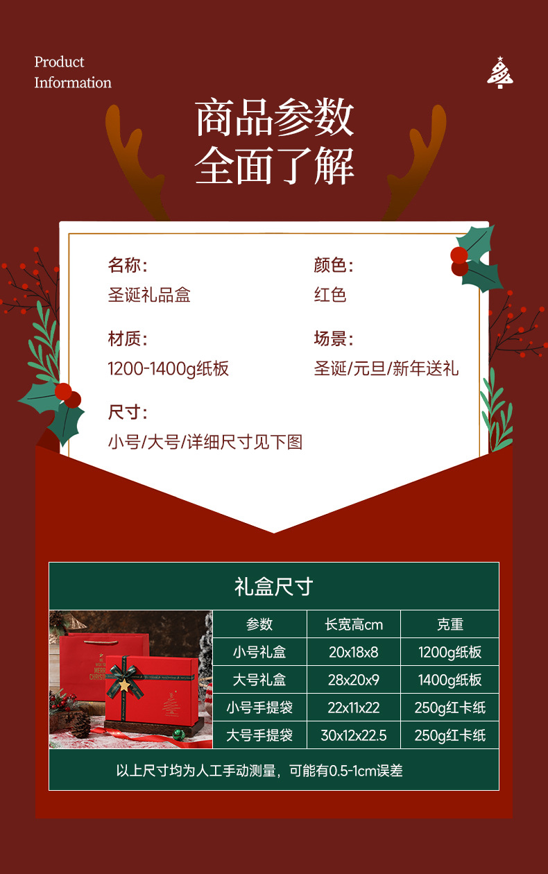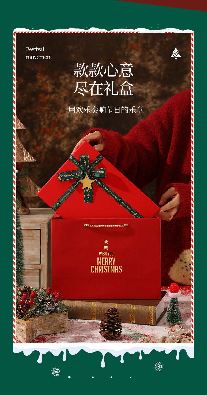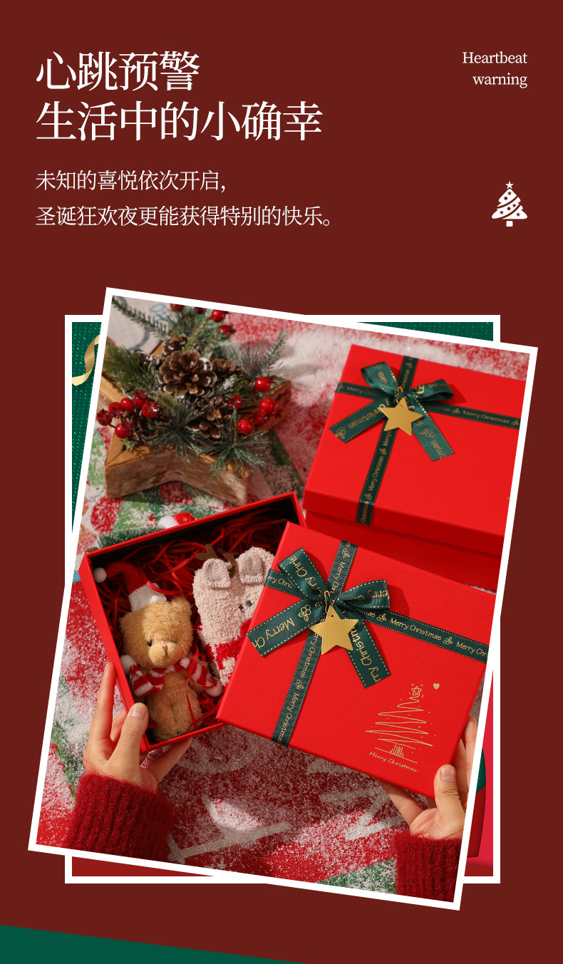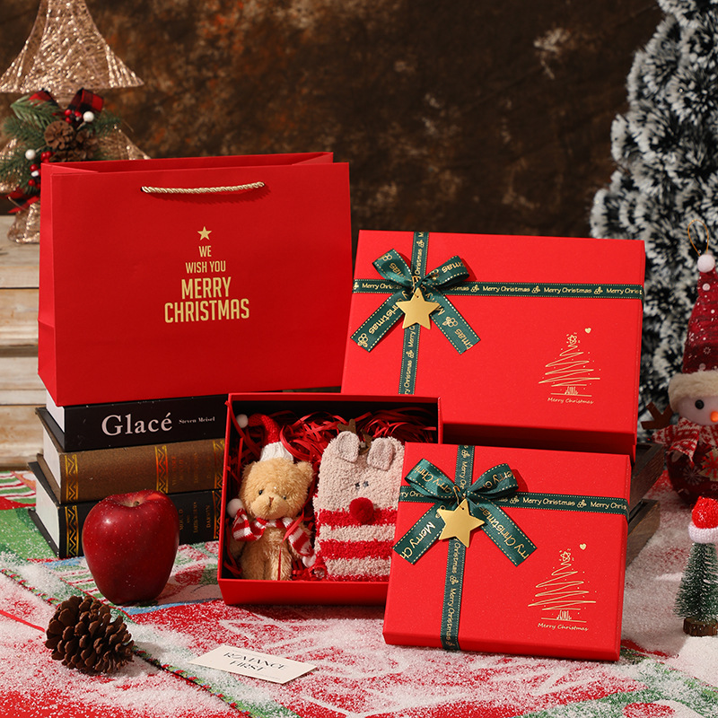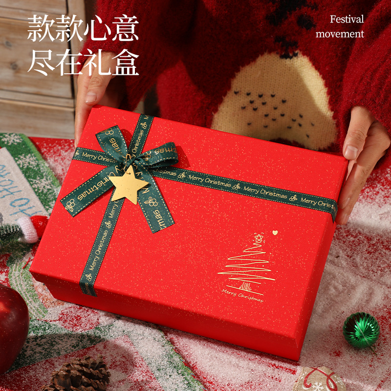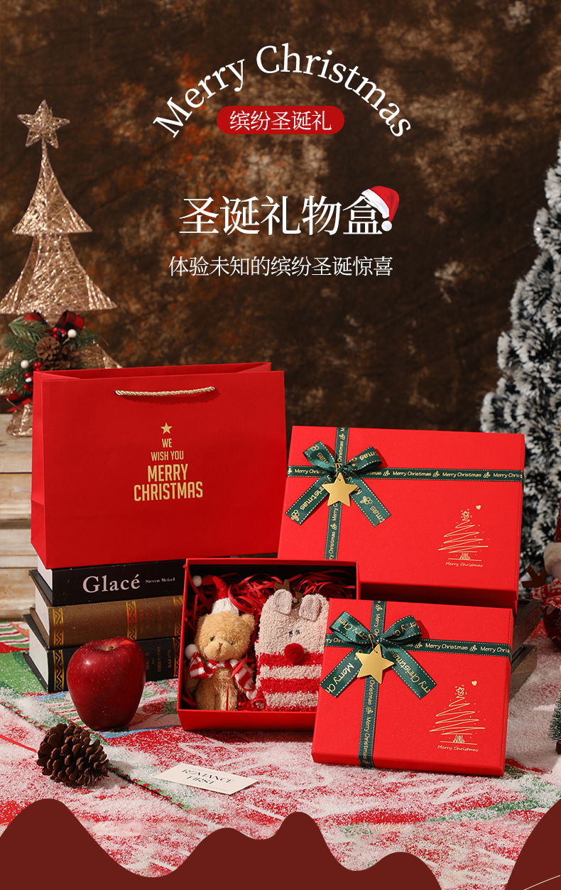 新款圣诞节礼物盒红色蝴蝶结围巾保温杯礼盒平安夜苹果包装盒批发