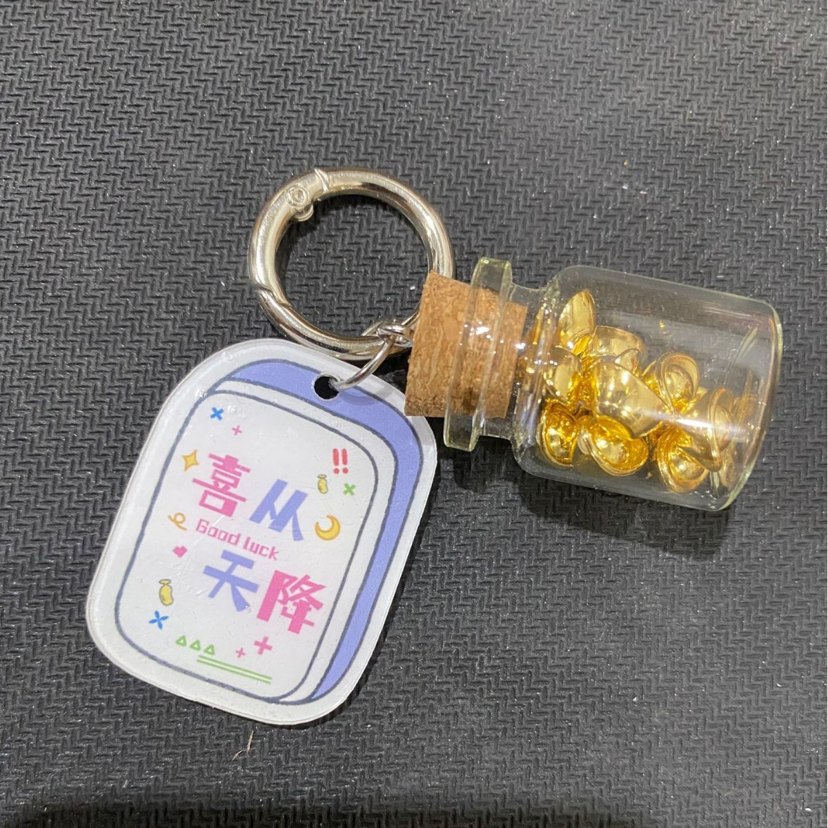 马年来财瓶财来开财库钥匙扣挂件发财亚克力牌打麻将网红ins风挂