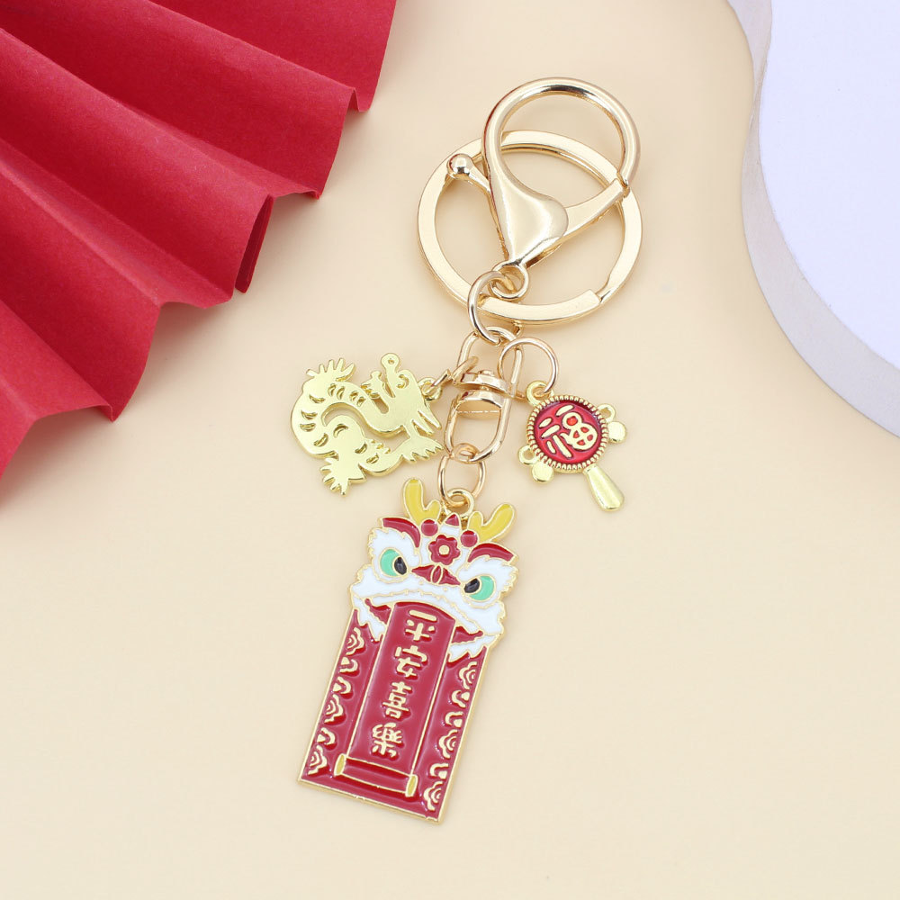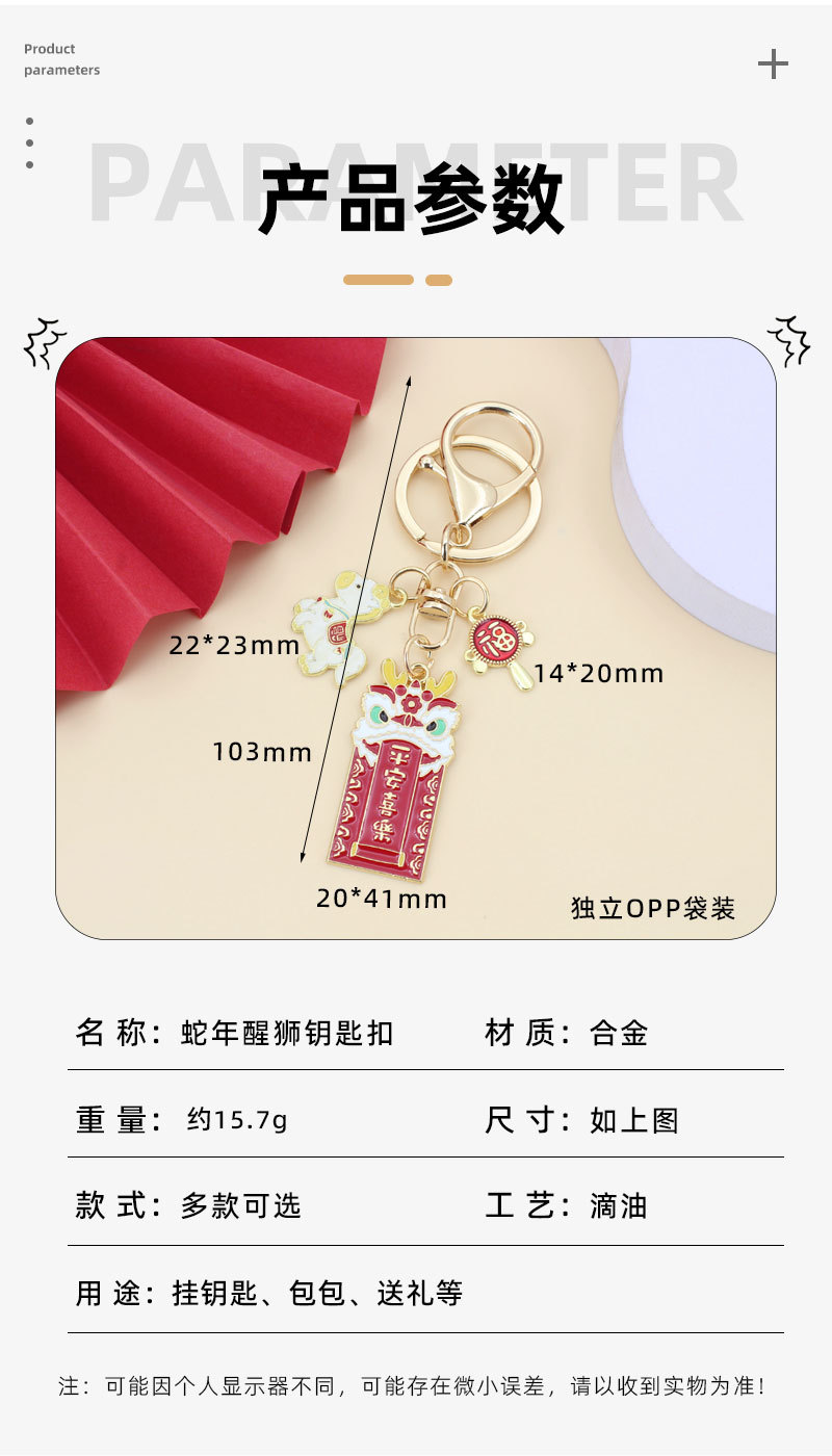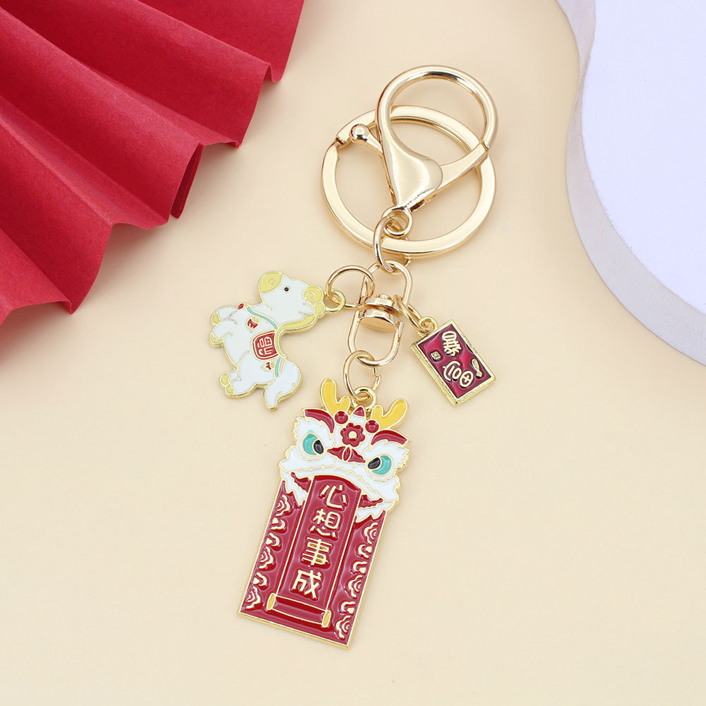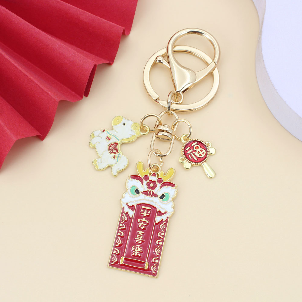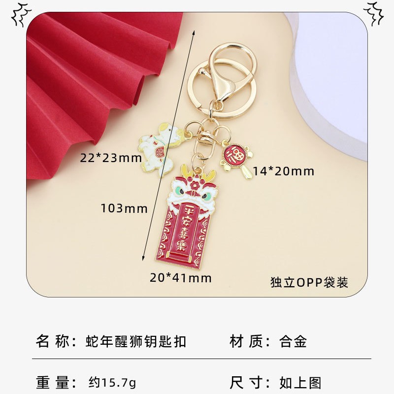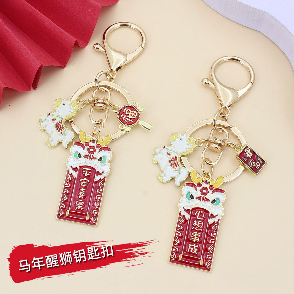新年平安喜乐吉祥字牌马年醒狮钥匙链挂件春节礼物恭喜发财钥匙扣