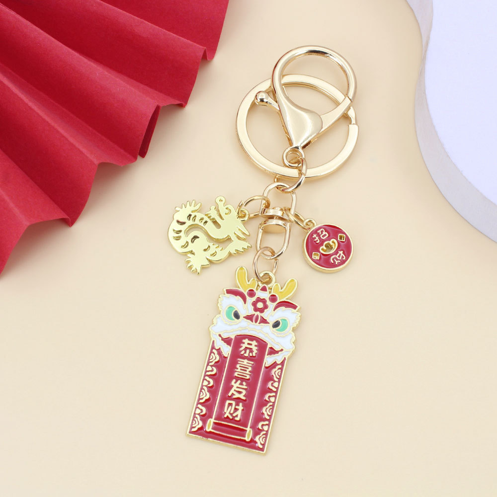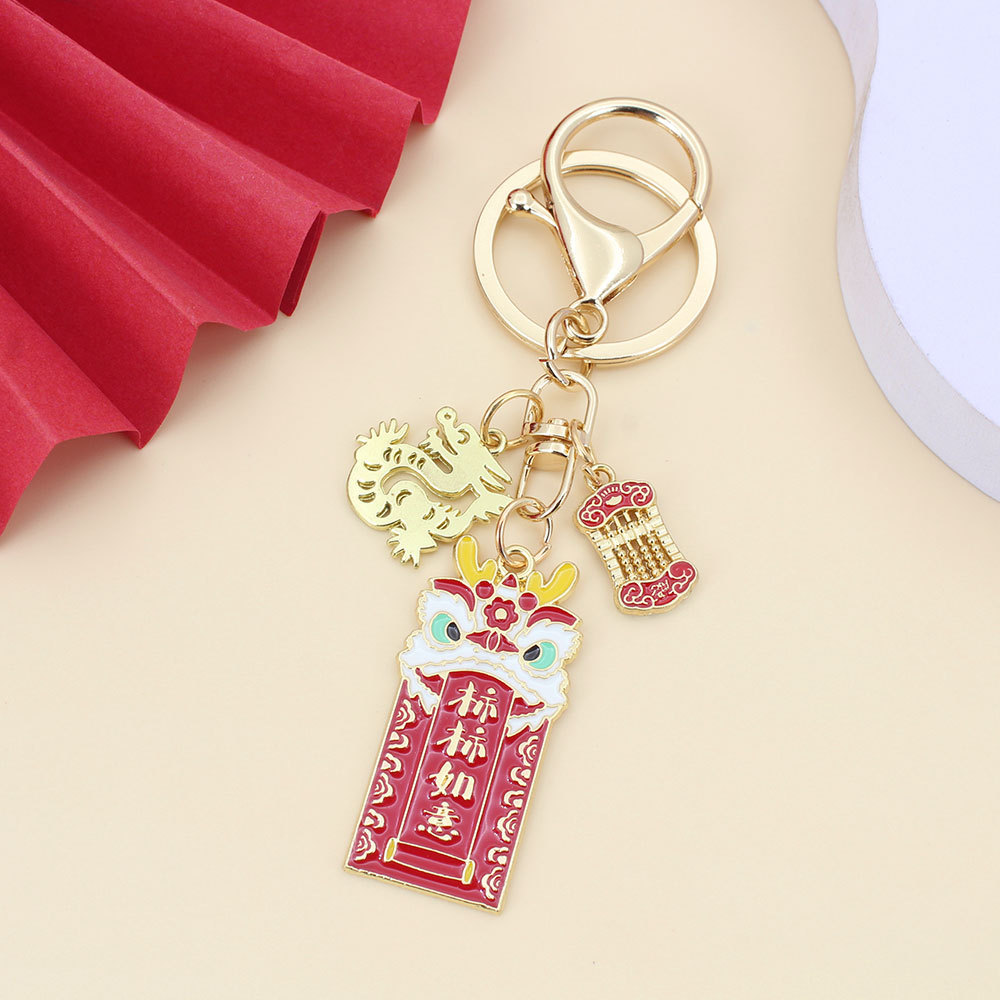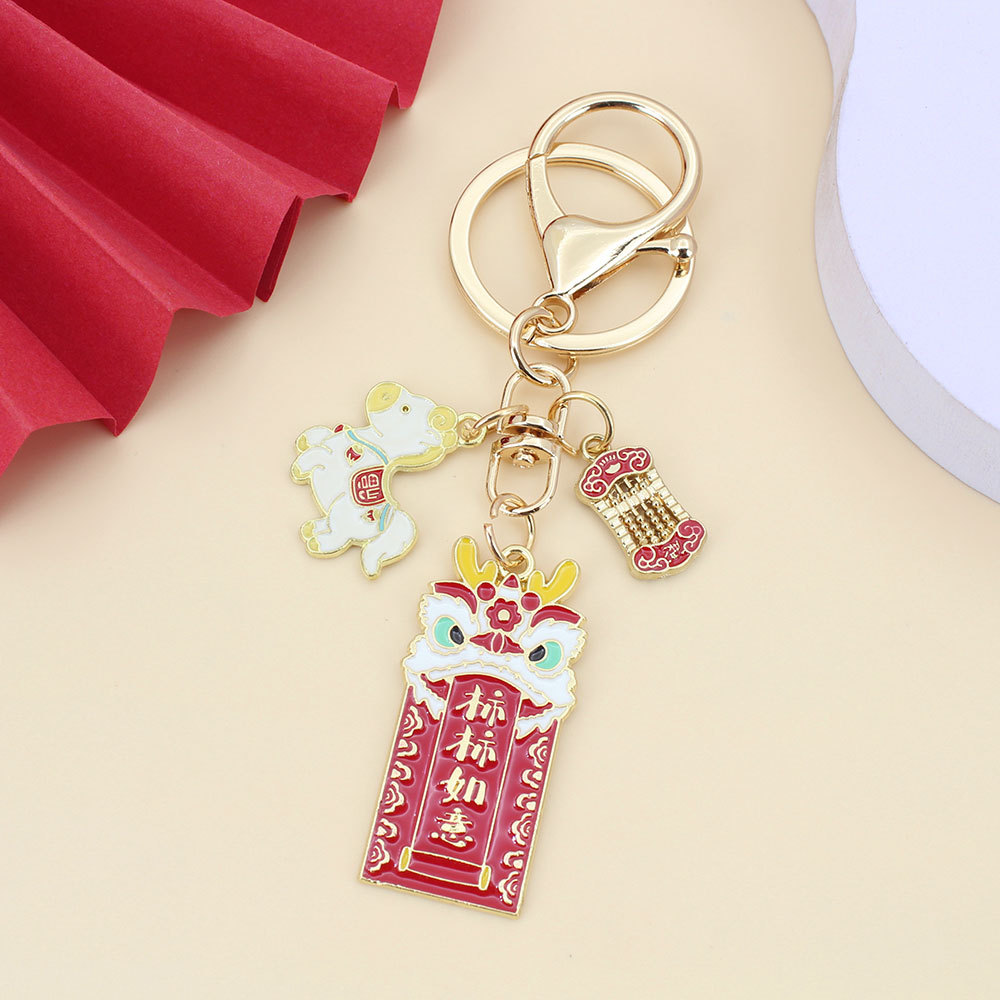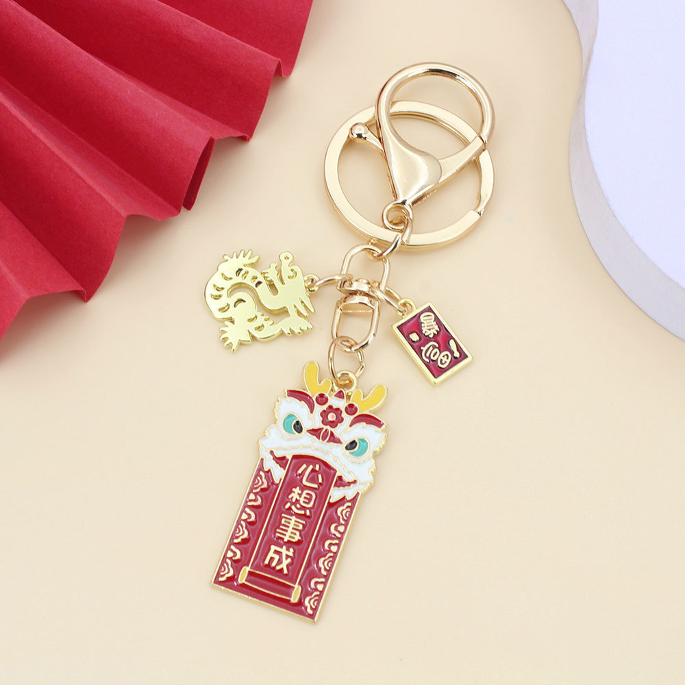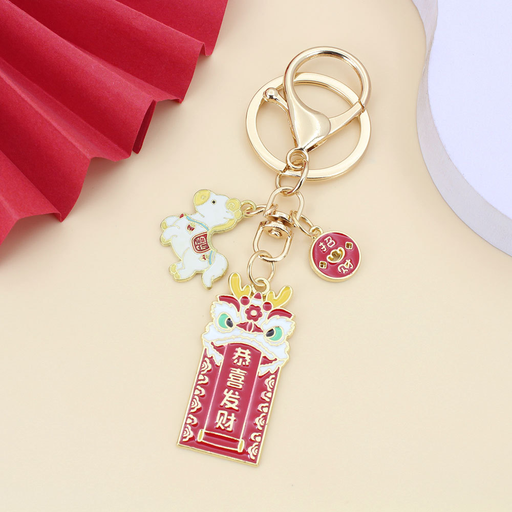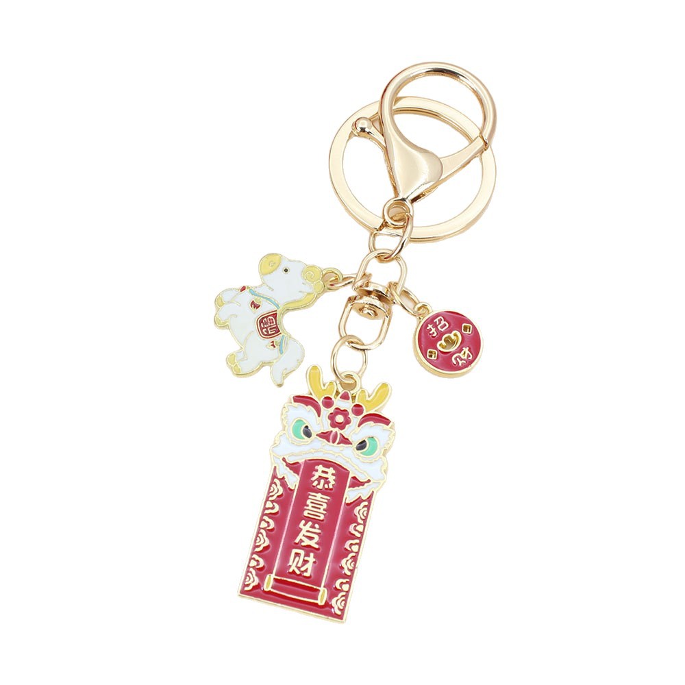 新年平安喜乐吉祥字牌马年醒狮钥匙链挂件春节礼物恭喜发财钥匙扣