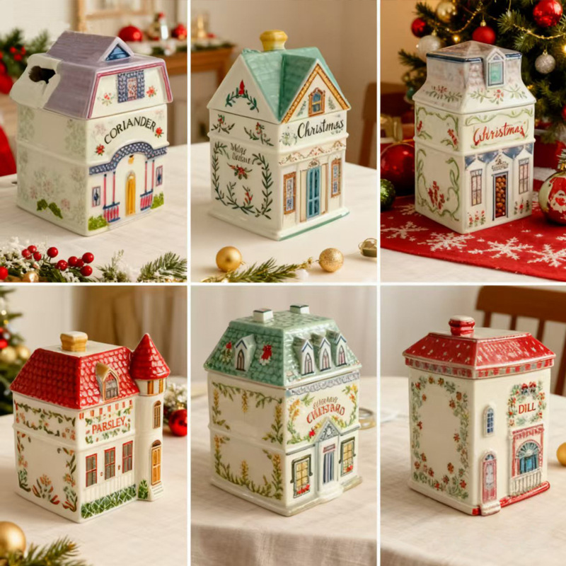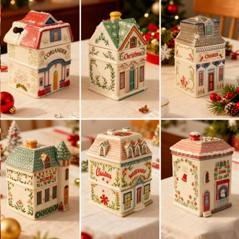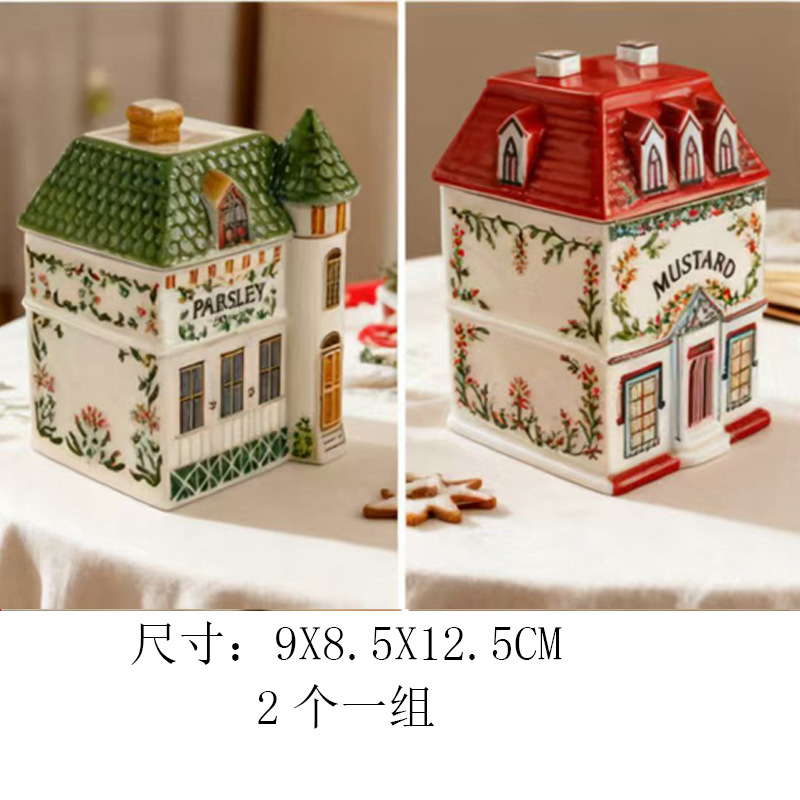 新品创意陶瓷密封罐厨房用品收纳罐咖啡粉罐装可爱房子造型香料罐
