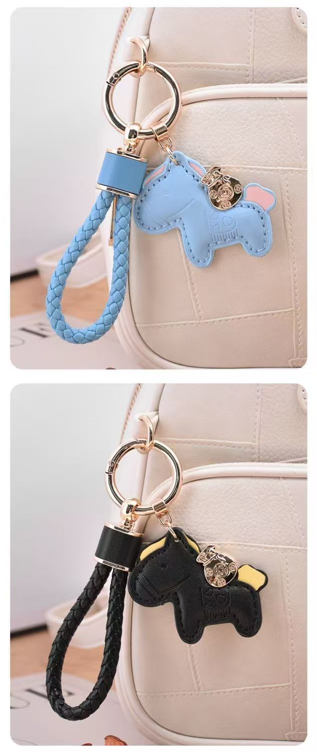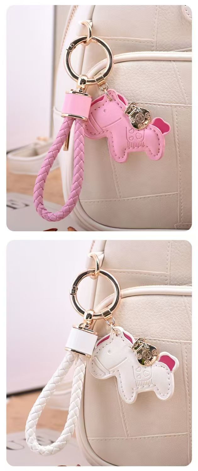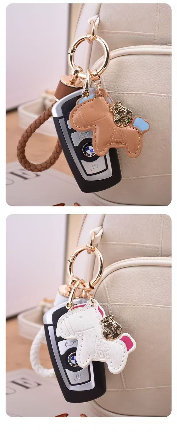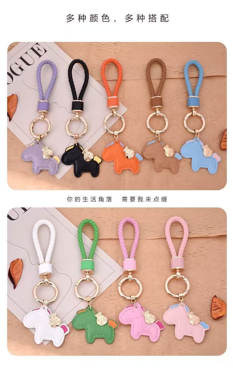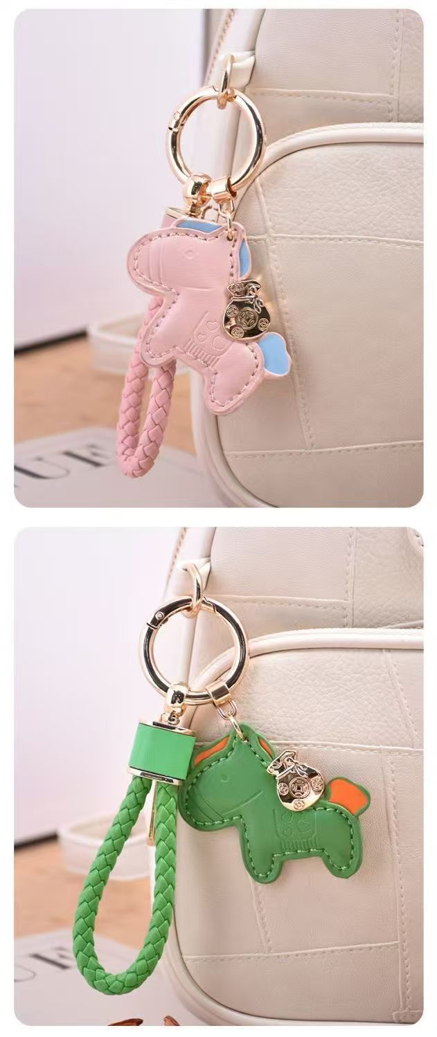 马上有钱包包挂饰汽车钥匙扣皮绳可爱精致情侣皮手绳diy小马挂饰