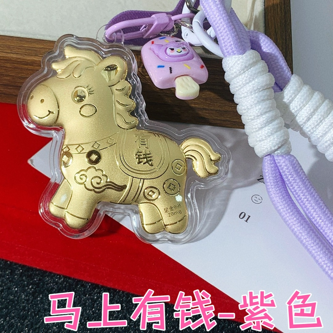 2026马年黄金钥匙扣马上有钱999足金20mg挂件手机链挂饰生日礼物