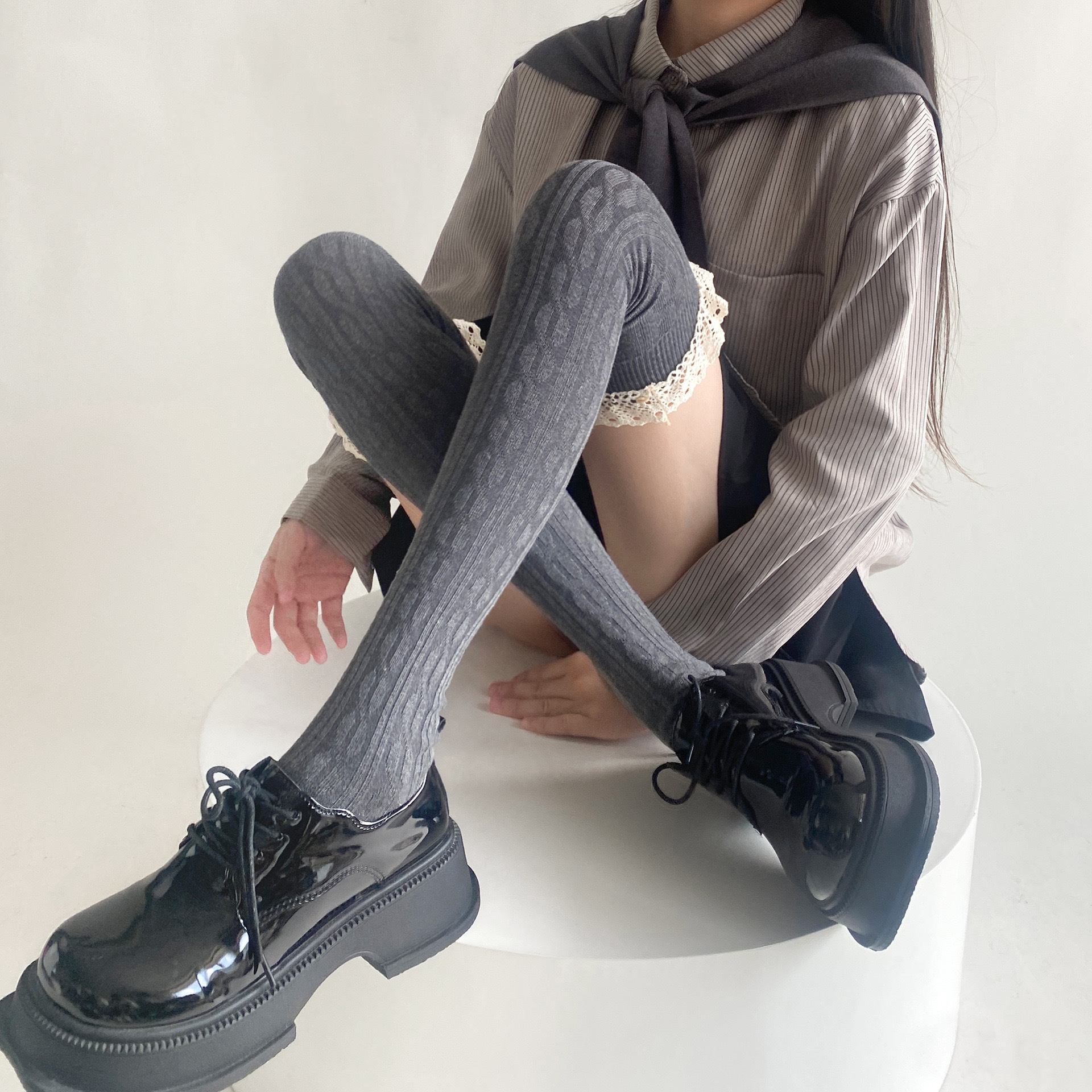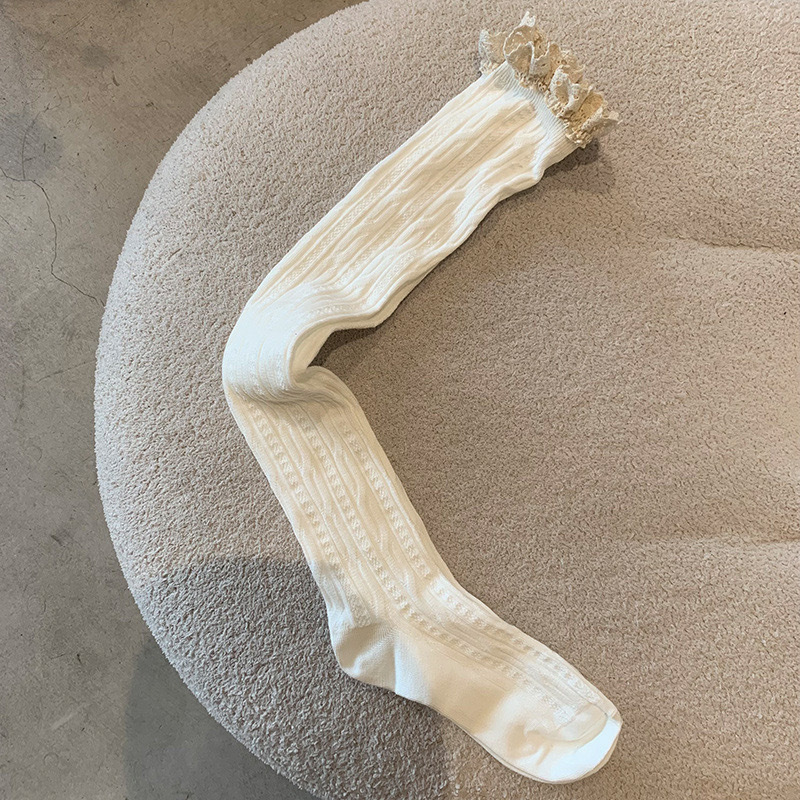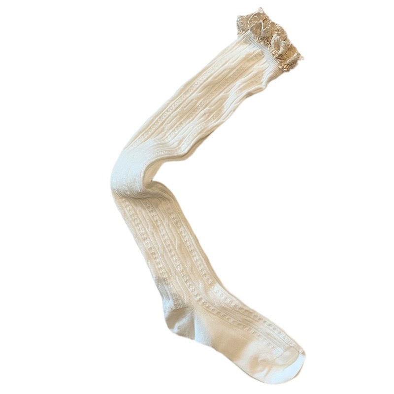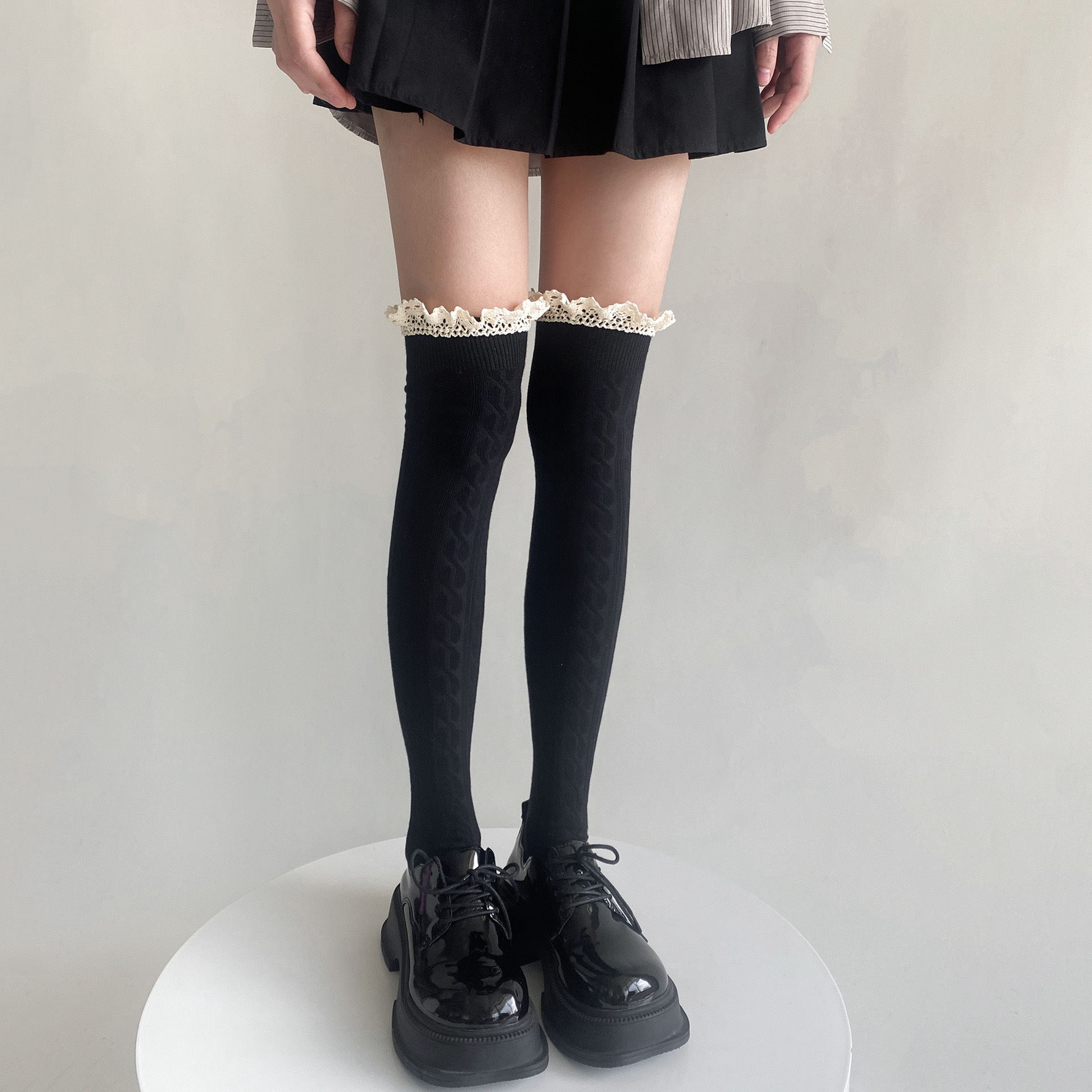 袜子女日系甜美蕾丝花边袜过膝大腿袜复古麻花洛丽塔穿搭小众靴袜