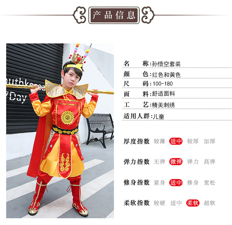 儿童孙悟空衣服全套齐天大圣美猴王服装猴子演出服西游记孙行者服