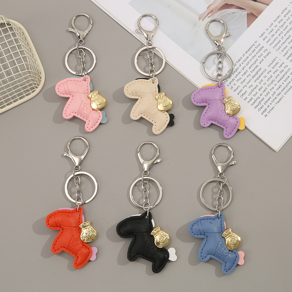 2025新款马上有钱pu皮质钥匙扣创意可爱小马包包挂件配饰批发
