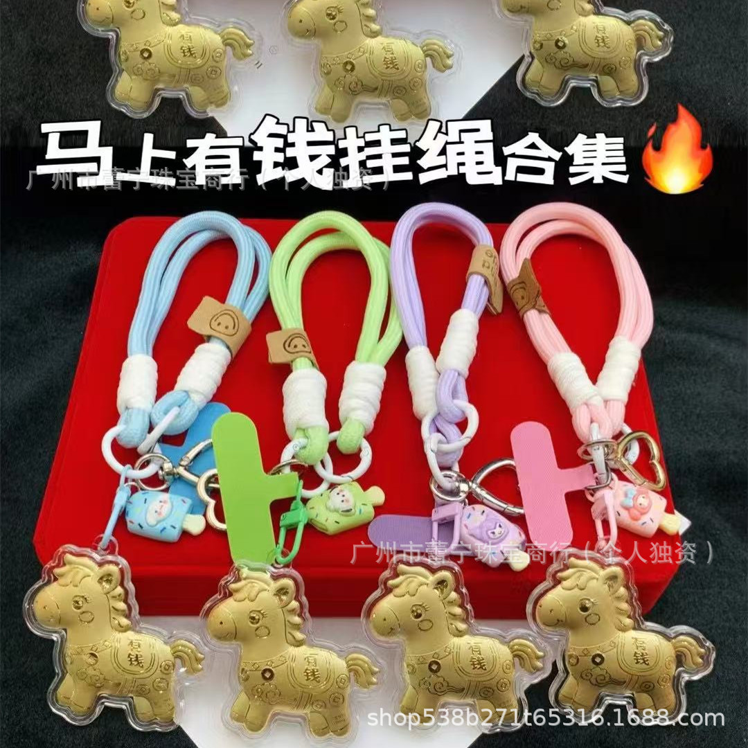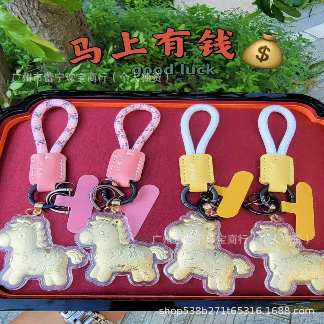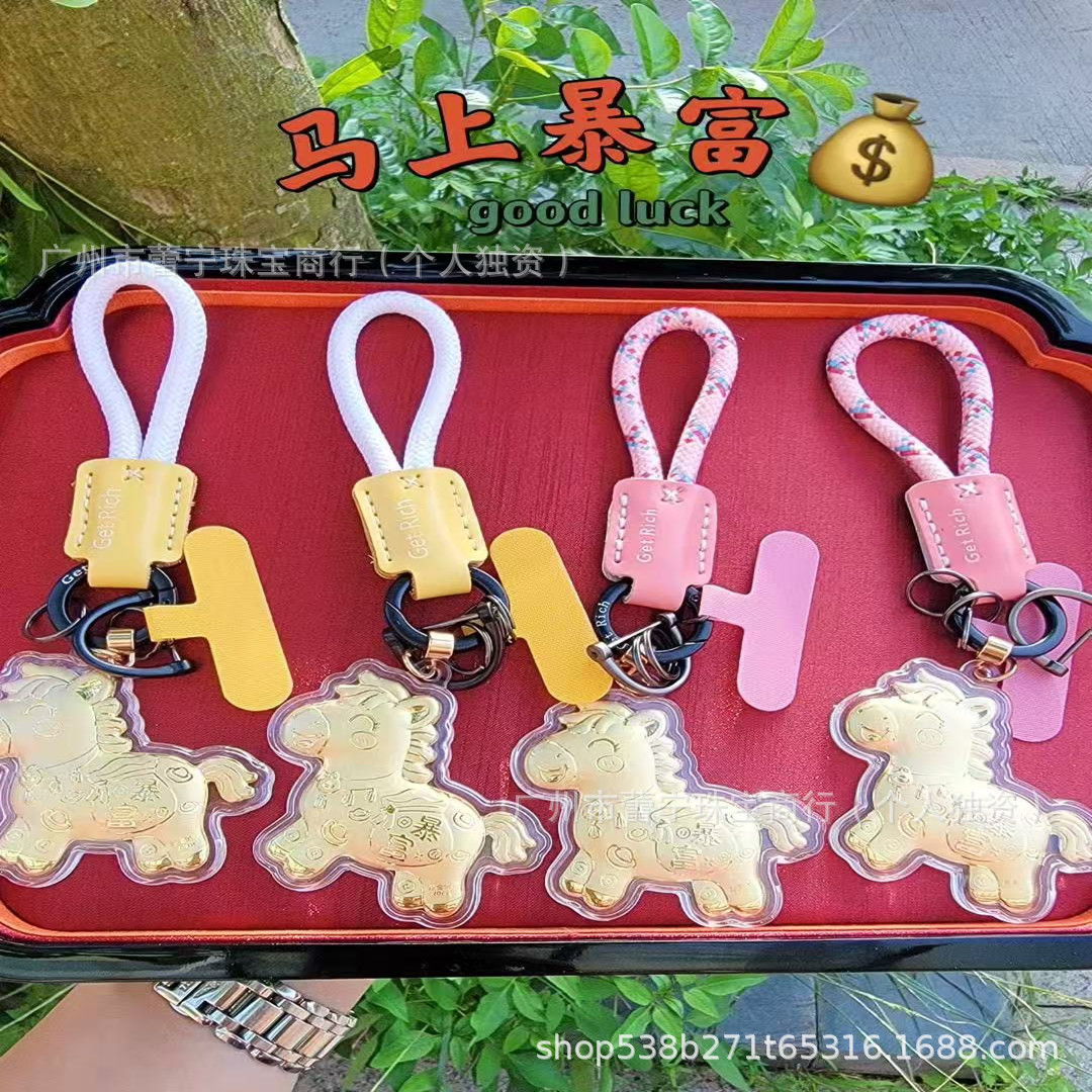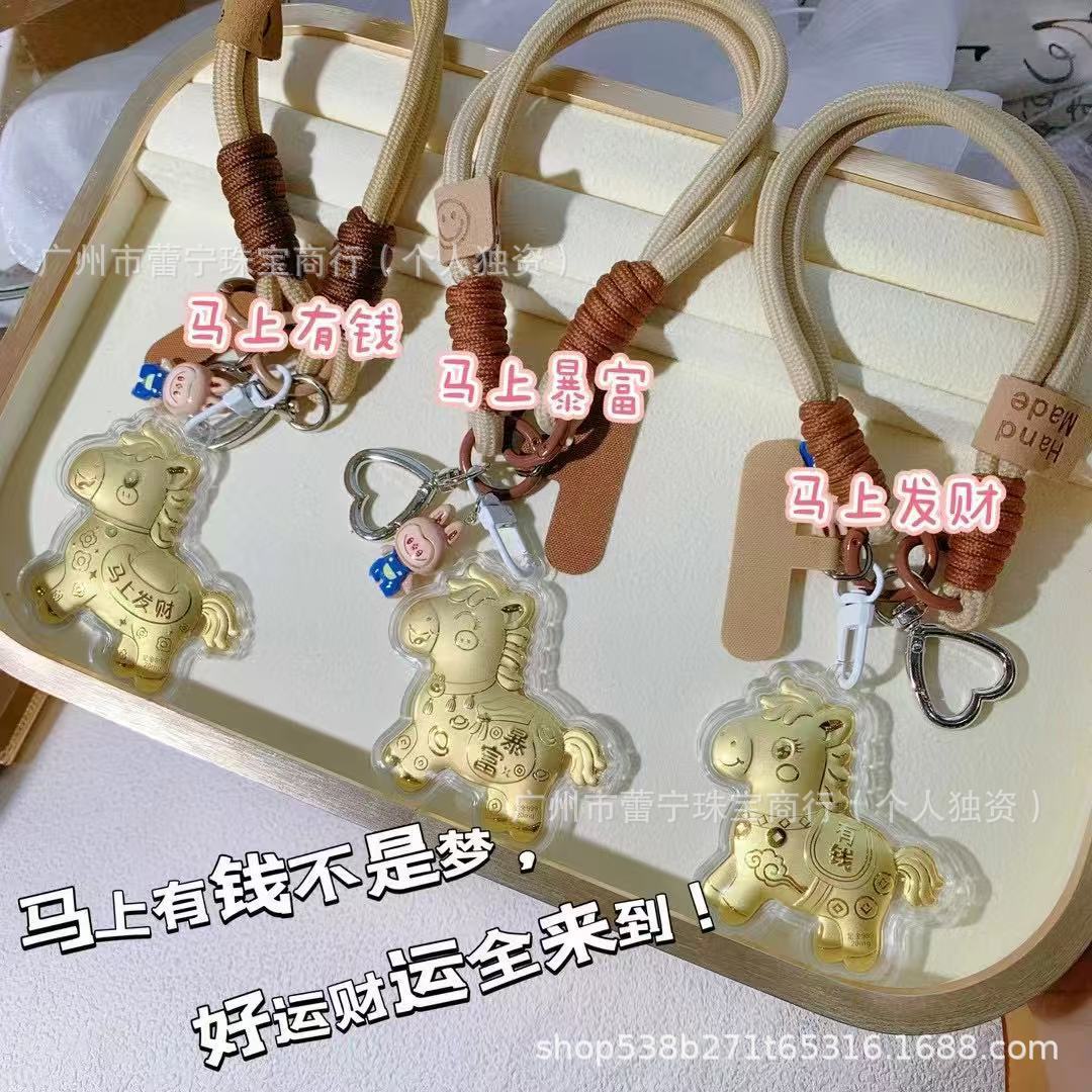 足金999黄金马上有钱手机链挂绳钥匙扣包包挂件送女友闺蜜礼物