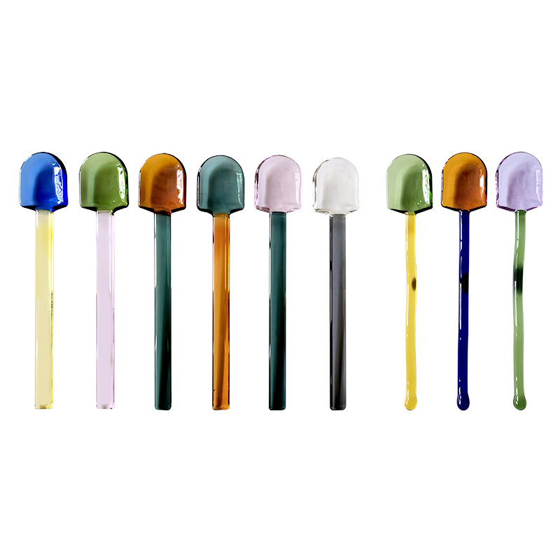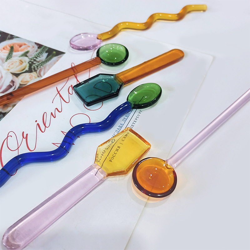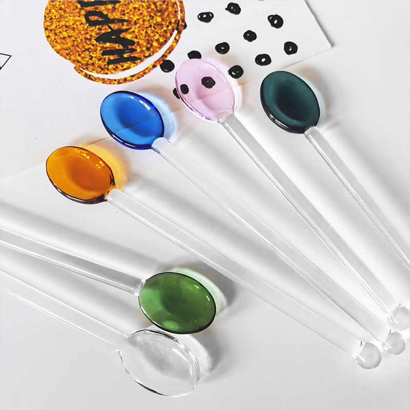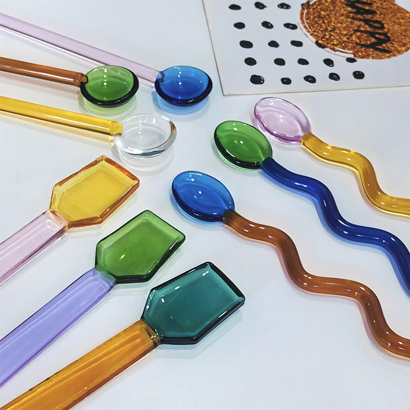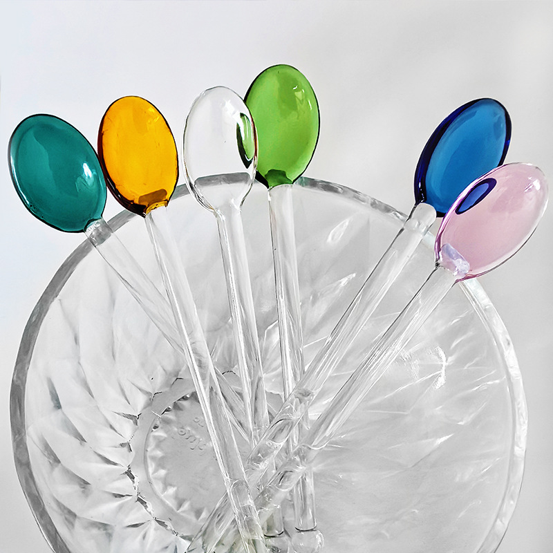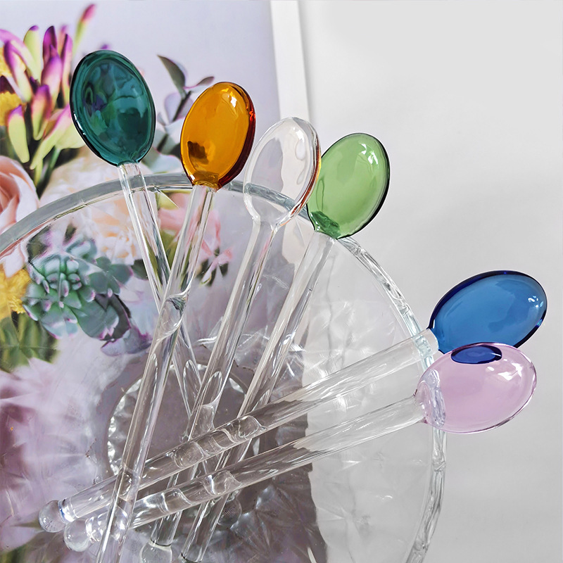 玻璃勺创意彩色透明耐高温可爱长柄咖啡勺跨境甜品勺食品级奶茶