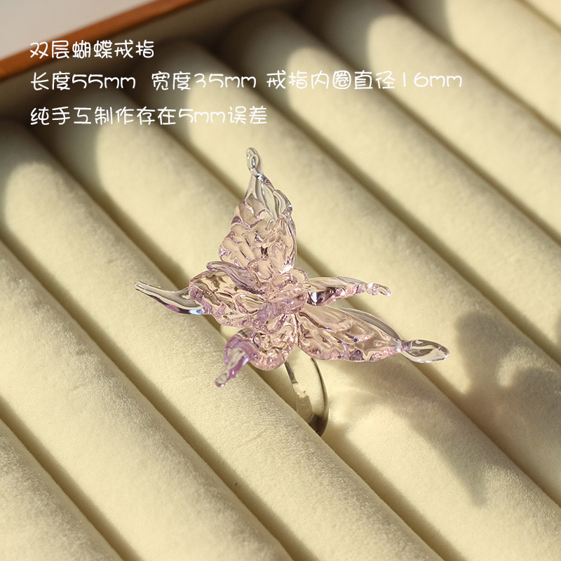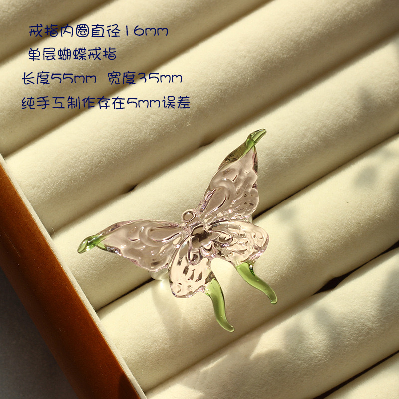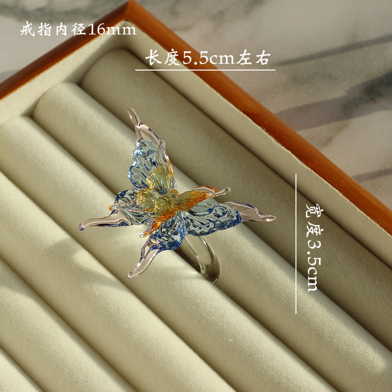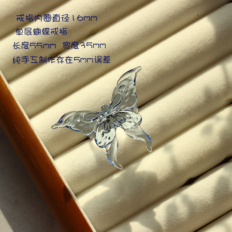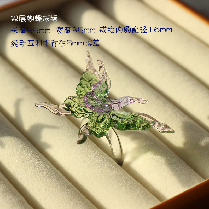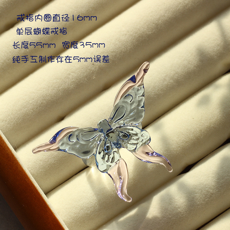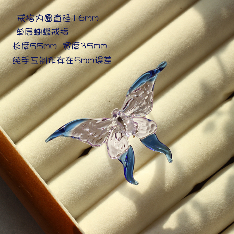 淄博手工琉璃蝴蝶戒指网红工艺品拍照小众设计高级感玻璃饰品礼物