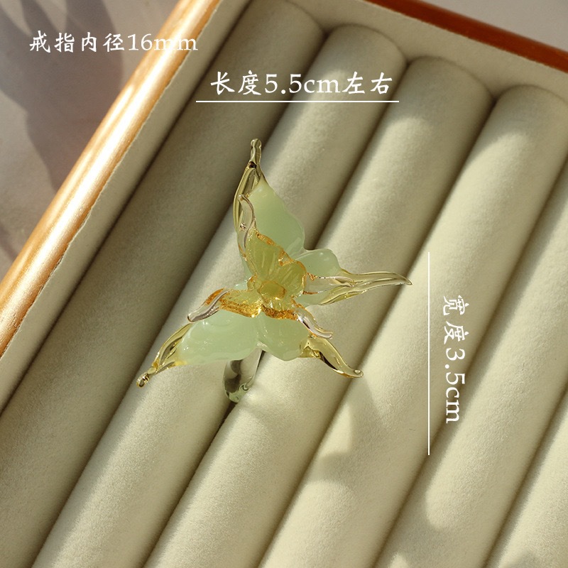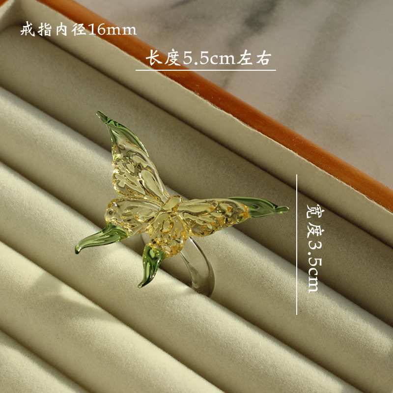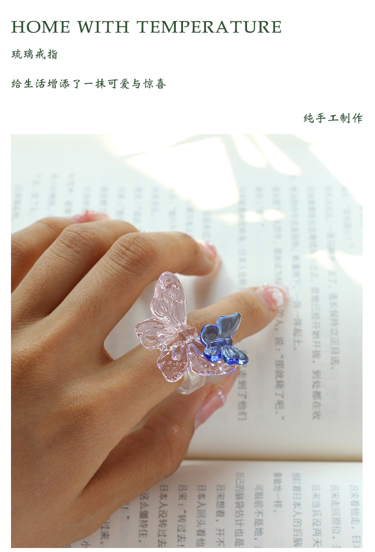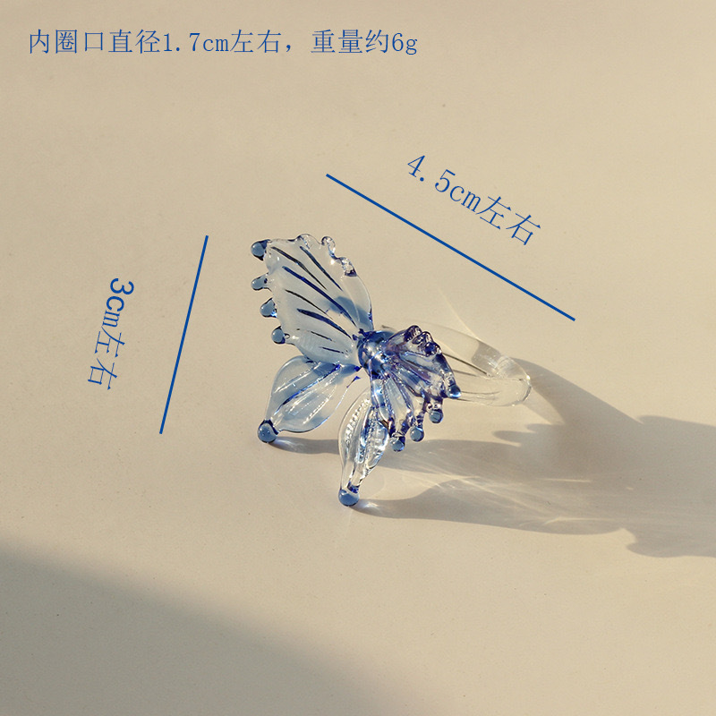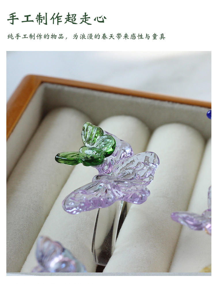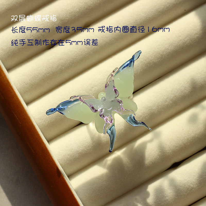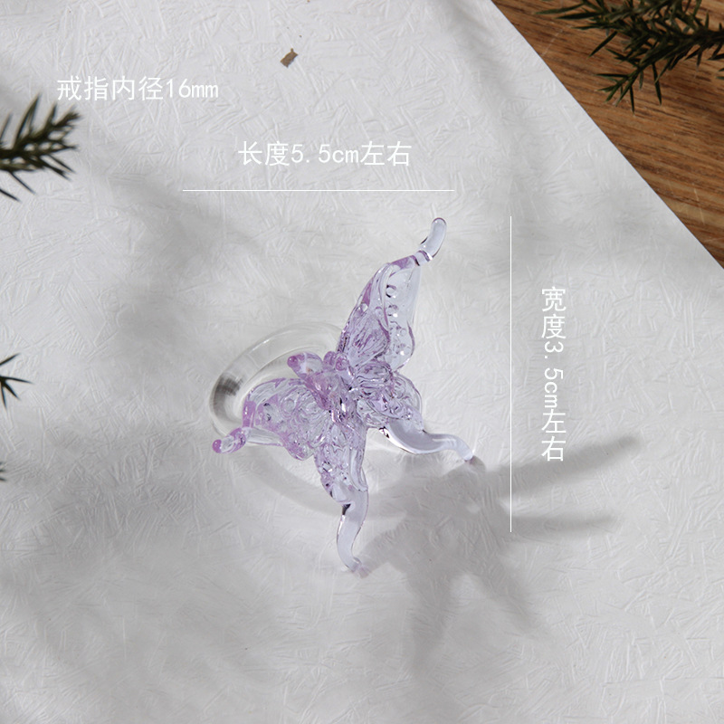 淄博手工琉璃蝴蝶戒指网红工艺品拍照小众设计高级感玻璃饰品礼物