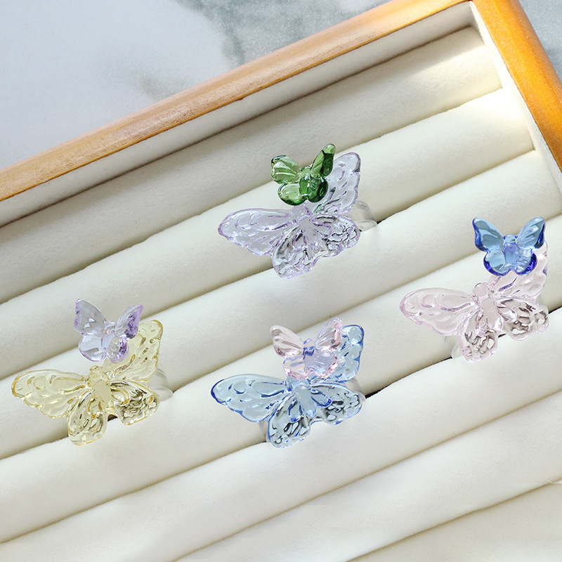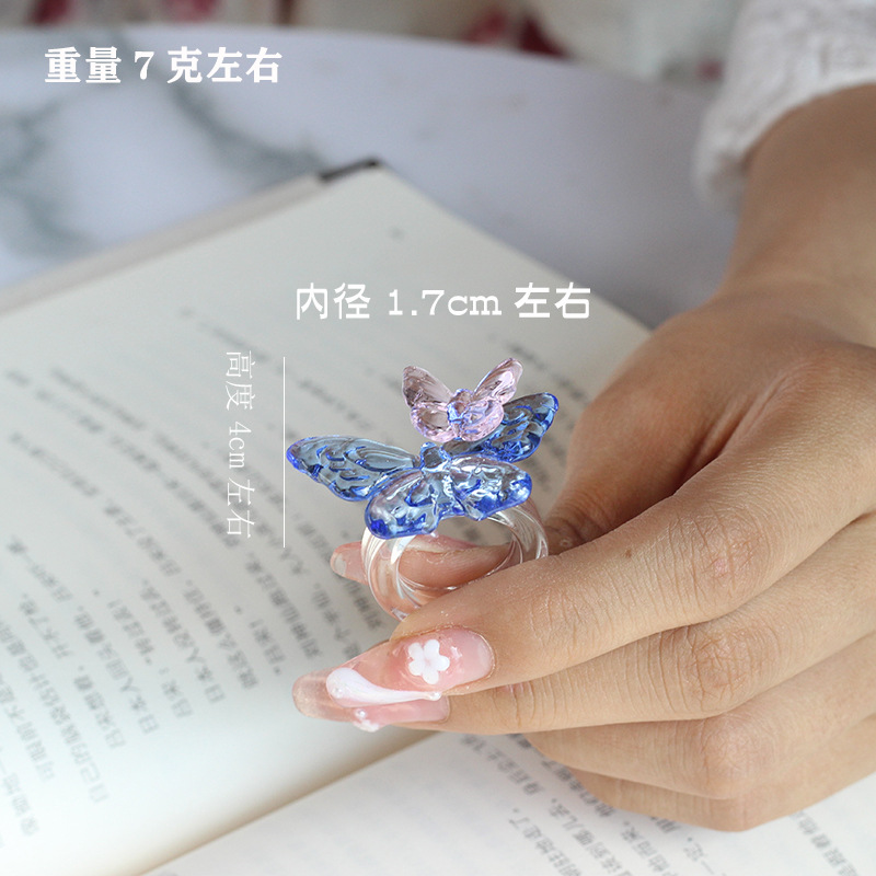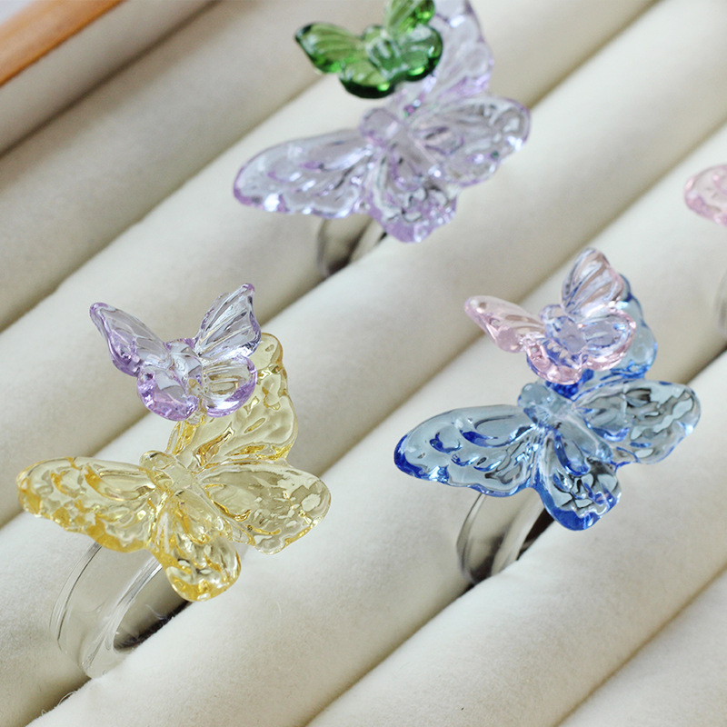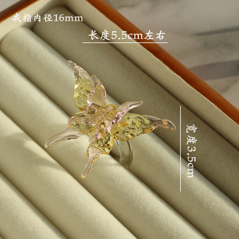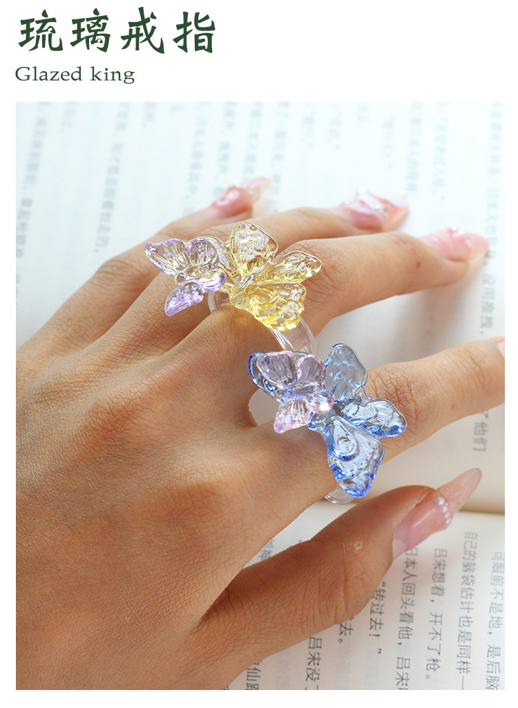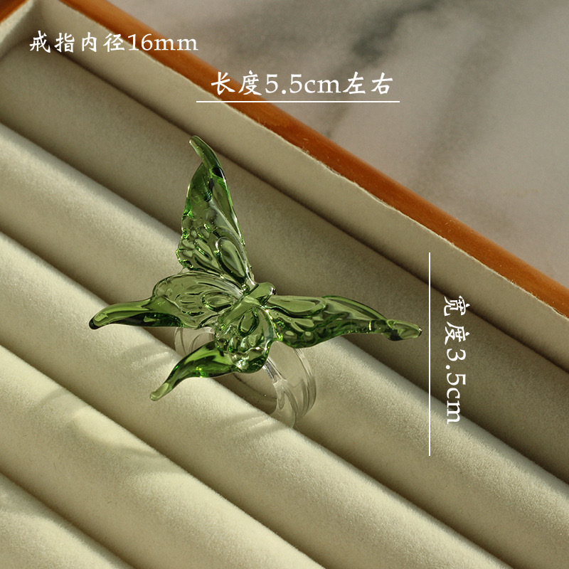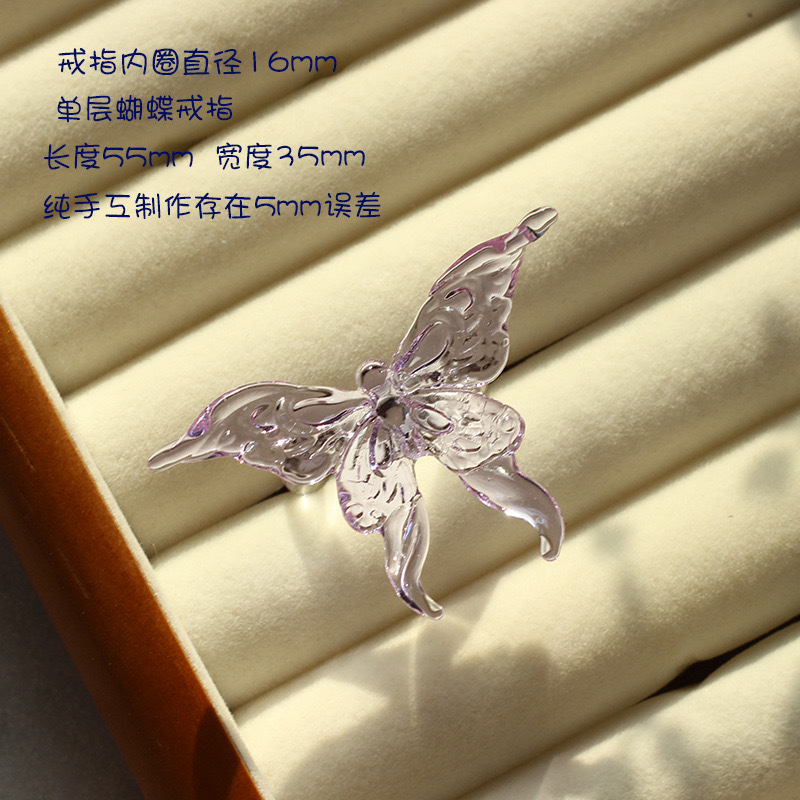 淄博手工琉璃蝴蝶戒指网红工艺品拍照小众设计高级感玻璃饰品礼物