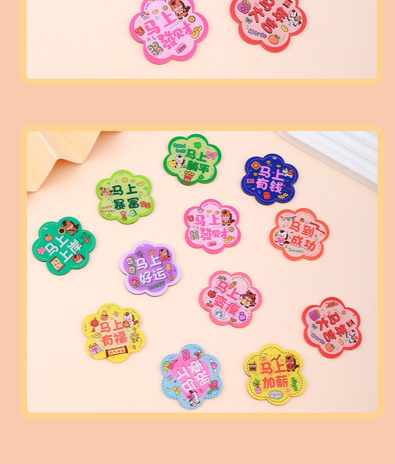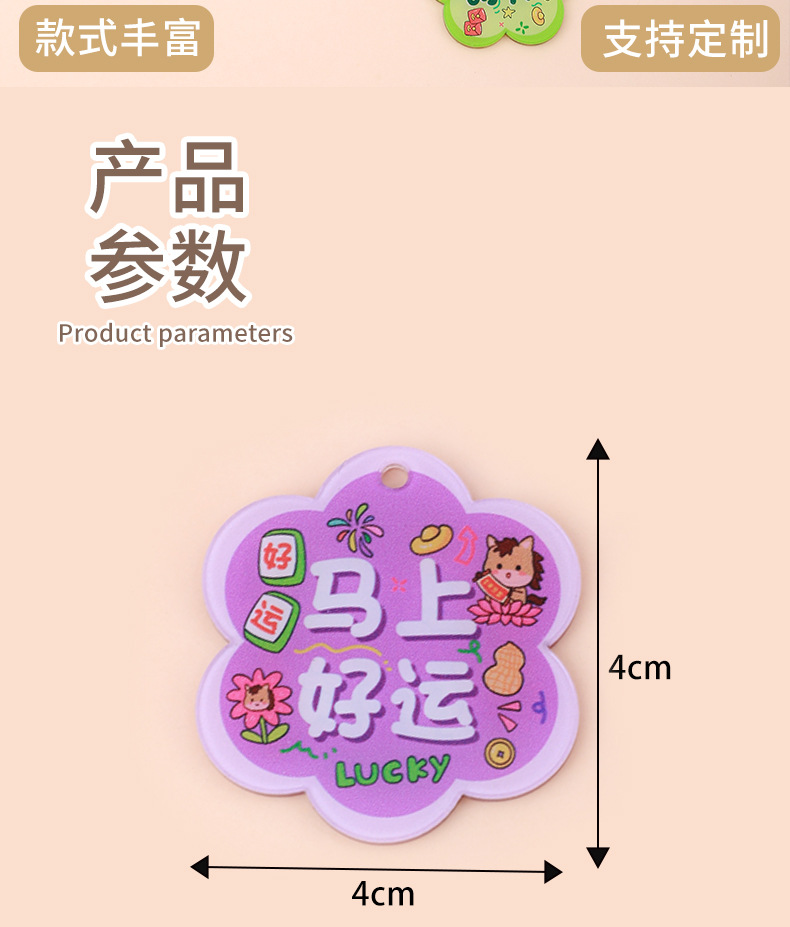 亚克力新款马年双面文字牌DIY饰品配件花朵形状马年钥匙扣挂饰